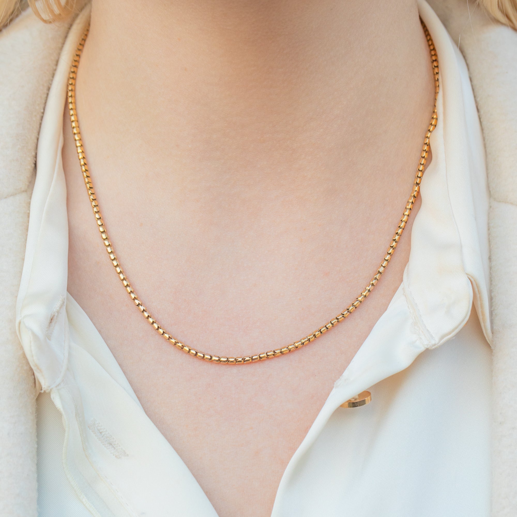 Exuding old-time charm, this Victorian 15ct Gold snake chain will soon become an everyday essential! The 17-inch length is crafted entirely from solid, rare 15ct Gold and has smoothly rounded links that will rest elegantly across your collarbones.