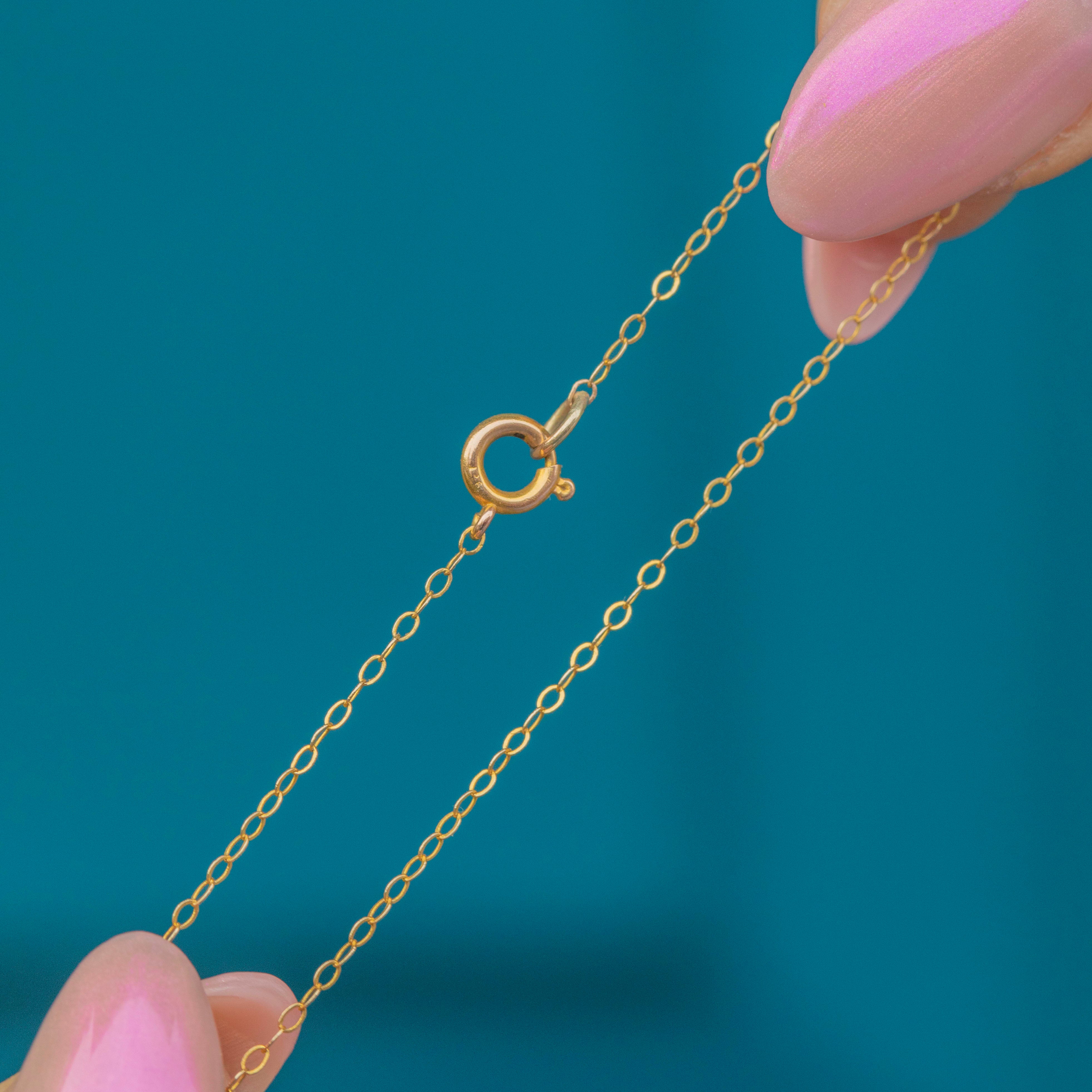 Crafted from buttery 9ct Gold, this dainty Victorian Gold chain measures 18.5" long and is the perfect versatile piece for suspending pendants or layering with other chains.