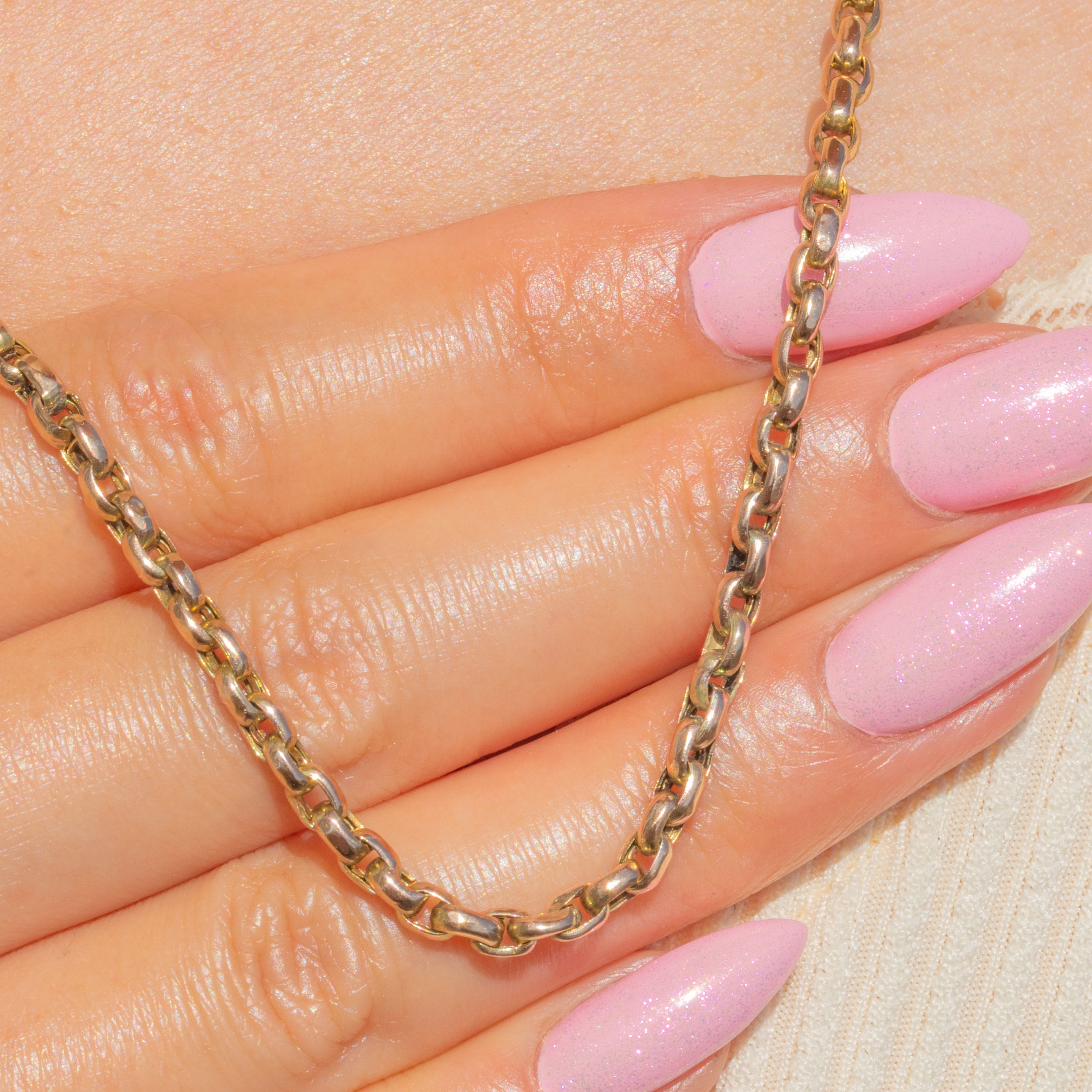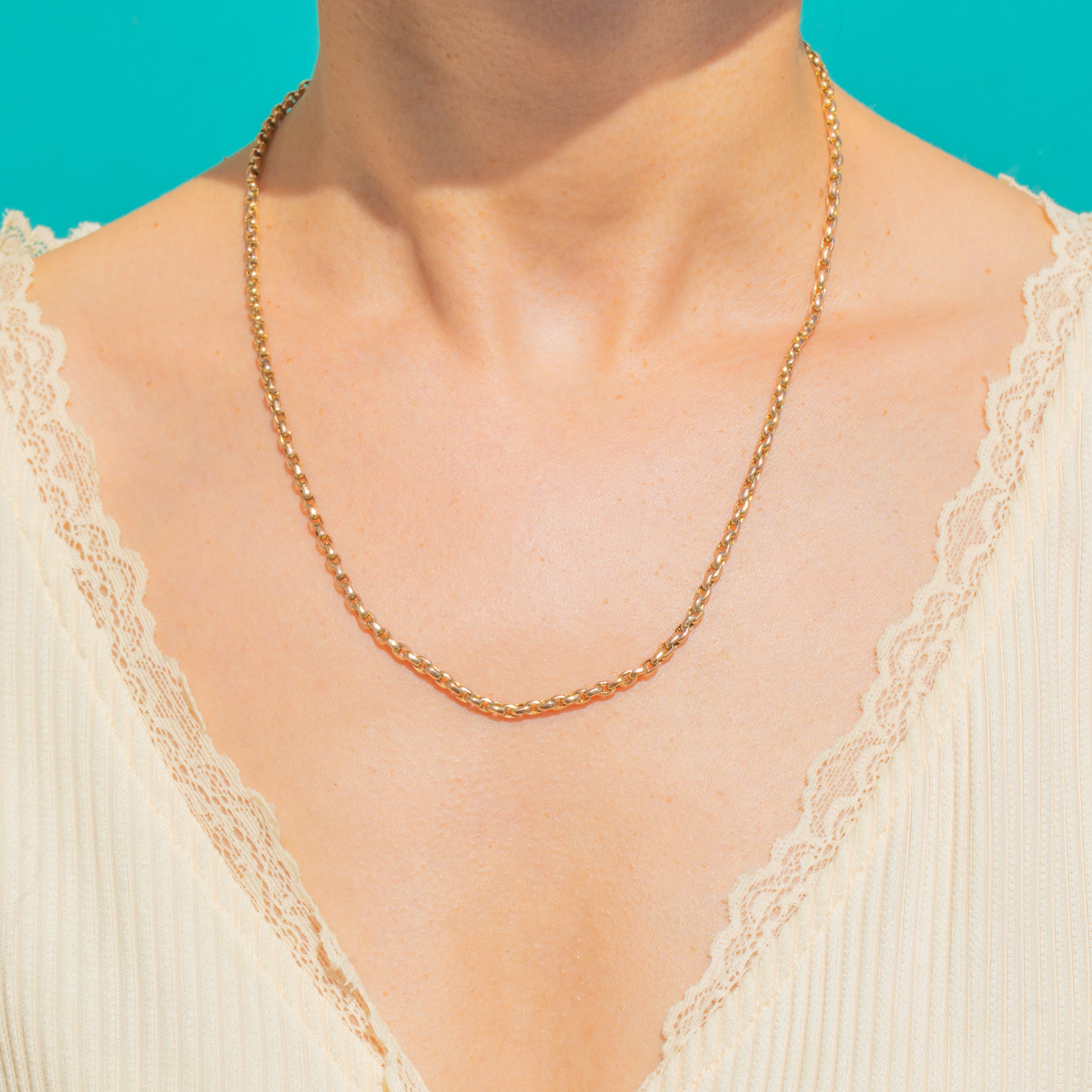 あらゆるアンティークジュエリーコレクションに欠かせない定番アイテム、Victorian 9ctゴールド ベルチャーチェーンは、洗練されたエレガンスと無限の汎用性を兼ね備えています。丸みを帯びたベルチャーリンクが美しく光を反射し、柔らかなゴールドの輝きを放ち、どんなネックラインにも調和し、お手持ちのジュエリーとの重ね付けも自在です。