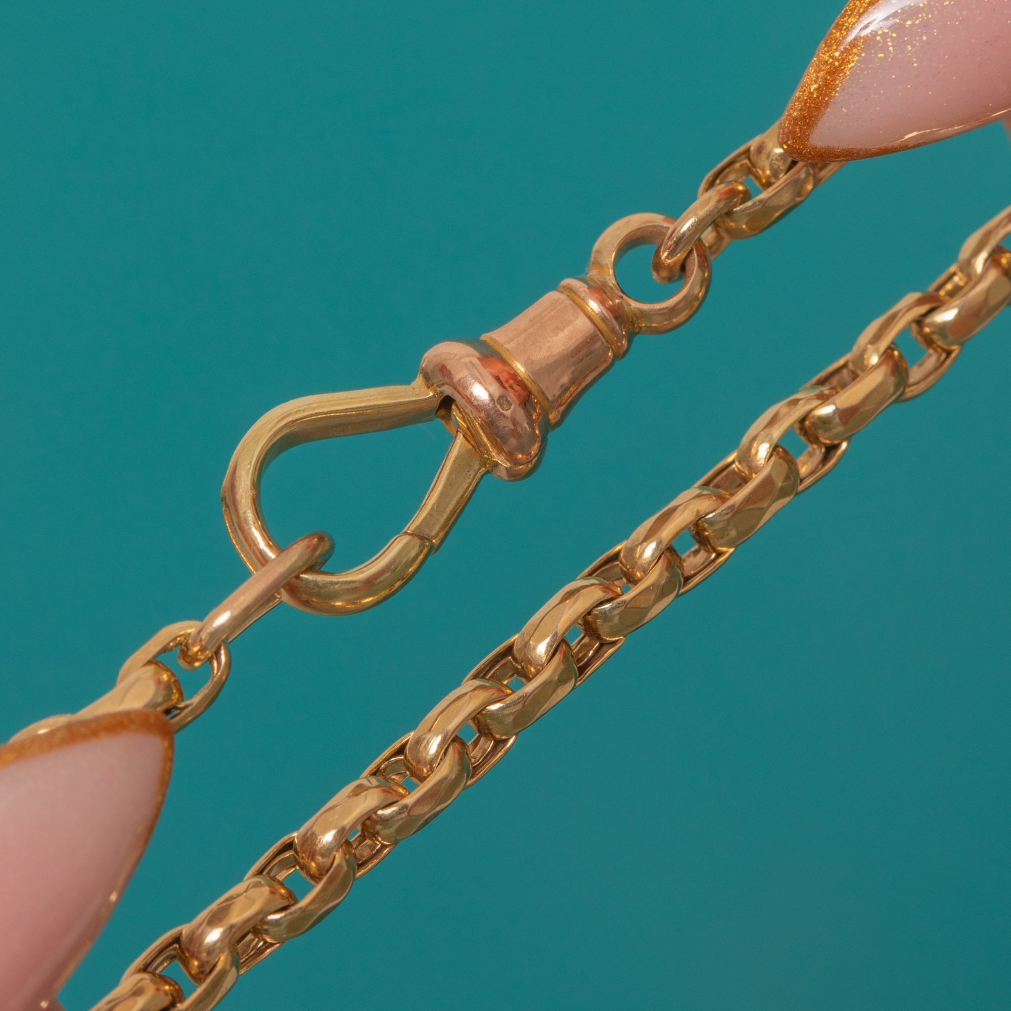 18インチ 9ct ゴールド ベルチャーチェーンとドッグクリップチャームホルダー