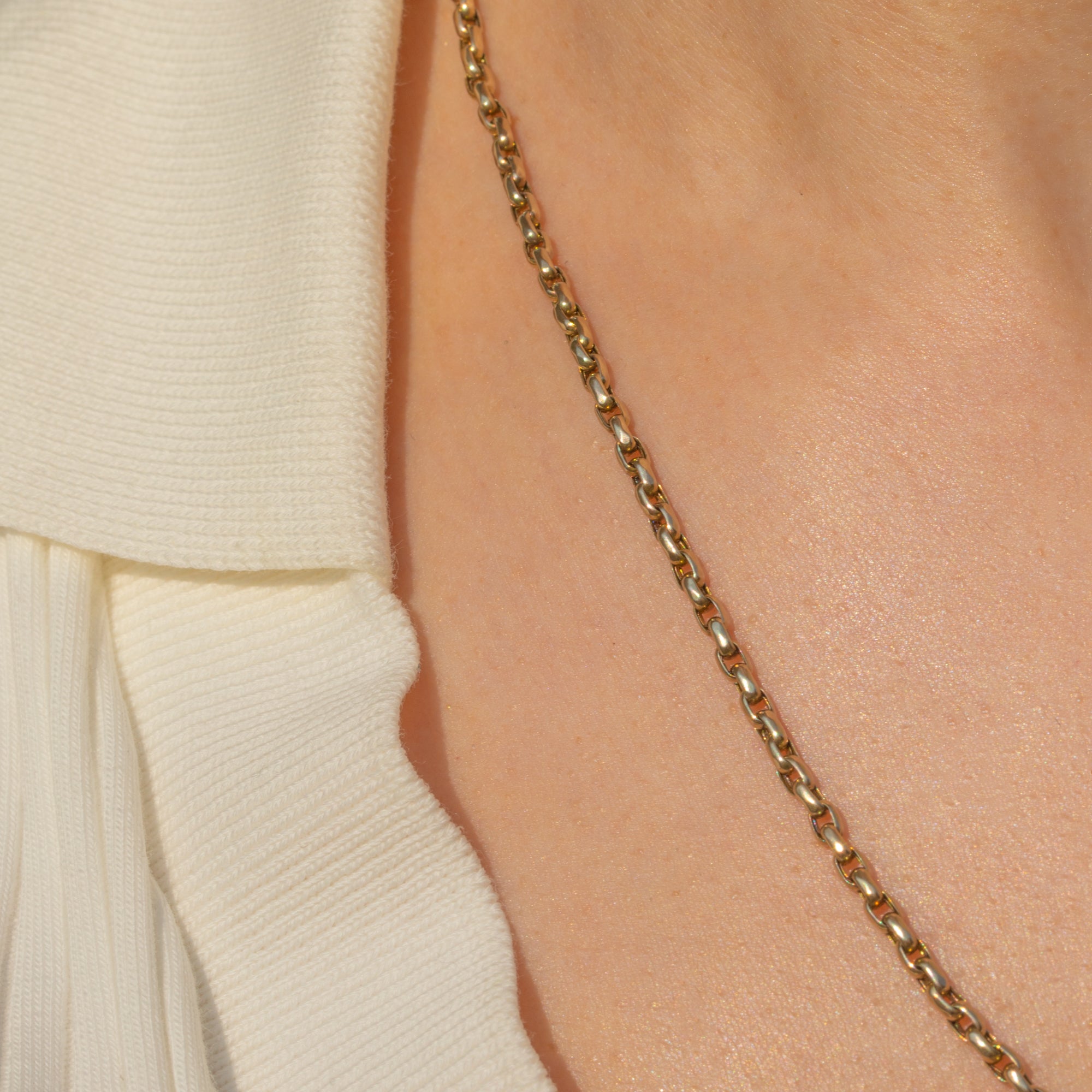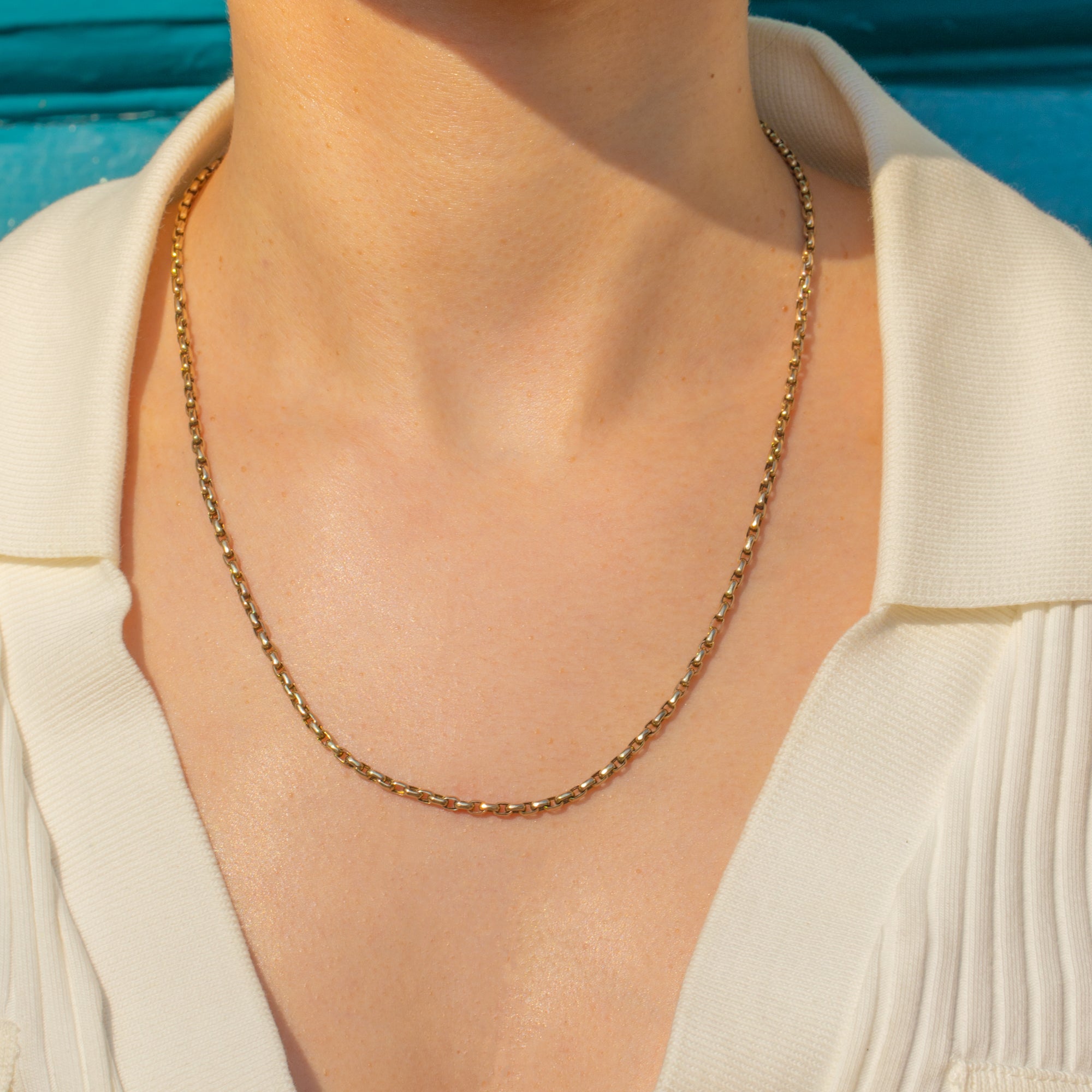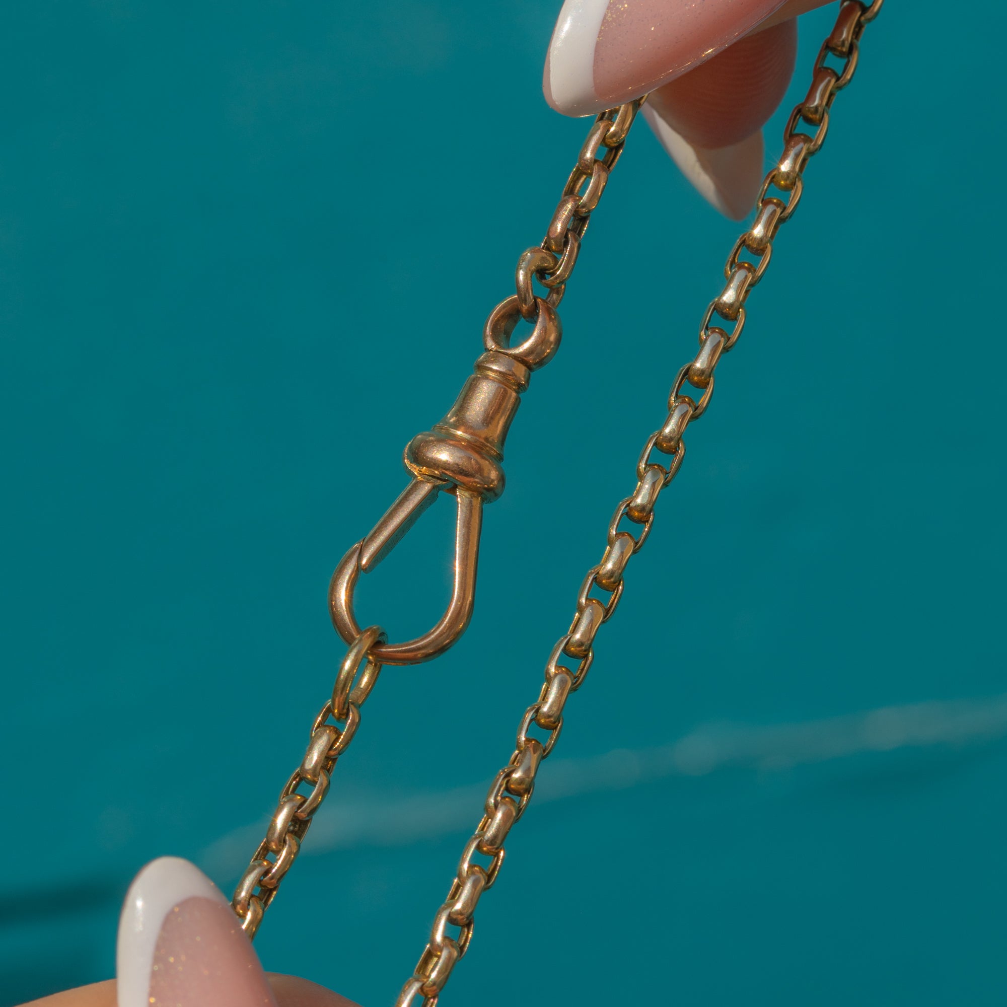 Add a slice of luxury to your attire with this 9ct Gold belcher chain! The rectangular belcher links allow this antique chain to drape elegantly across your décolletage, with the buttery Gold catching the light beautifully.