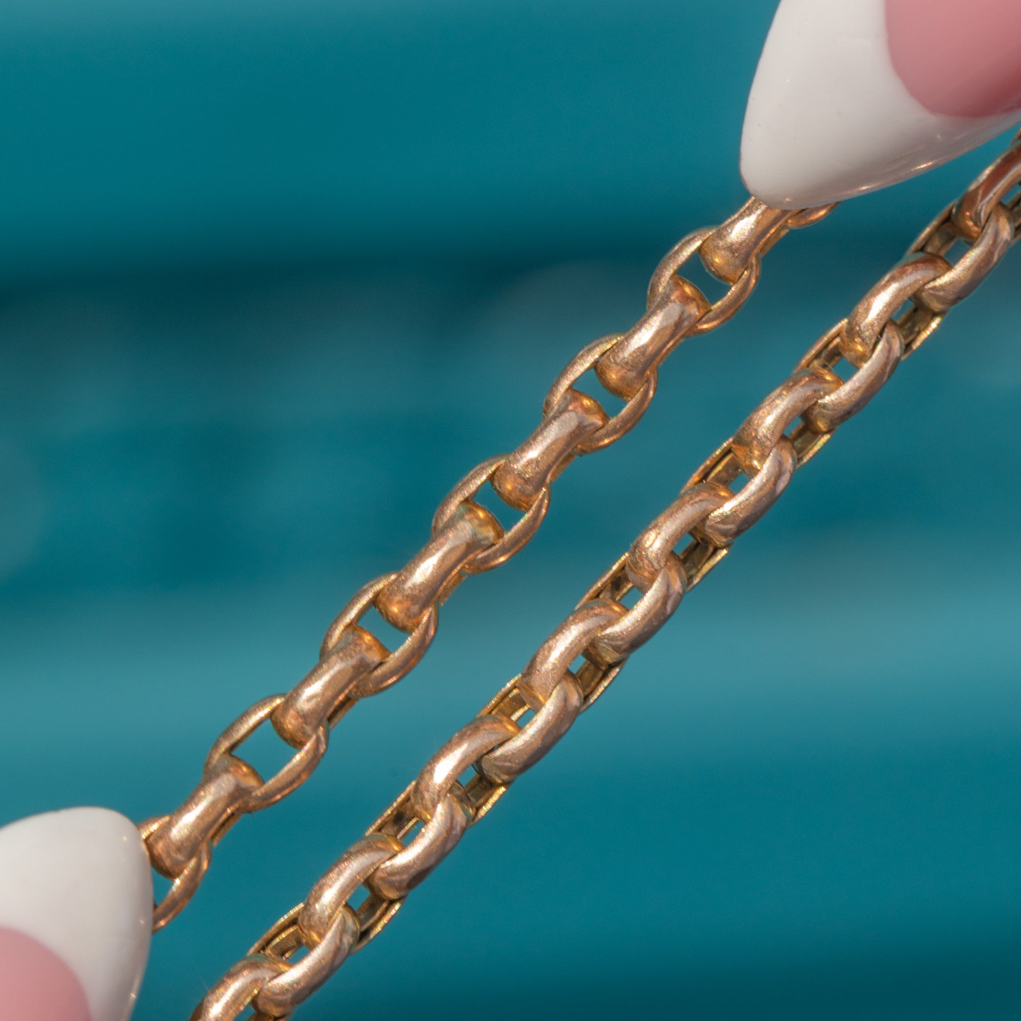Crafted from rich, warm 9ct Gold, this Victorian belcher chain rests across your décolletage like liquid Gold.