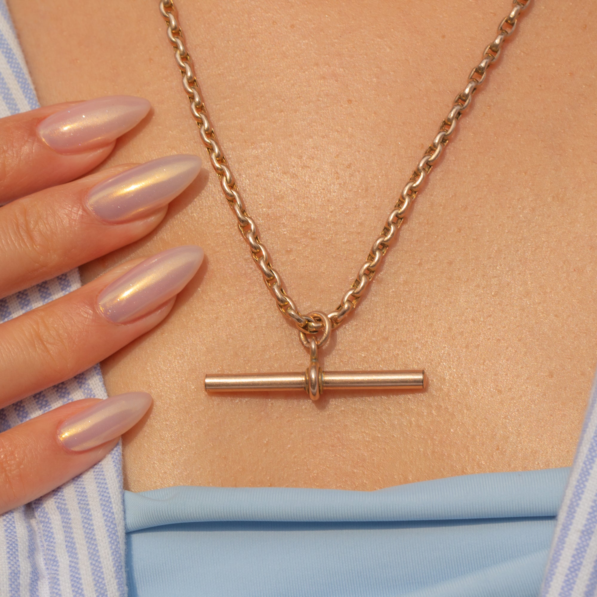 EXCELLENT: Each link is uniform and secure, with little signs of wear present. The dog-clip is in perfect working order and complete with a securely attached t-bar, this chain is a must-have piece.