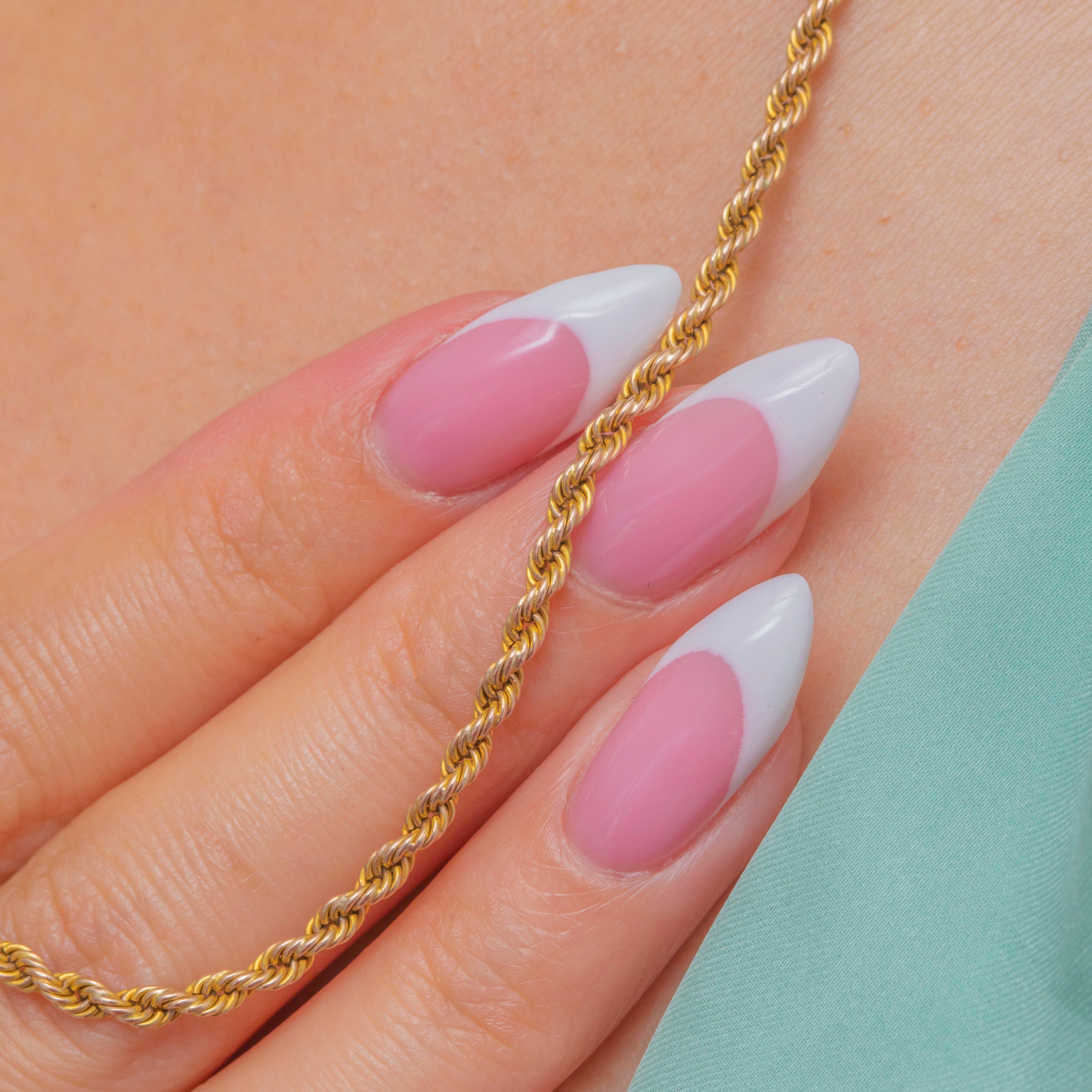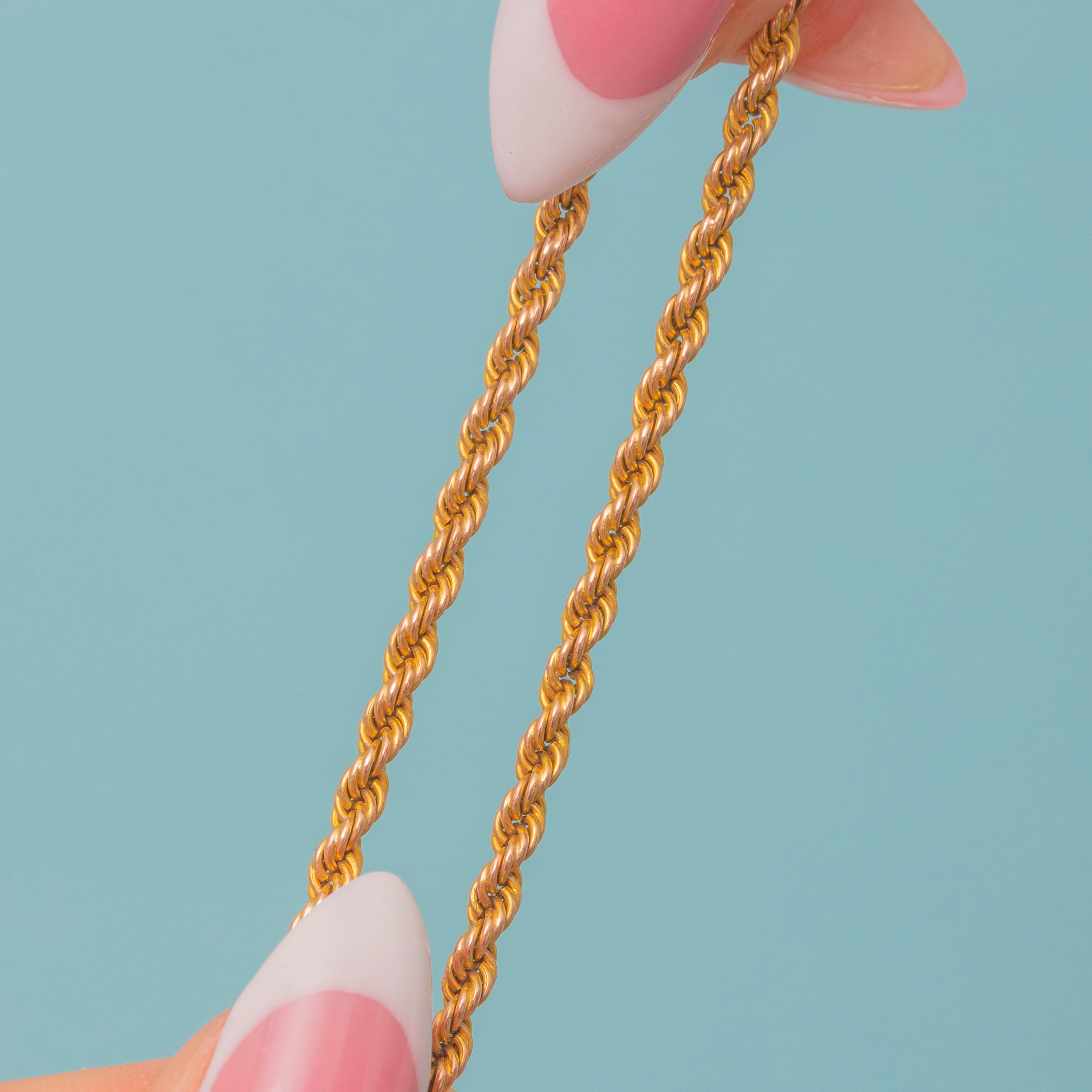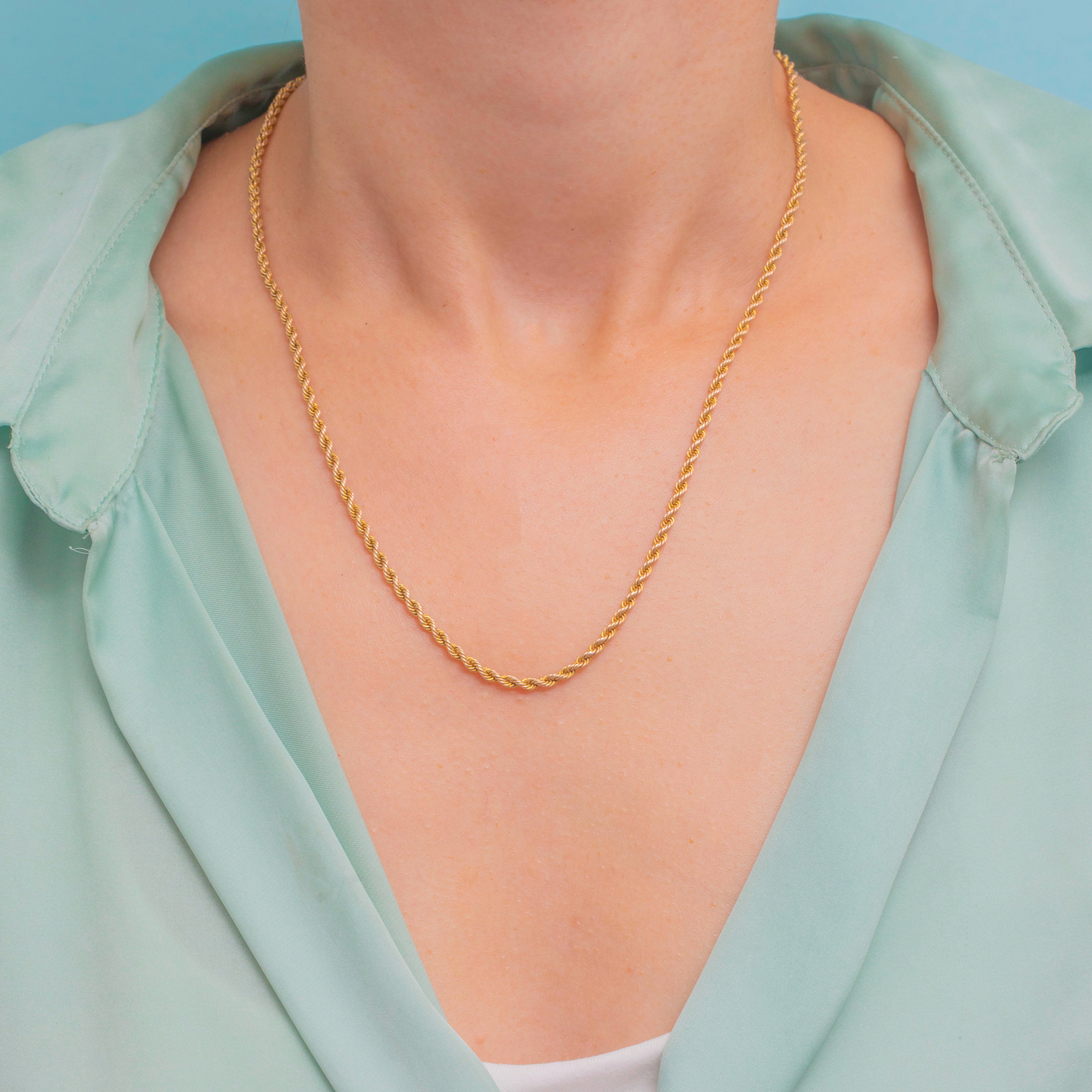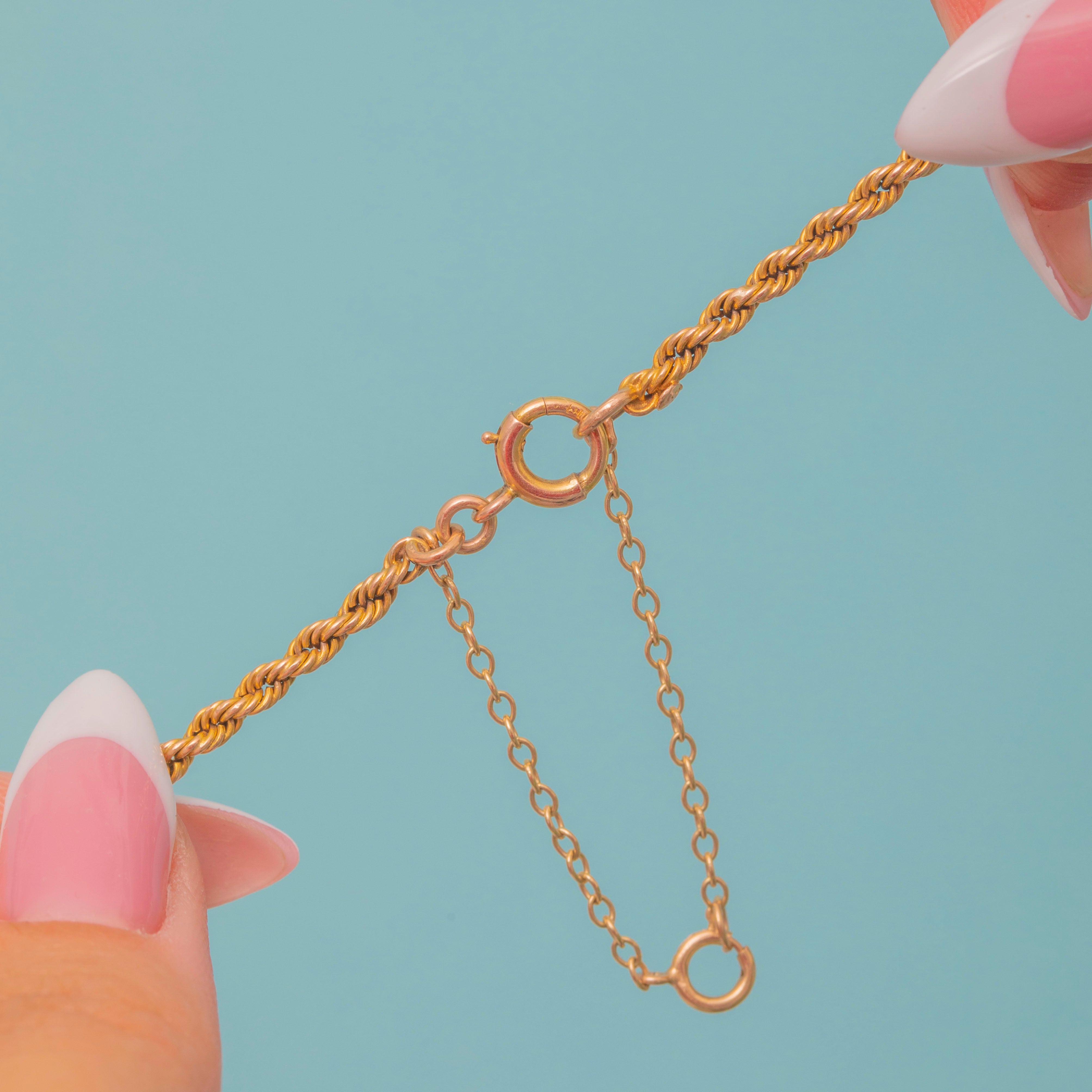 EXCELLENT: The twisted rope links are tightly woven throughout, with no surface wear to note. Her 9ct Gold has a lovely saturated hue and gleams when worn. Her bolt ring clasp is in perfect working order, so the chain can be worn with the utmost confidence - with a safety chain for extra security. The perfect addition to your jewellery collection!