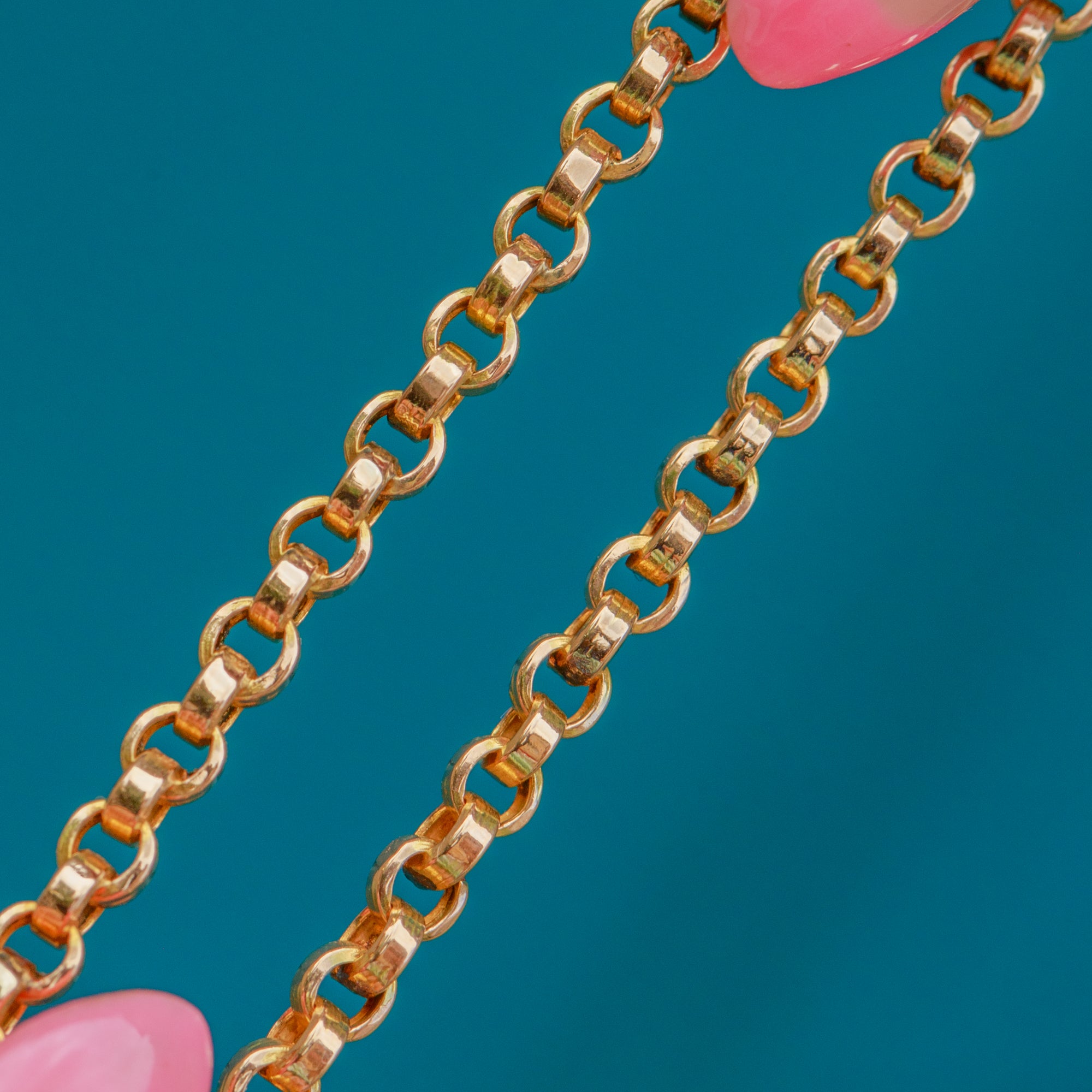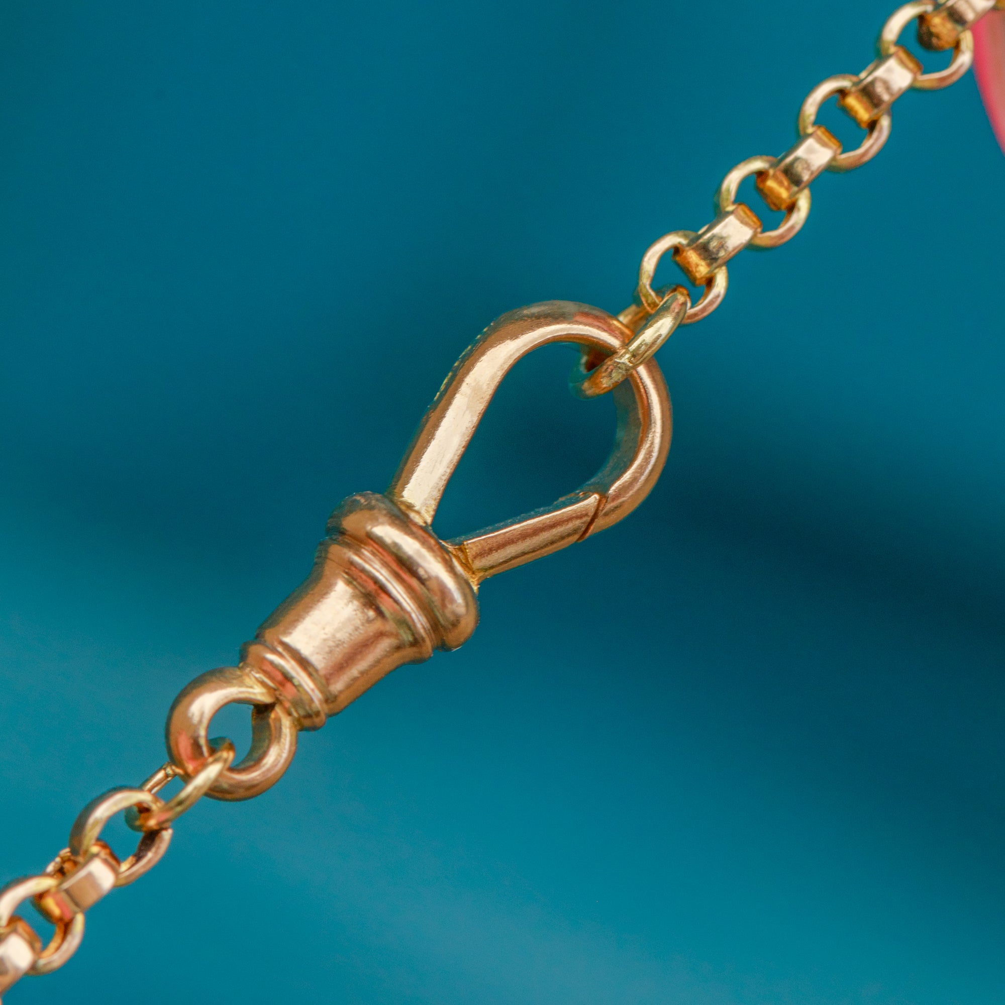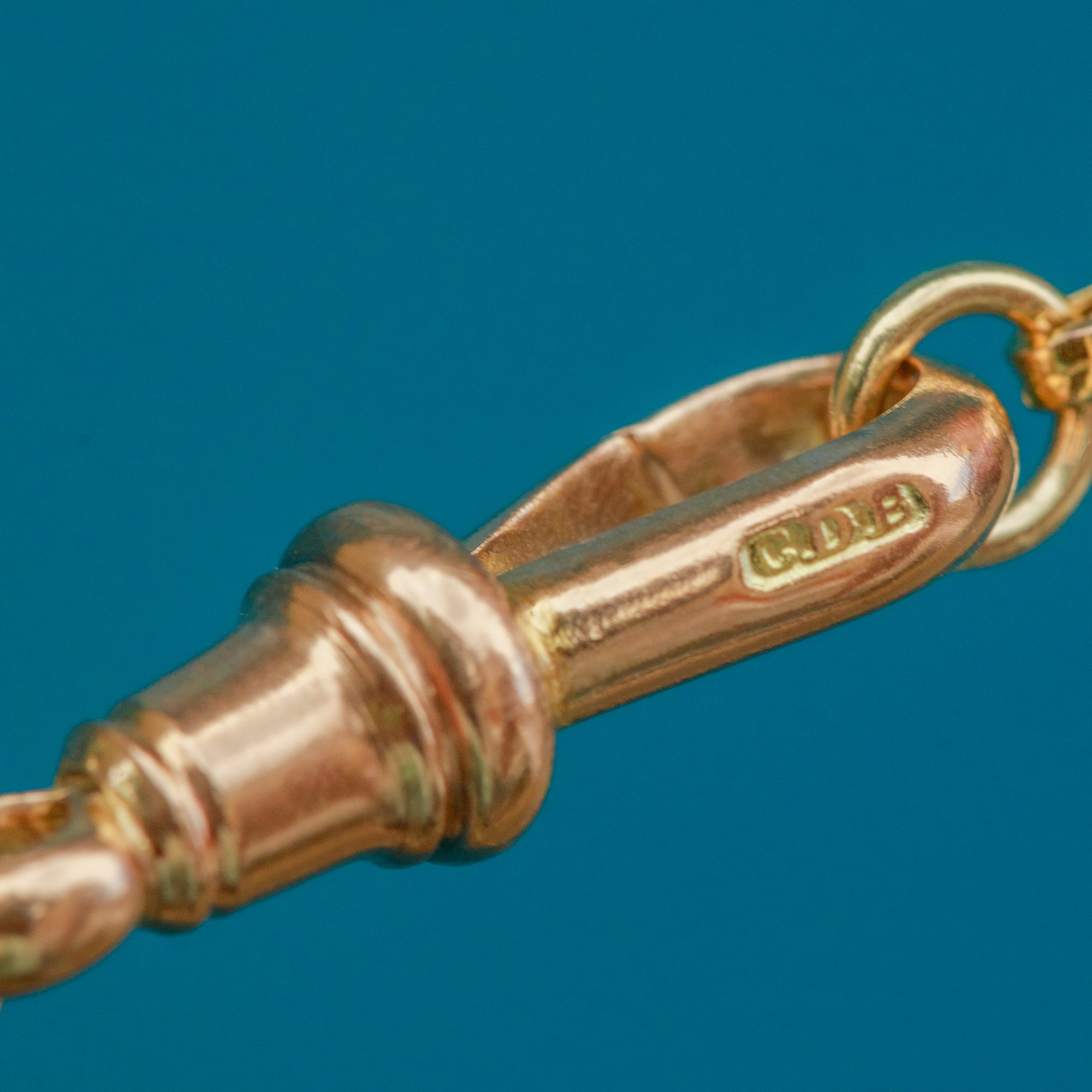 EXCELLENT: This 18" antique 9ct Gold belcher chain is in stellar condition throughout. The links feel strong and sturdy, and the dog clip has excellent spring back, allowing you to wear this versatile Victorian Gold chain with confidence!