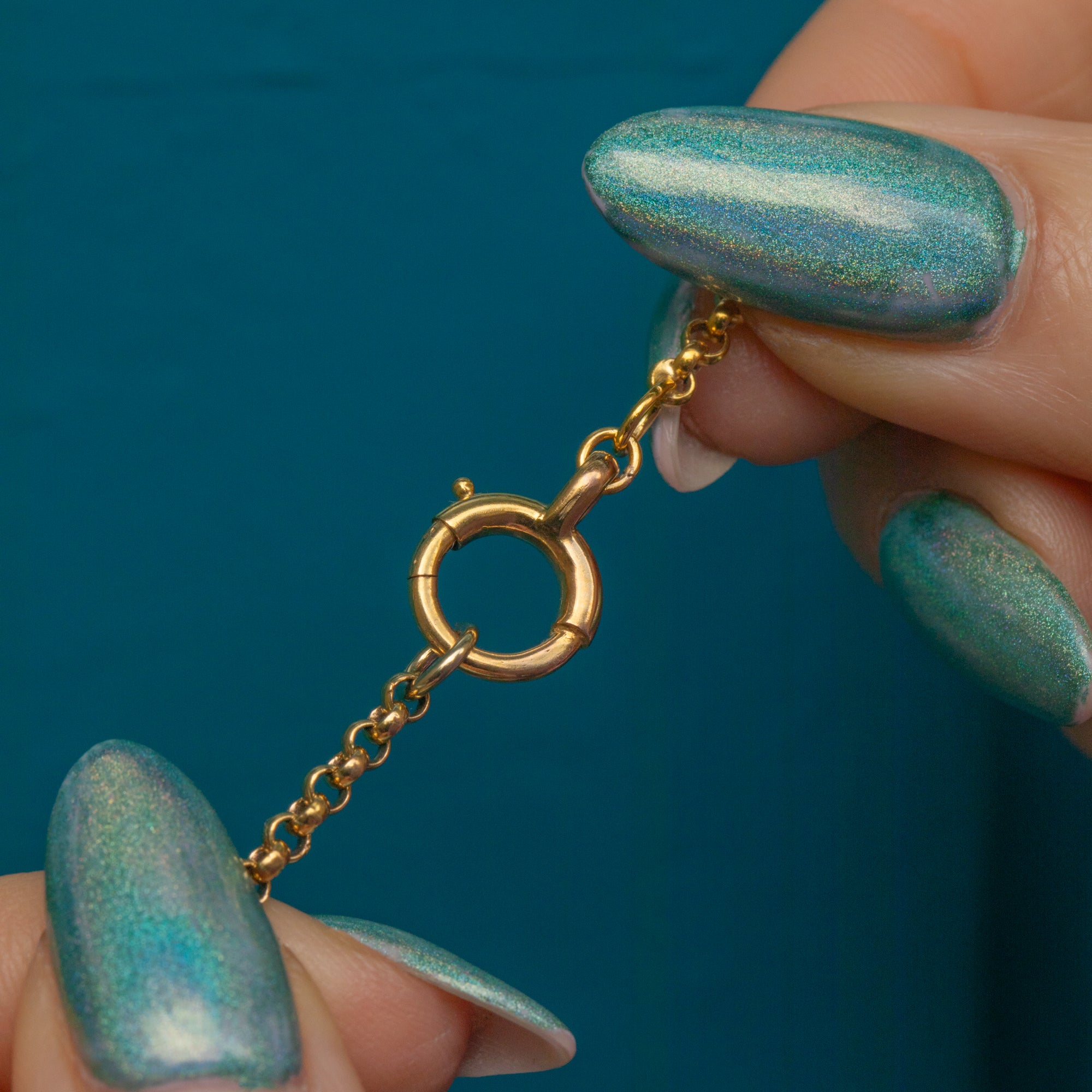 Wear this sumptuous antique 9ct Gold belcher chain to bring a little bit of sunshine with you wherever you go! You can wear this beautiful Victorian chain as a standalone piece, or suspend an antique pendant from her generously sized bolt ring for a personal touch!