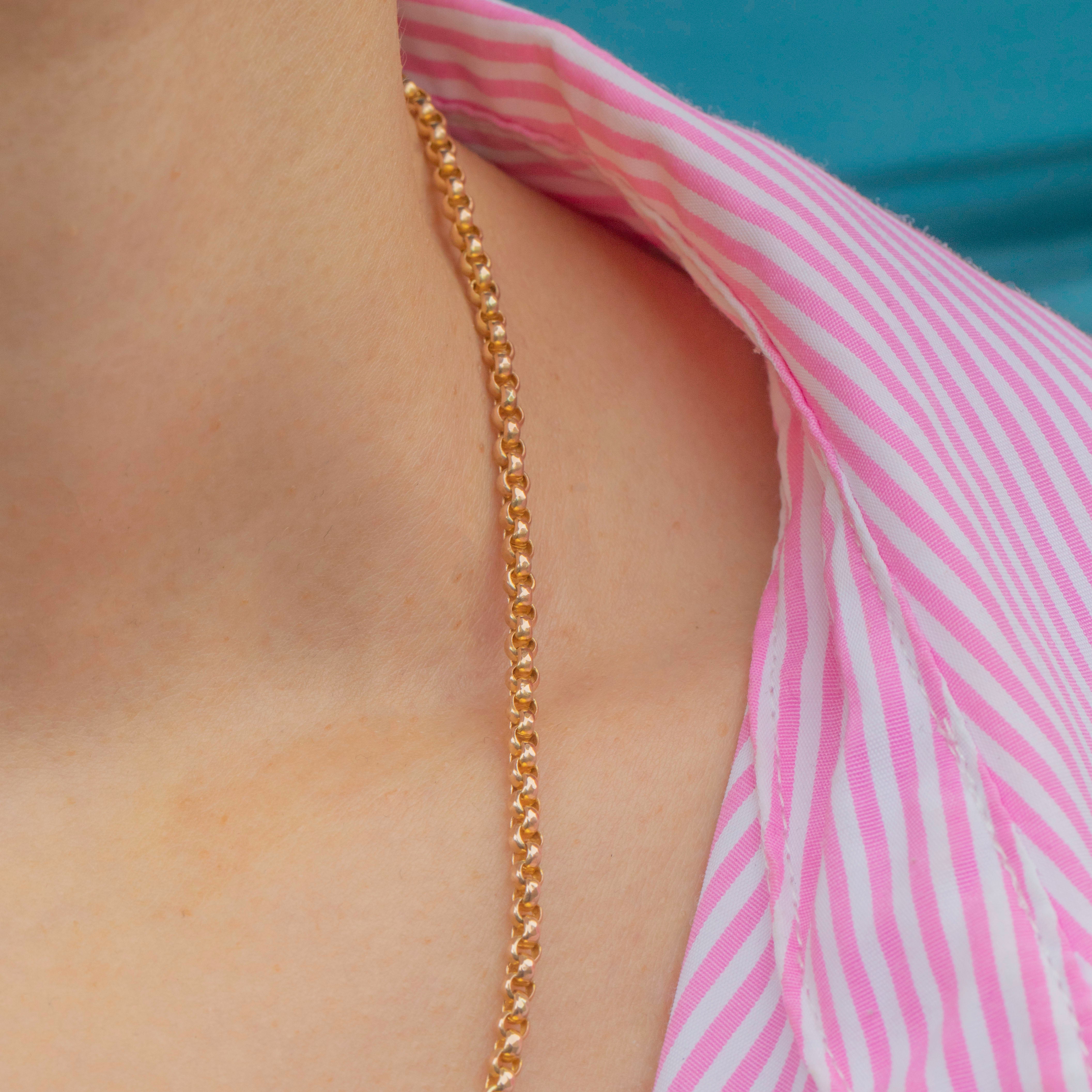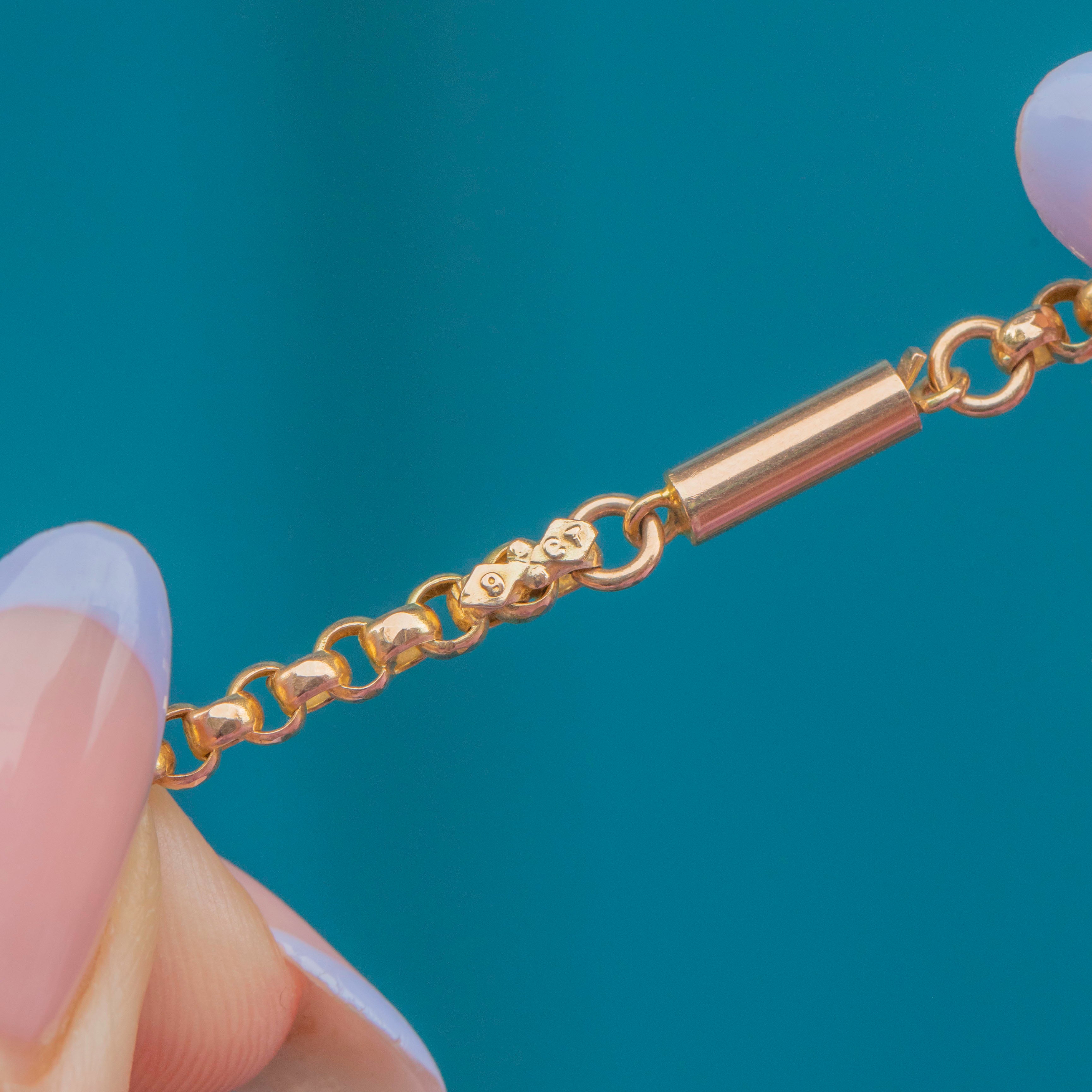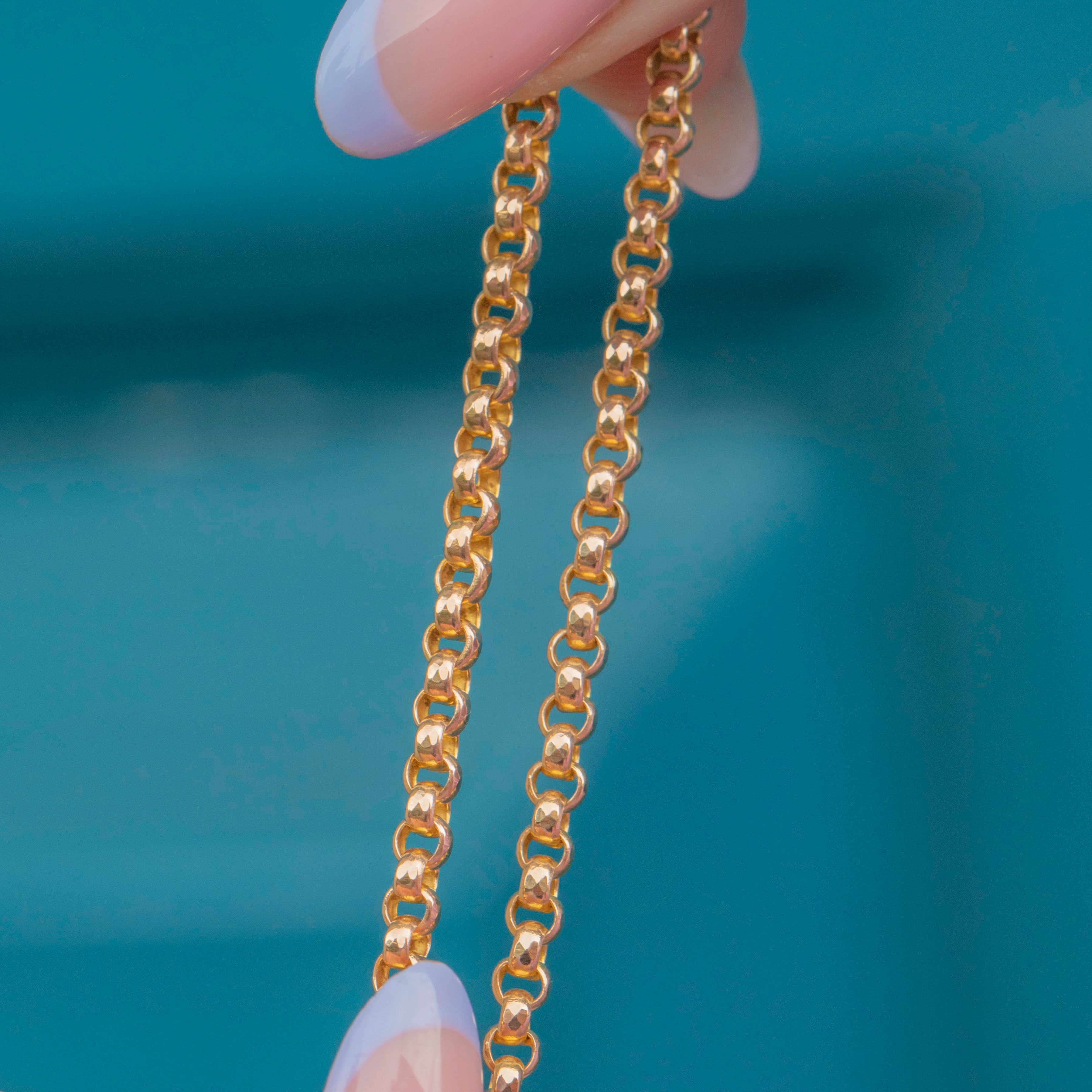This antique 9ct Gold faceted belcher chain will make a versatile addition to your collection! The chubby belcher links are crafted from sun-kissed 9ct Gold, each one lightly faceted to send Golden glimmers cascading across your collarbones as they catch the light.
