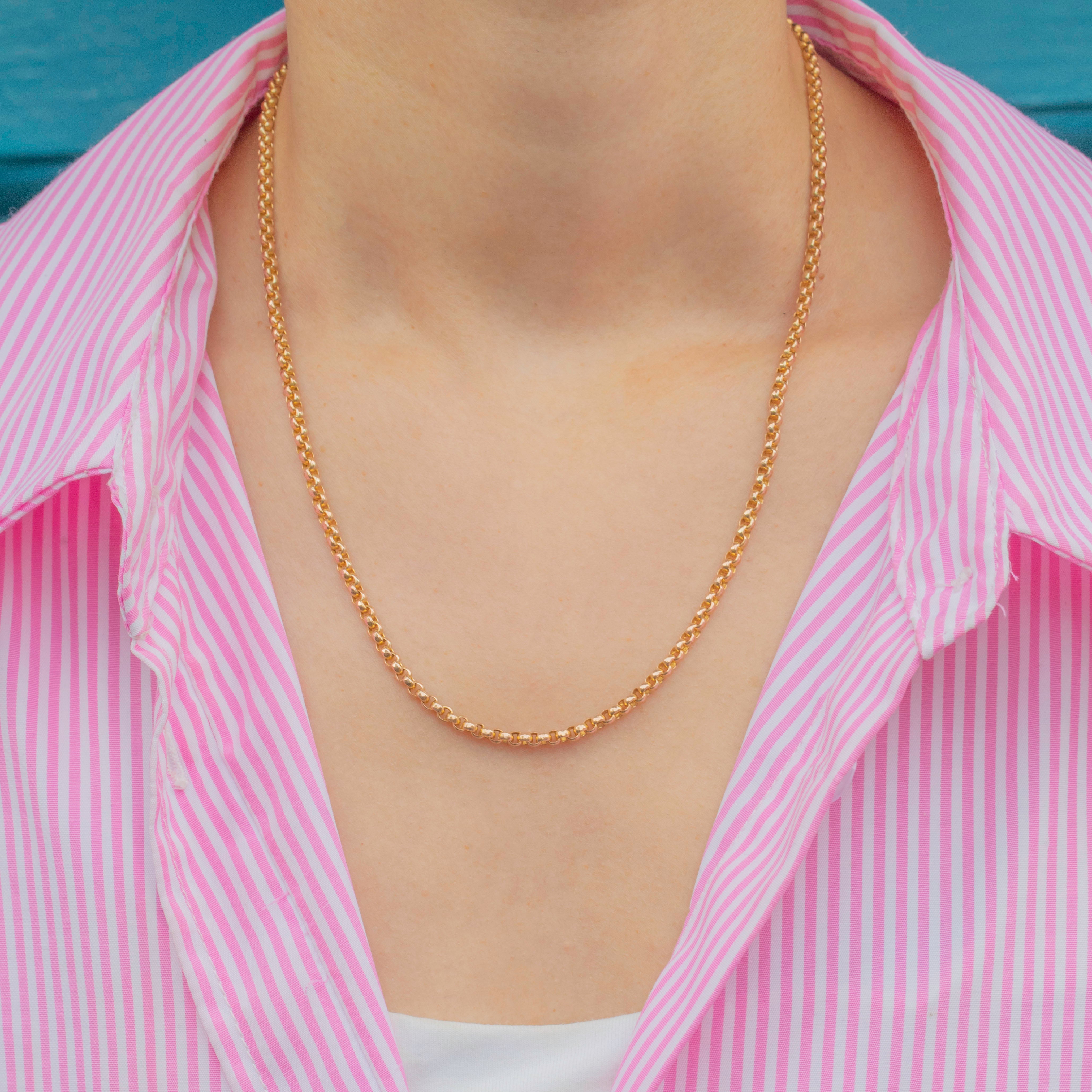 At a wearable length of 18", this Victorian Gold belcher chain can easily be styled with a chunky pendant or locket, stacked in a chain-mess, or worn as a standalone piece, bringing a welcome flash of Gold to your attire!