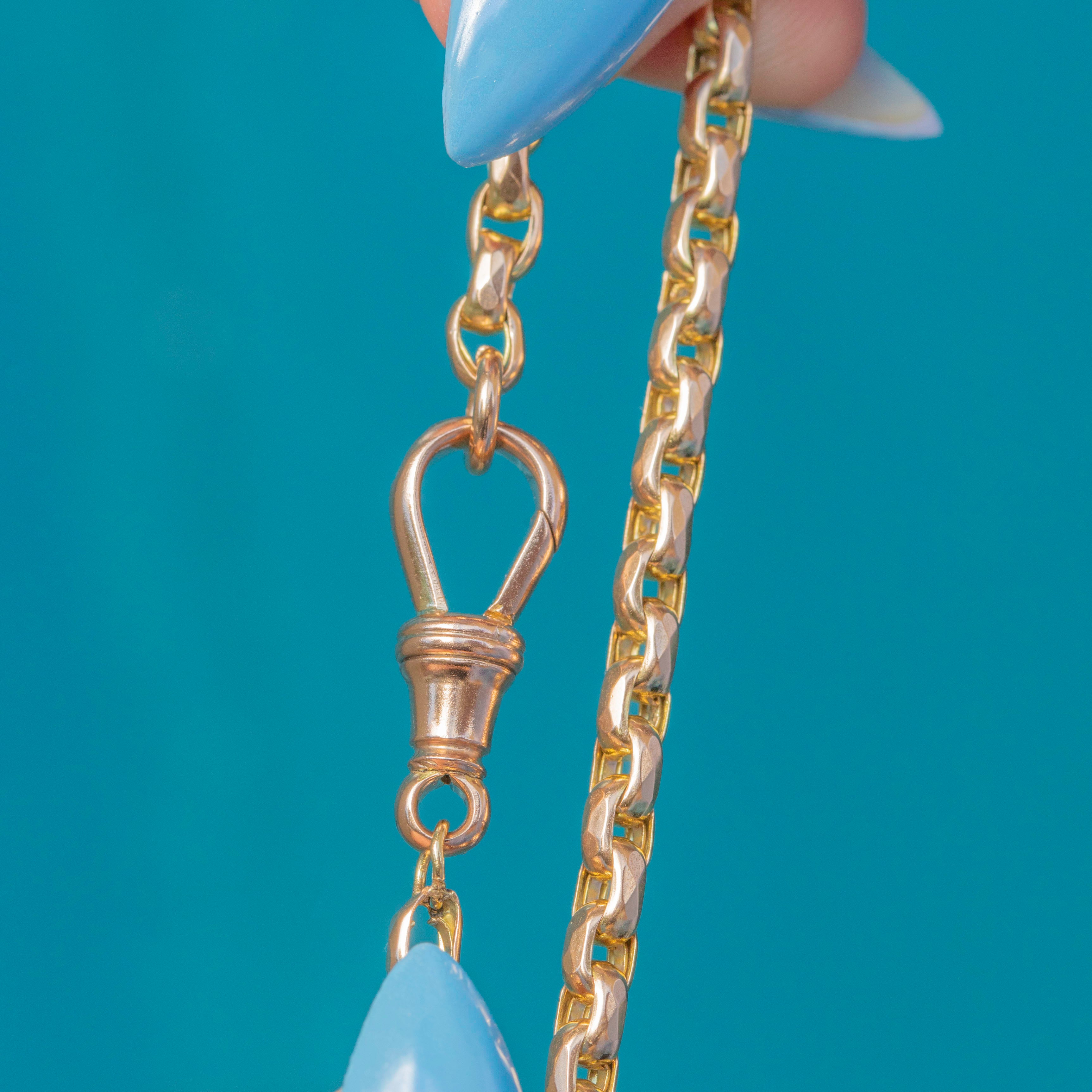 It is crafted from 14.5 grams of solid Gold and is complete with a highly sought-after antique dog-clip - perfect for suspending charms and chains galore!