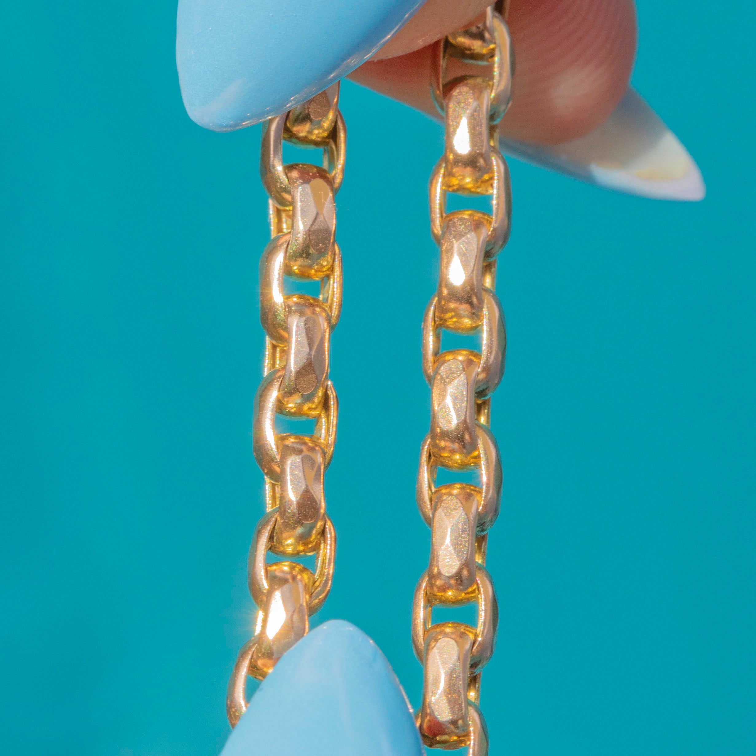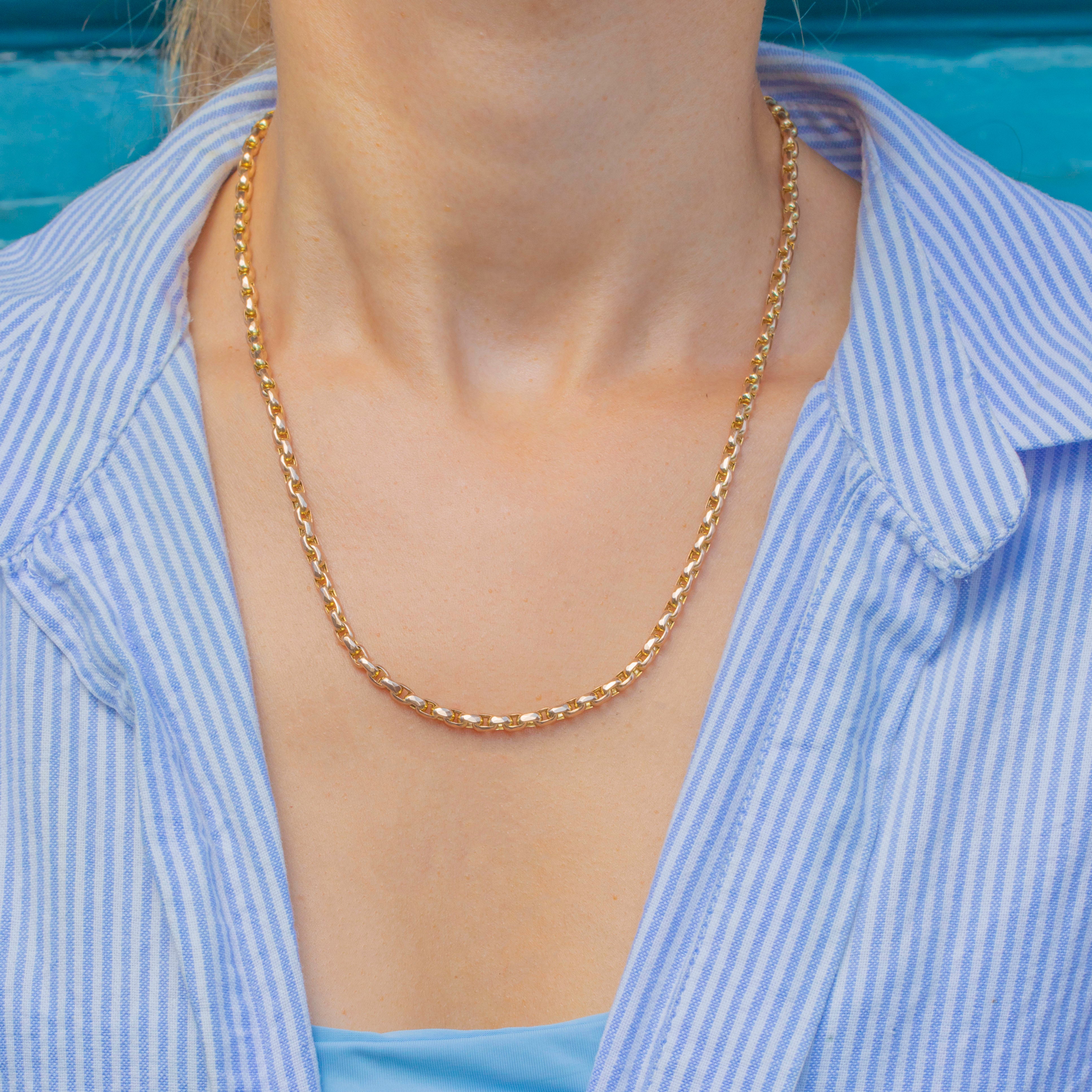 At 18" long, each link of this Victorian chain is formed from round, faceted belcher links that glint in the light and flow effortlessly across your décolletage.