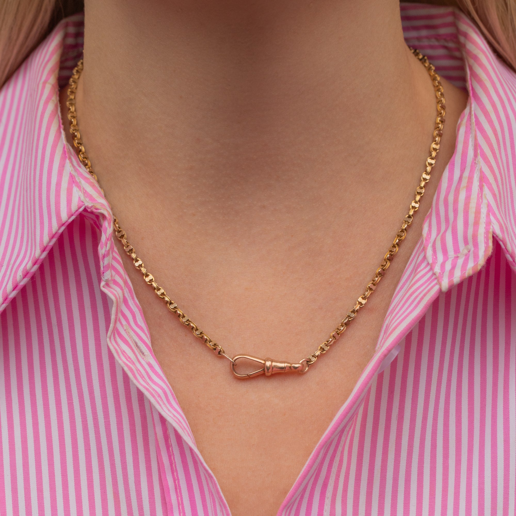 This 18" antique 9ct Gold fancy link chain is the perfect versatile piece to add to your collection! Crafted from buttery warm yellow 9ct Gold, this Victorian chain features gorgeous supple links and an adorable, highly sought-after dog-clip.