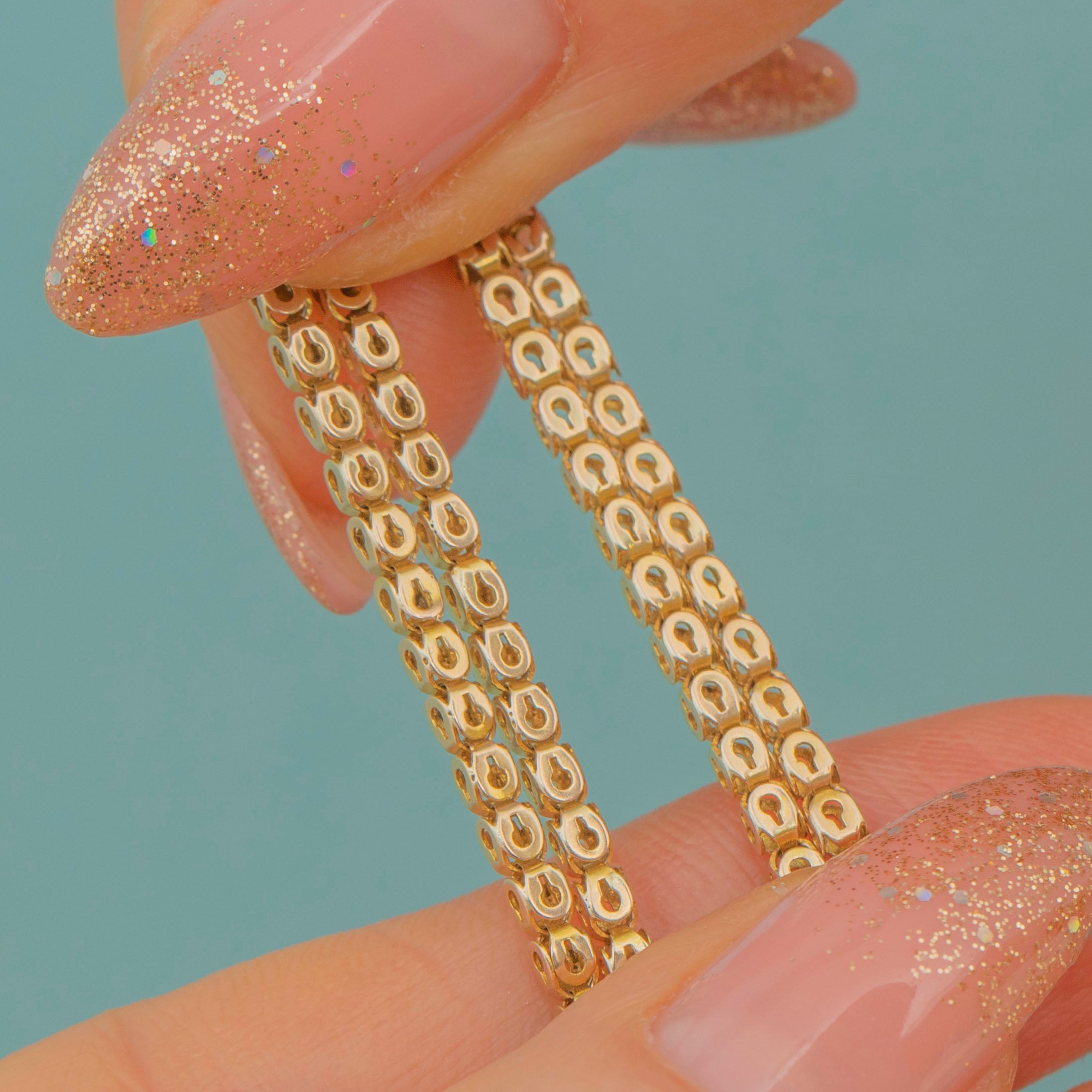 Her symmetrical boxed pierced details catch in the light beautifully, ensuring the 9ct Gold will look radiant no matter how you style her - wear alone for a pop of antique Gold, or within a fun necklace stack.