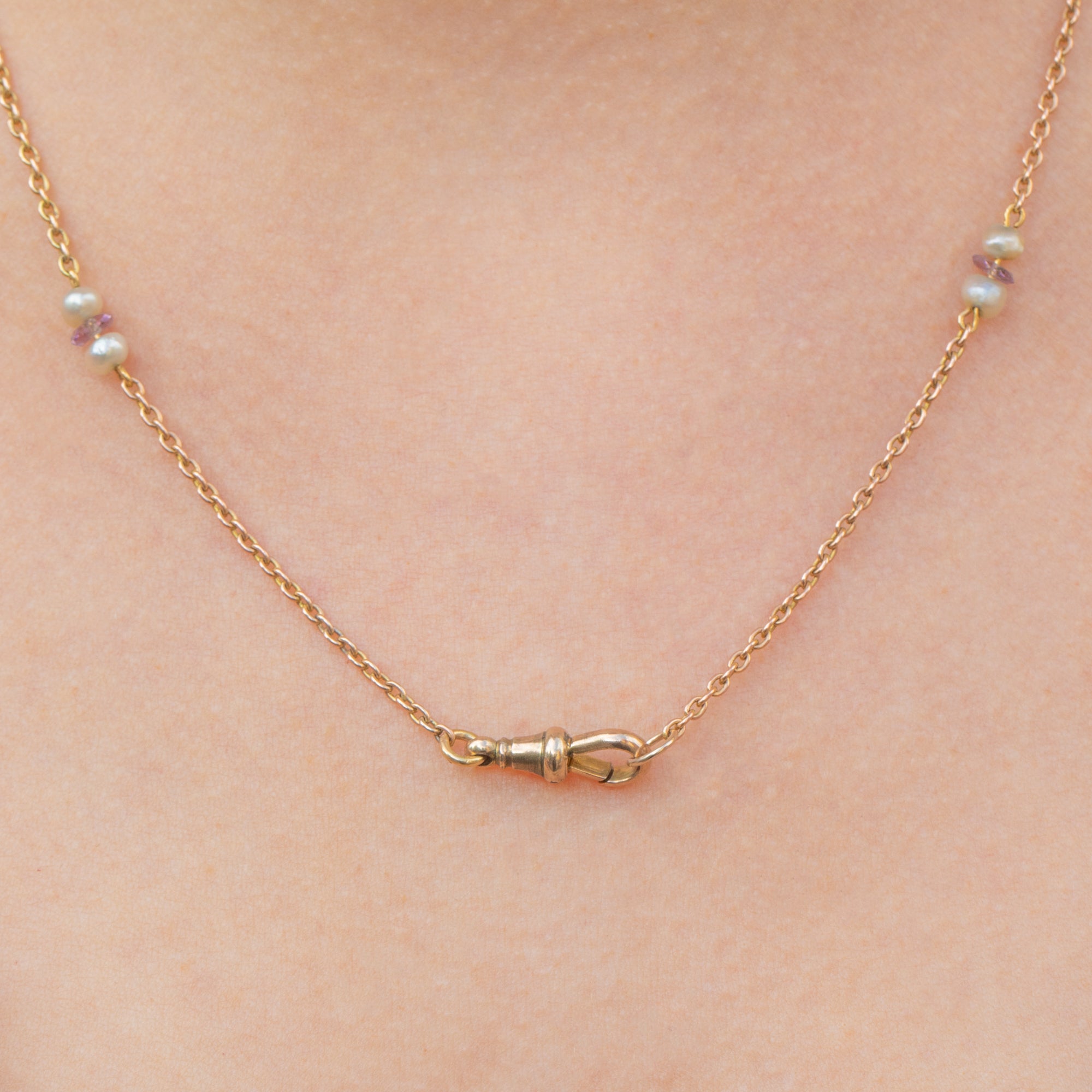 18" Antique Gold Pearl Amethyst Chain, with Dog-Clip