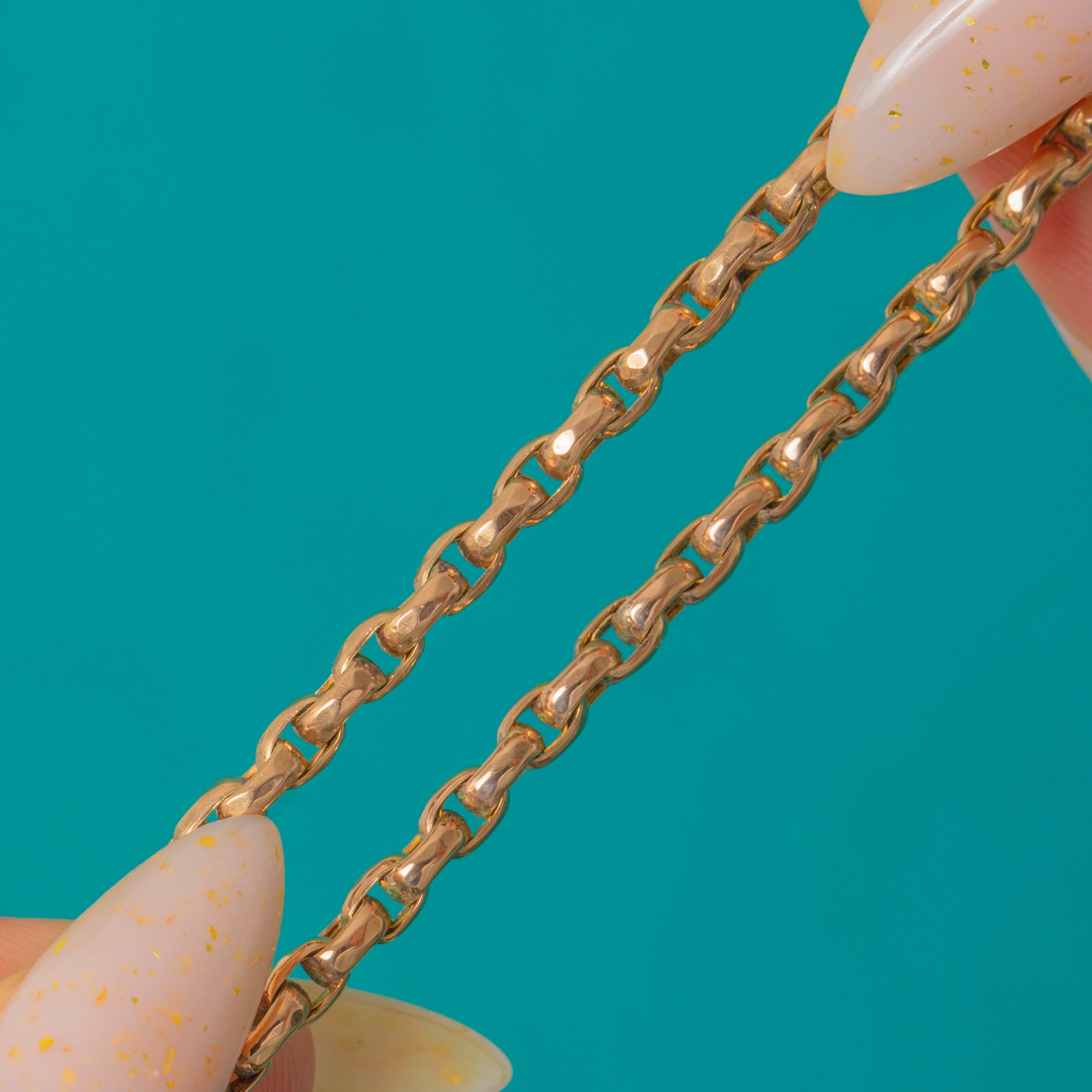 A timeless Victorian 9ct Gold chain with beautifully uniform interlocking links that drape smoothly and glow with a warm, mellow hue. Minimalist and refined, it’s the kind of classic you’ll reach for every day.