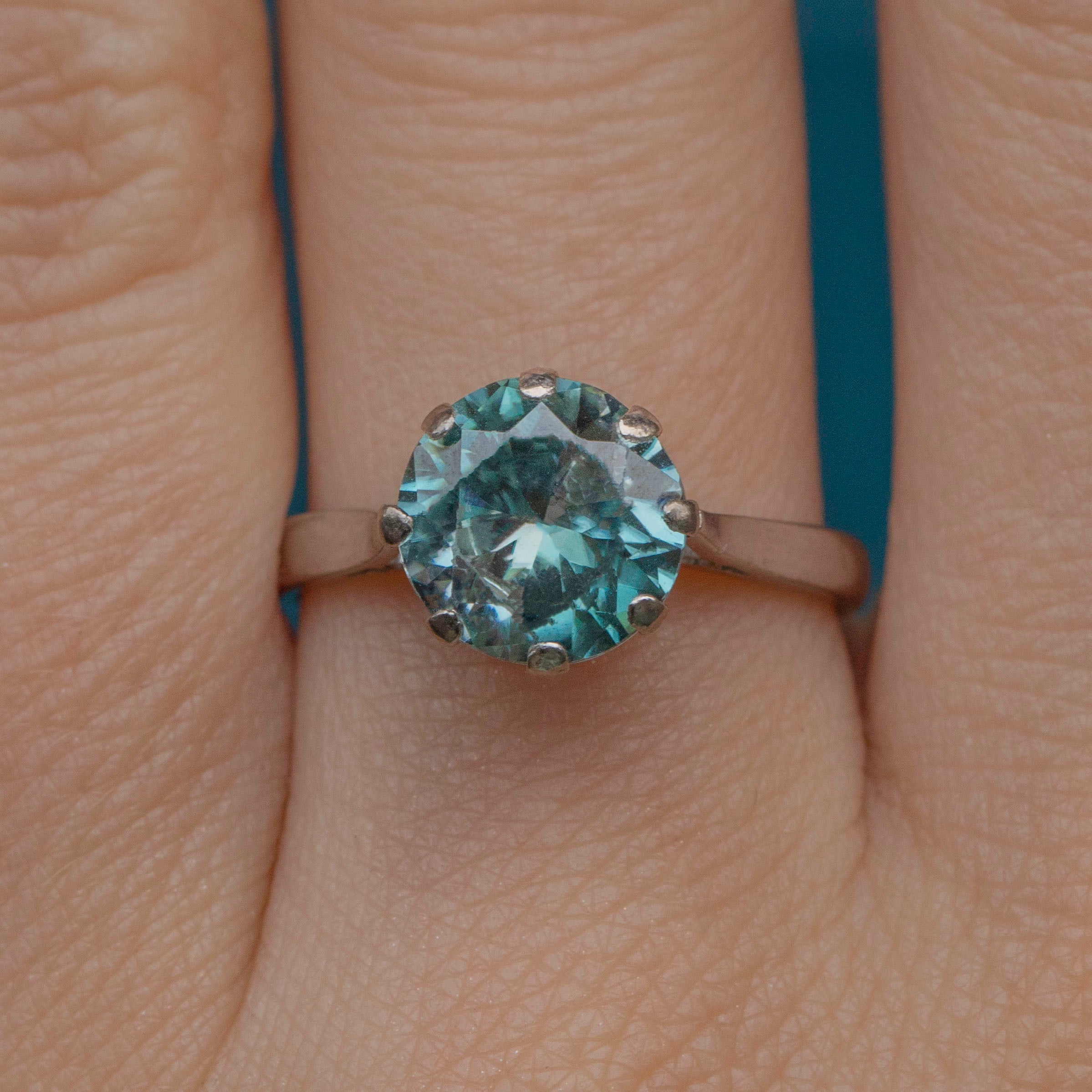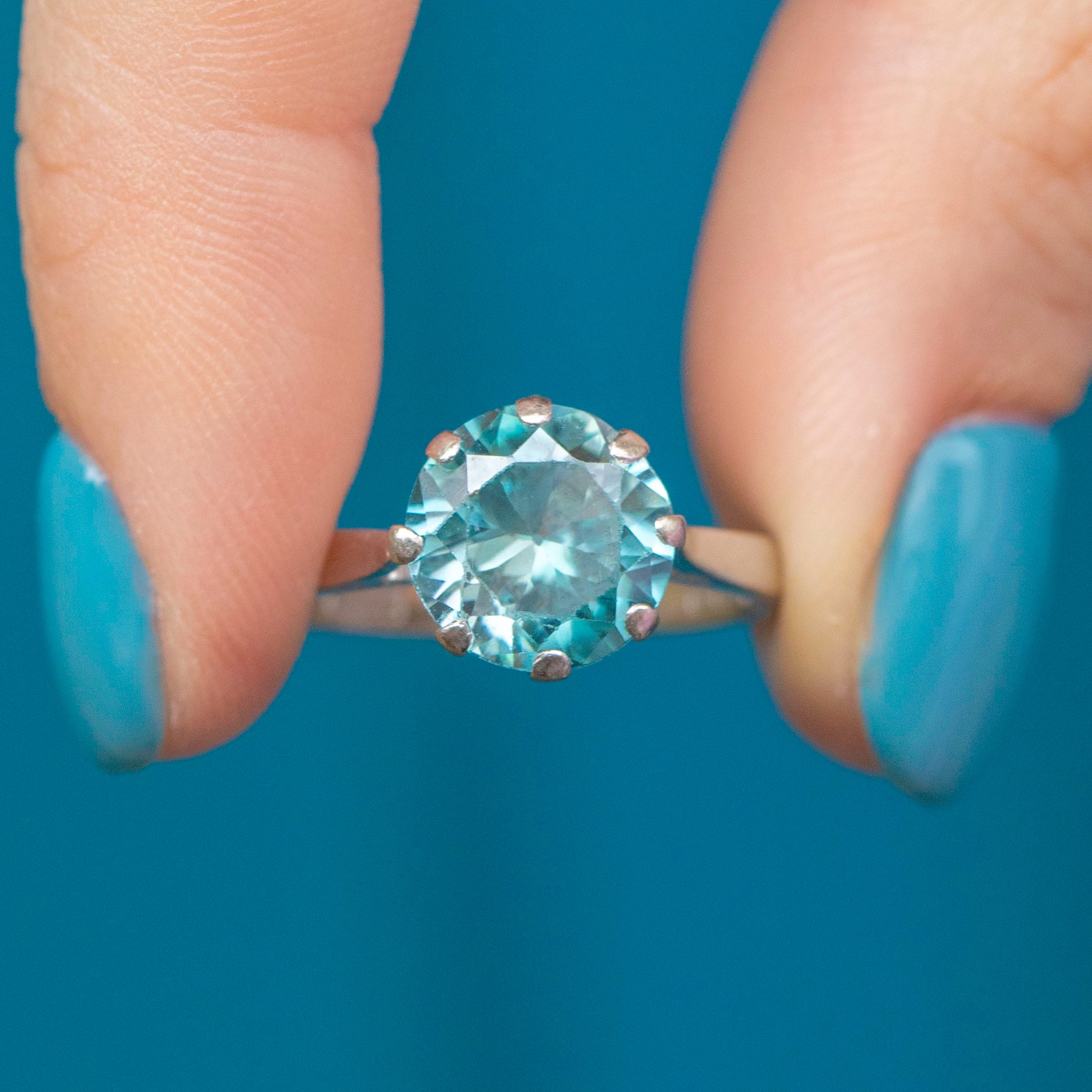 MATERIALS: 18ct White Gold shank, Blue Zircon (3.60ct).