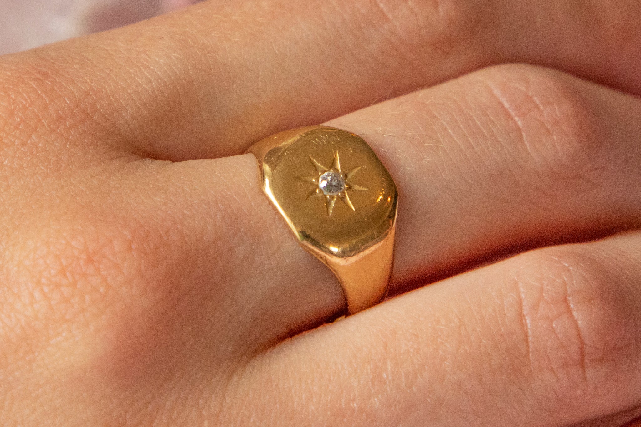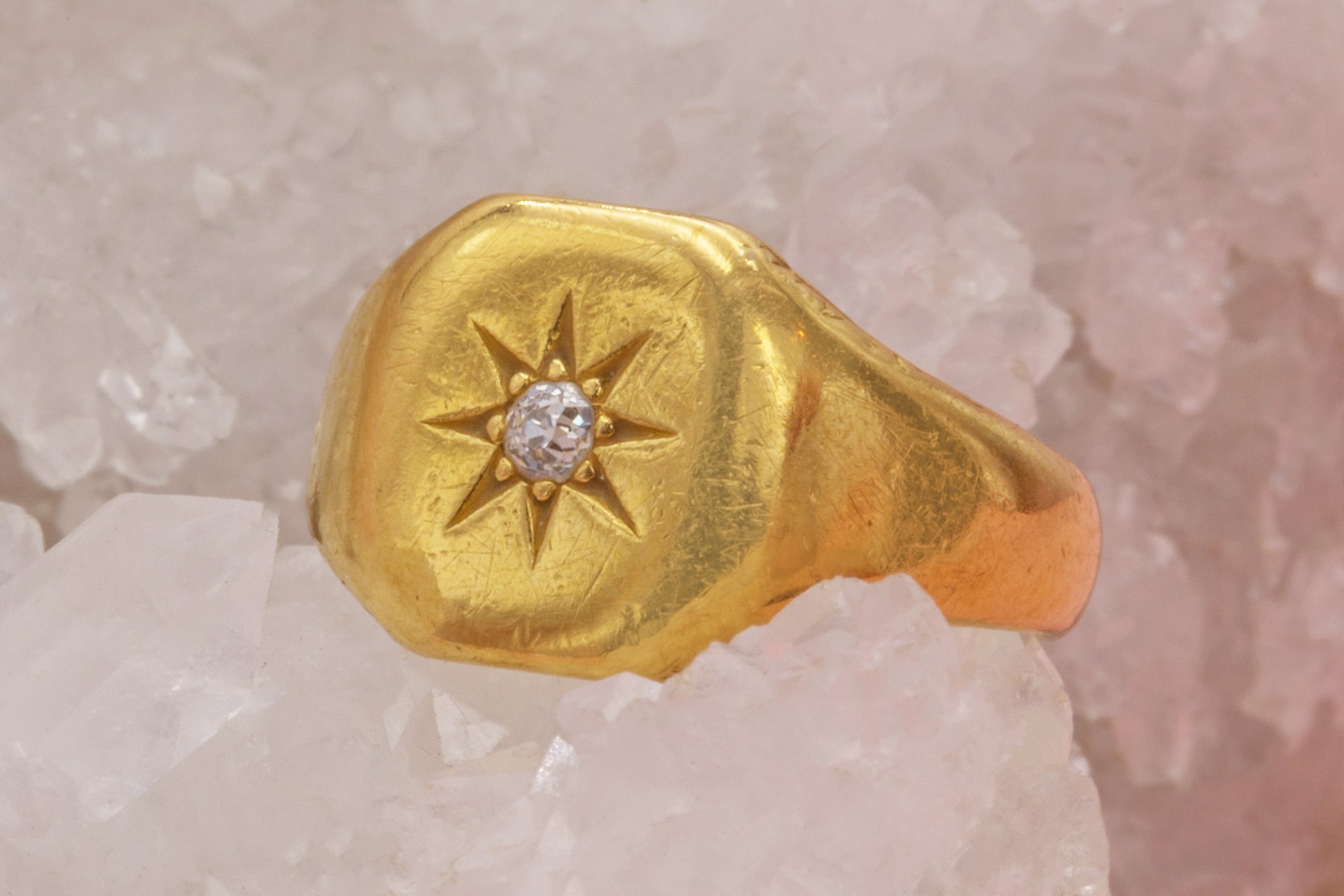 18ct ゴールド ダイヤモンド「スターセット」シグネットリング