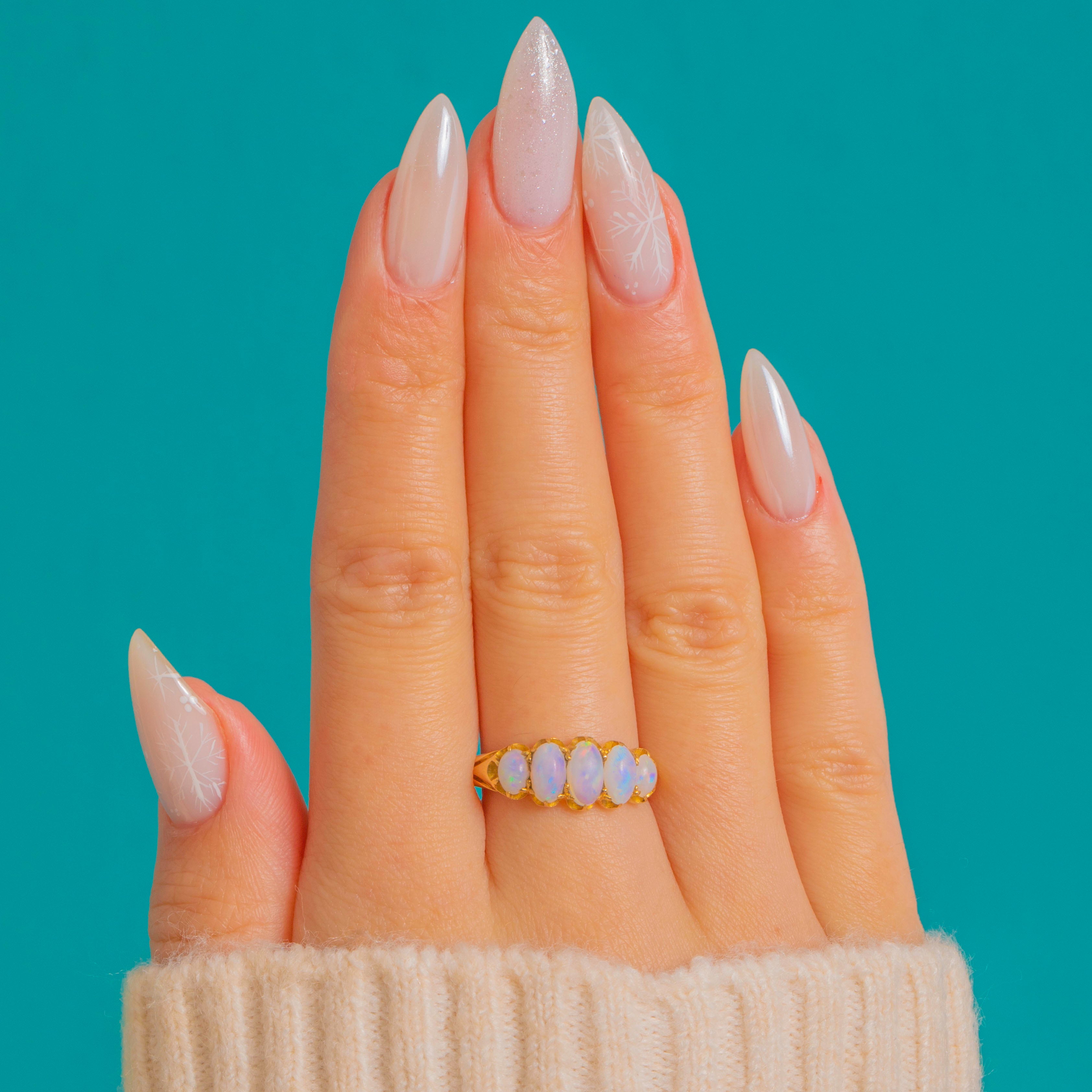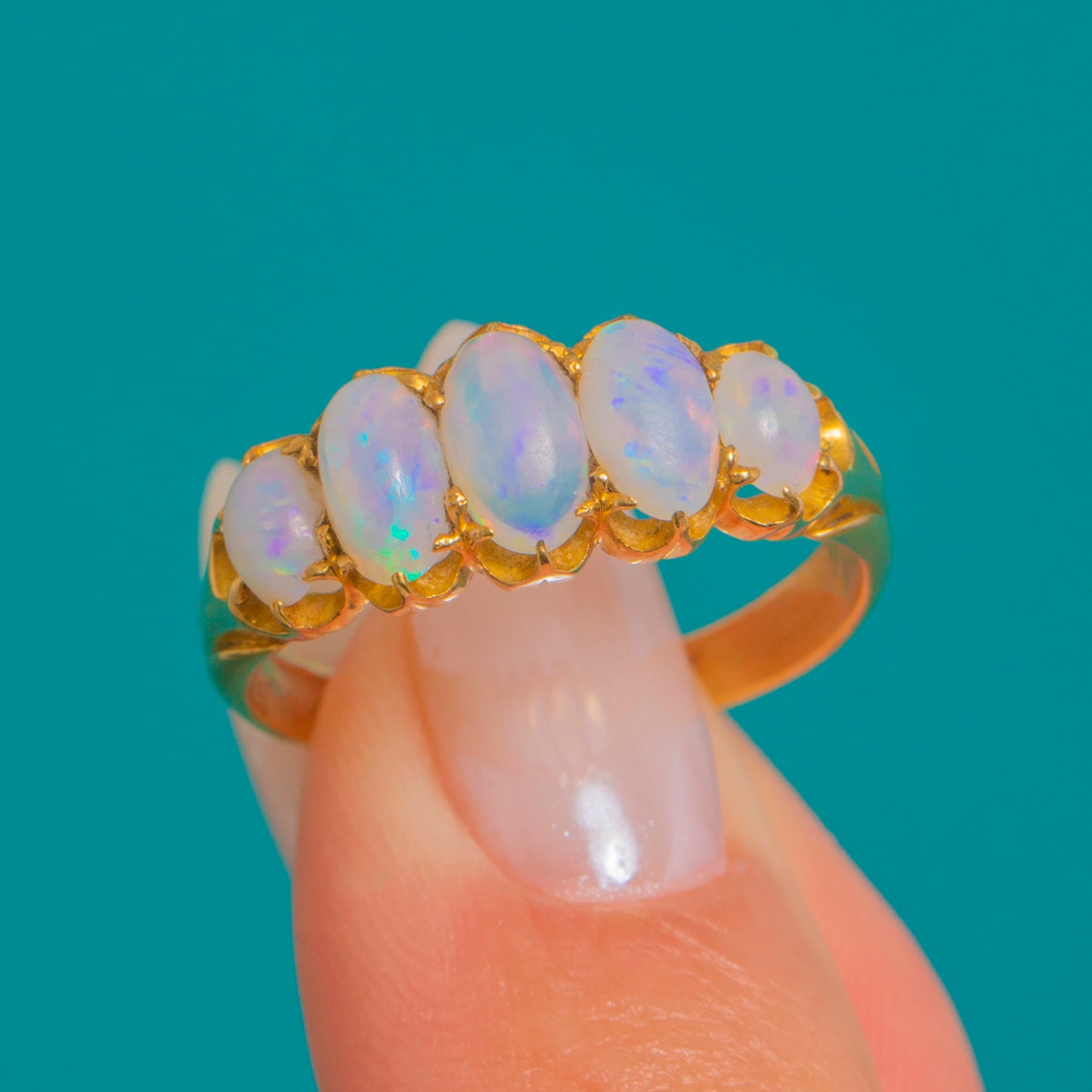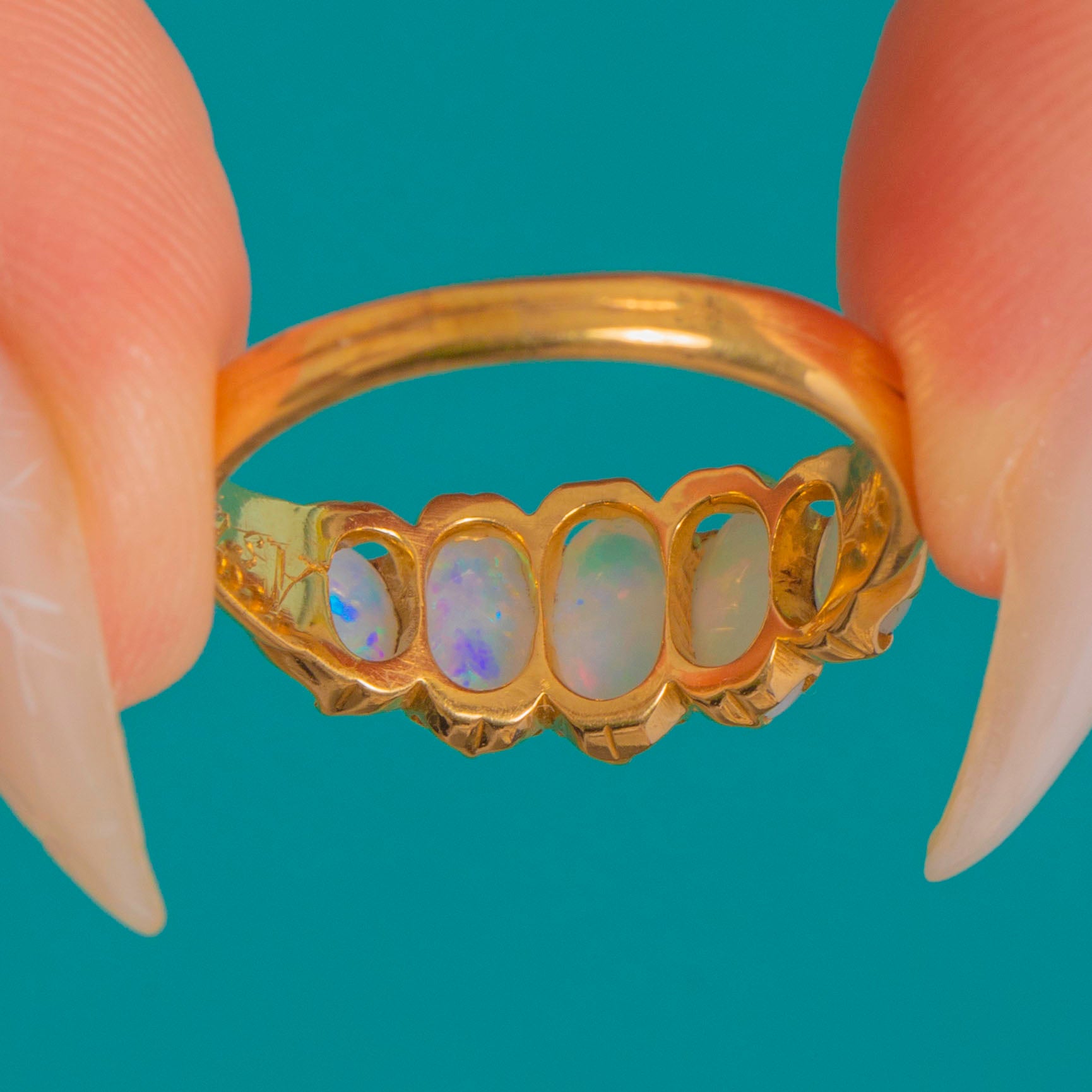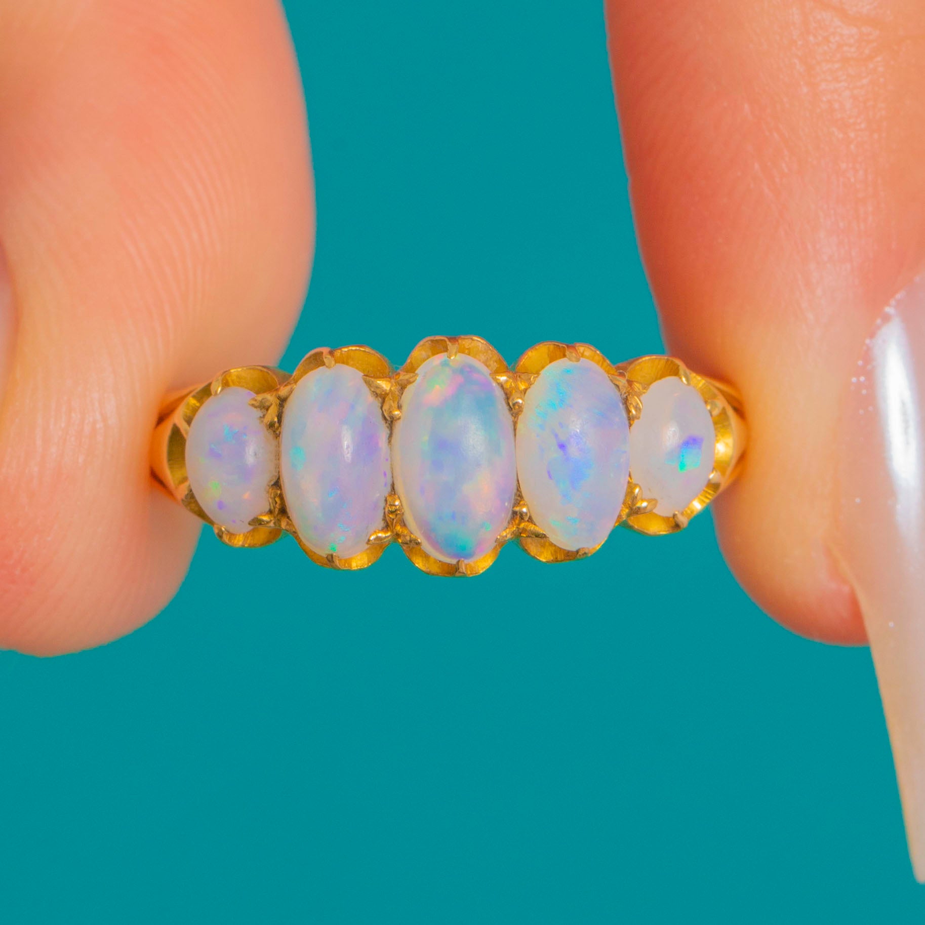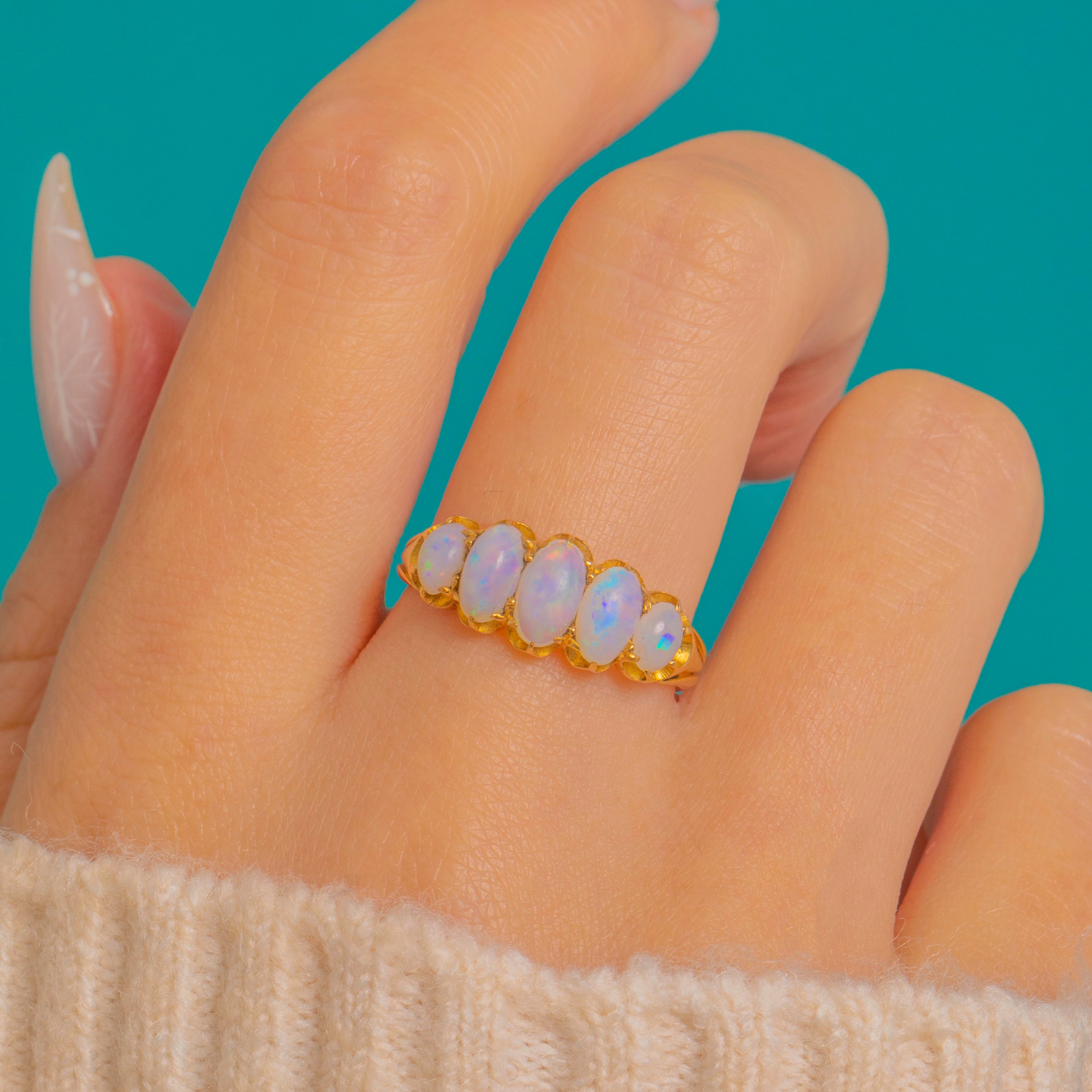 ヴィクトリアン 18ct ゴールド ファイブストーン オパール リング