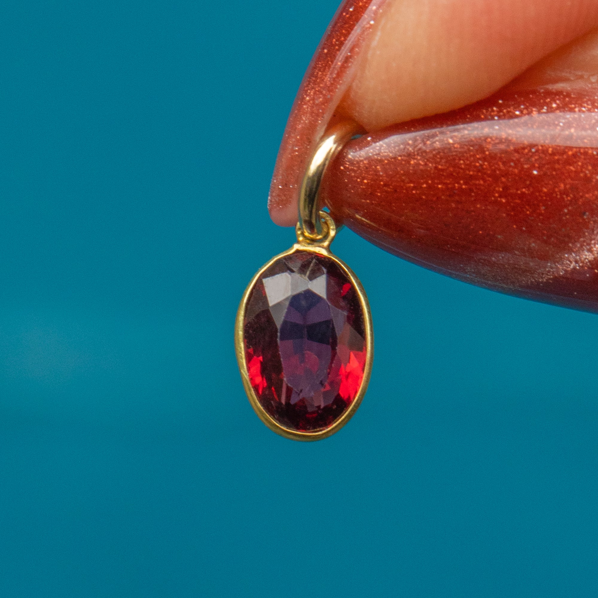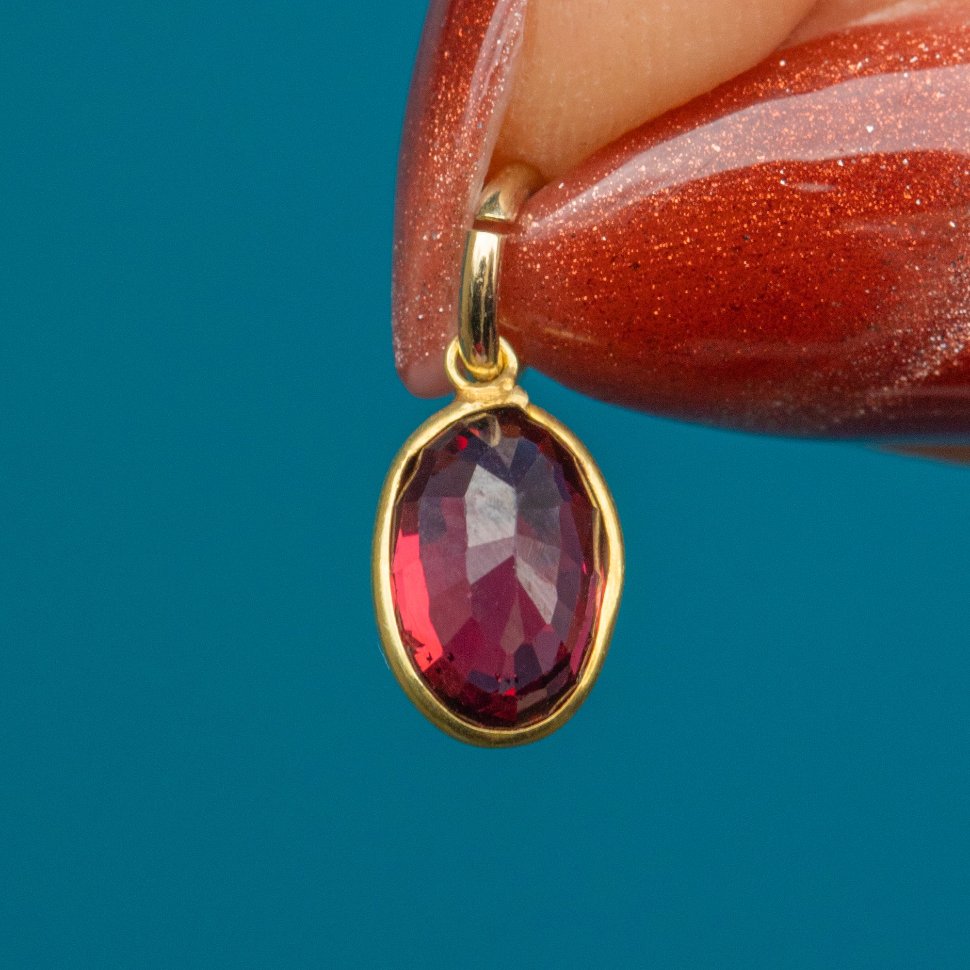 18ct Gold Garnet Bezel Set Oval Charm, 0.90ct