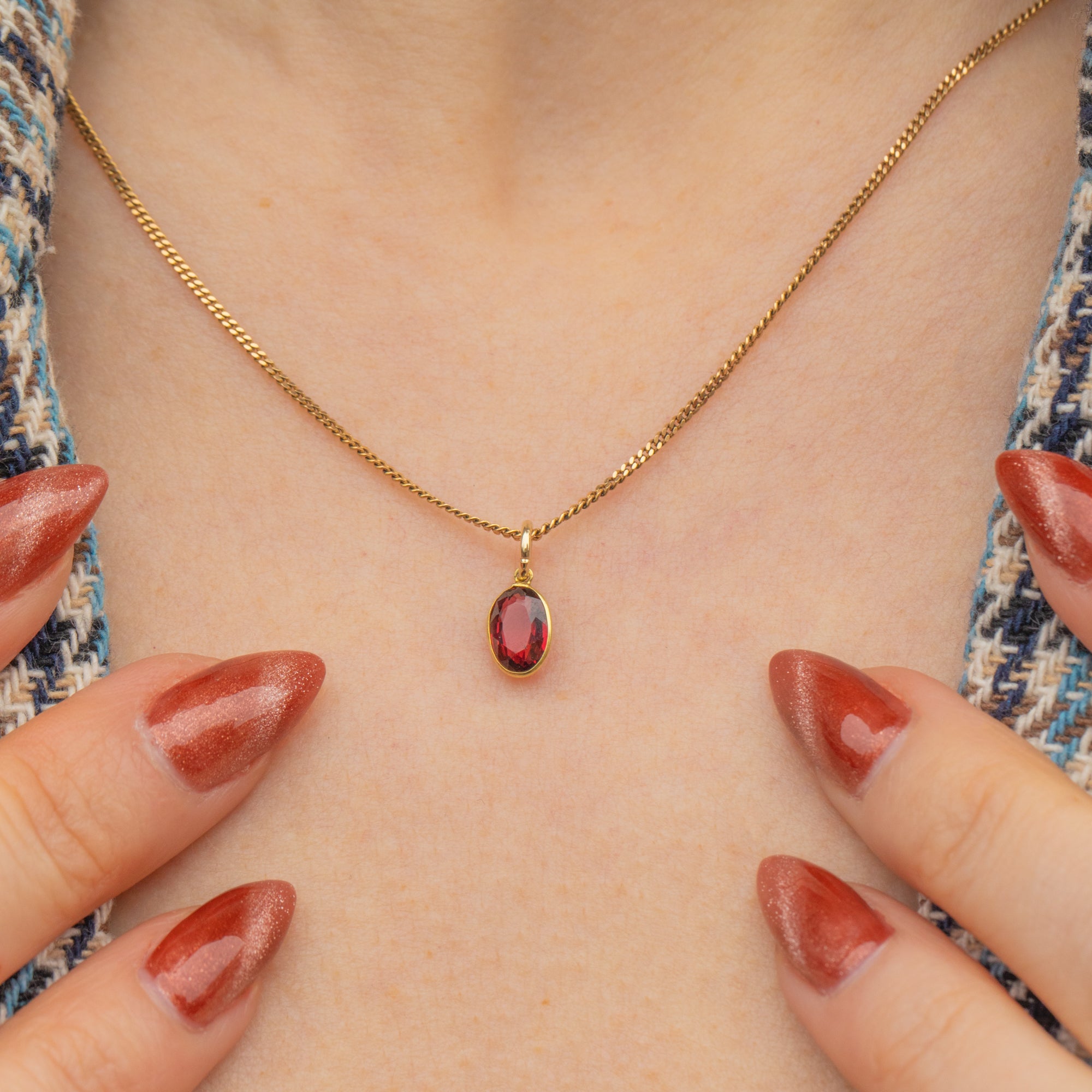 Encased in a buttery 18ct Gold bezel setting, this oval-cut Garnet will effortlessly marry with your antique or modern jewels. Lightweight and perfect for everyday wear, this petite Victorian charm will look gorgeous suspended from a fine chain or attached to a curated bracelet.