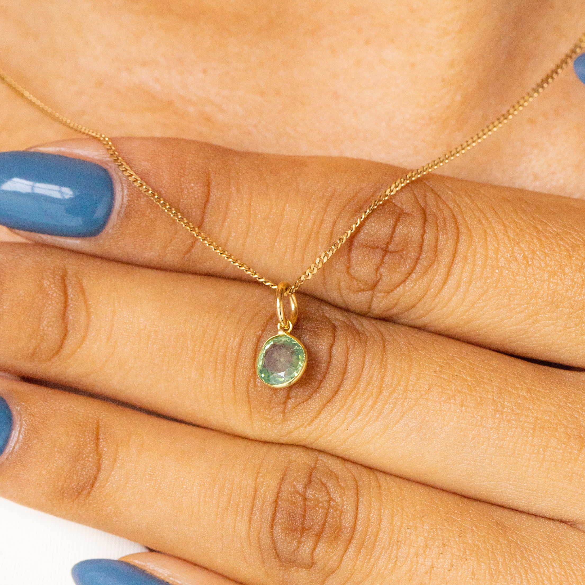 18ct ゴールド グリーンガーネット ベゼルセッティング チャーム