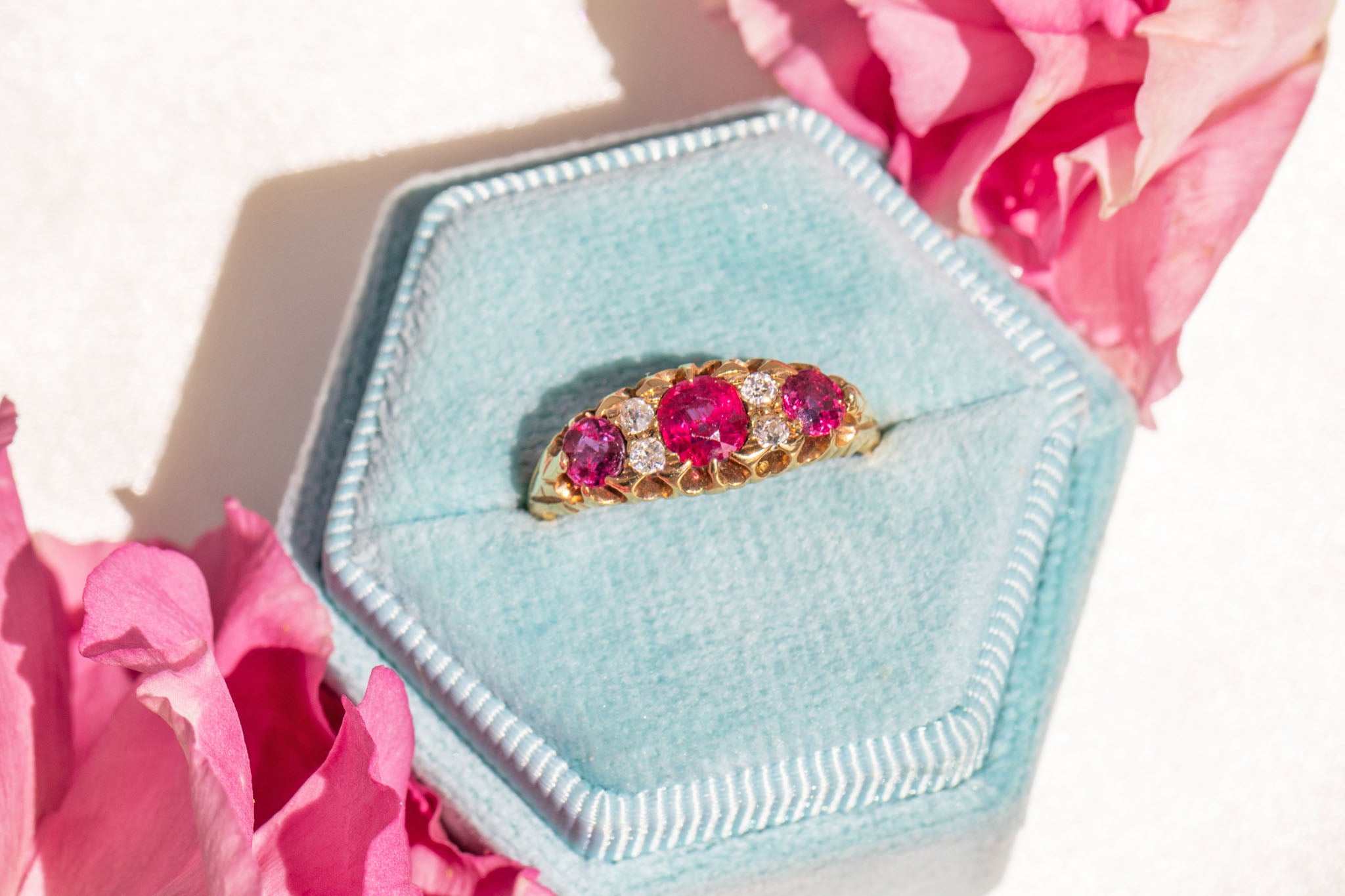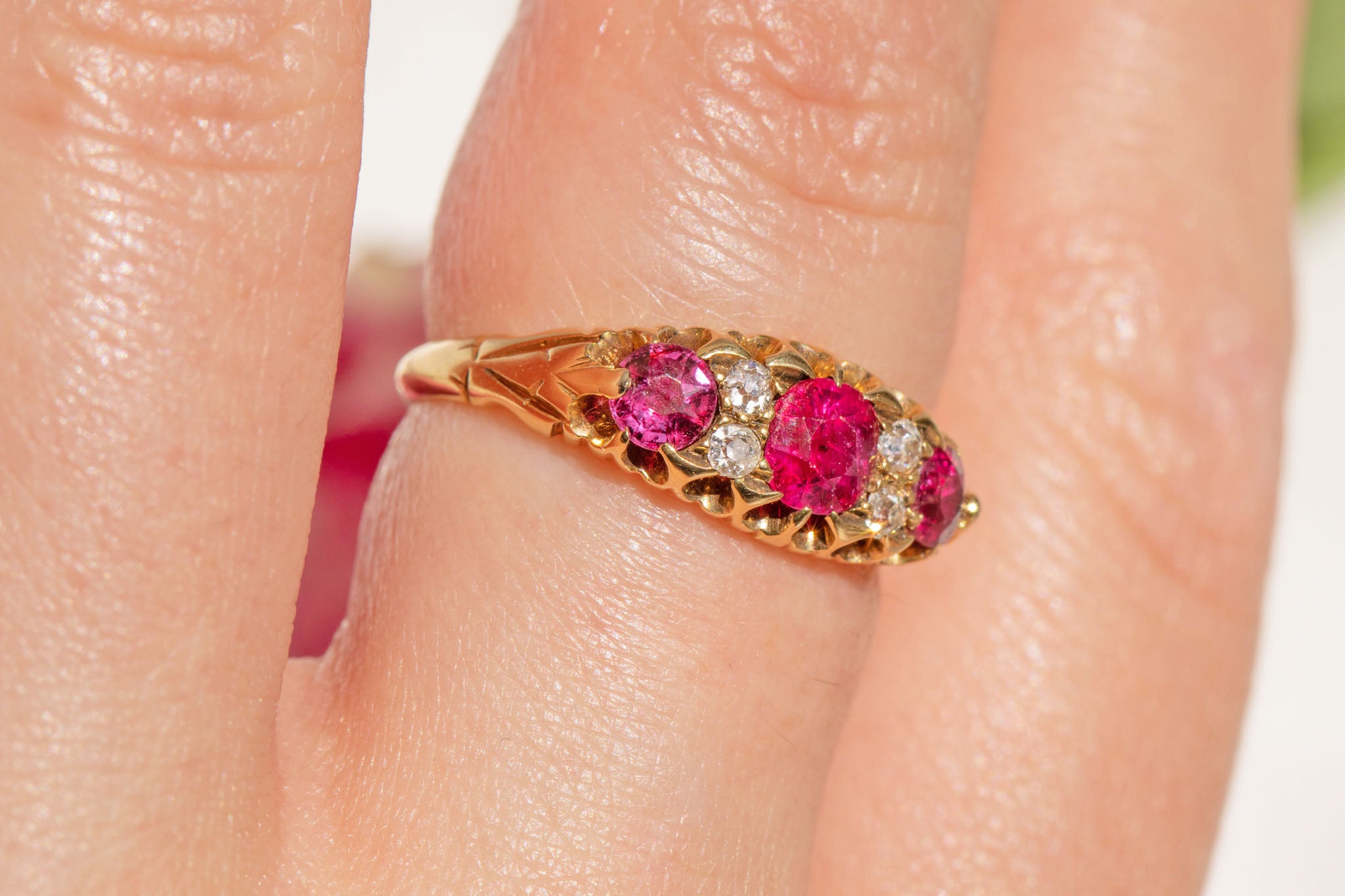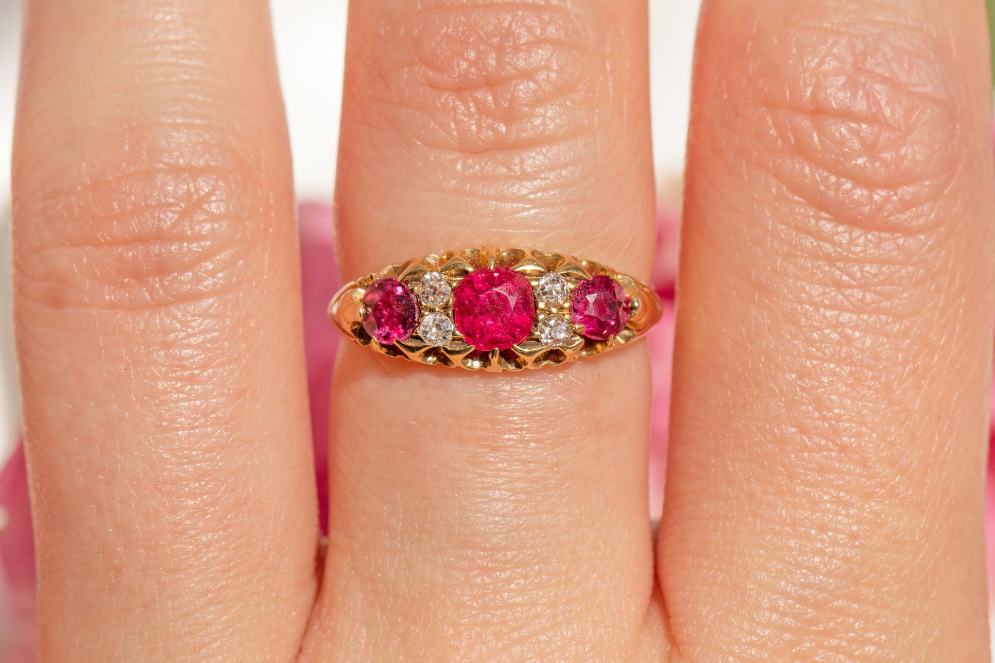18ct ゴールド 天然ルビー ダイヤモンドリング、1.00ct ルビー