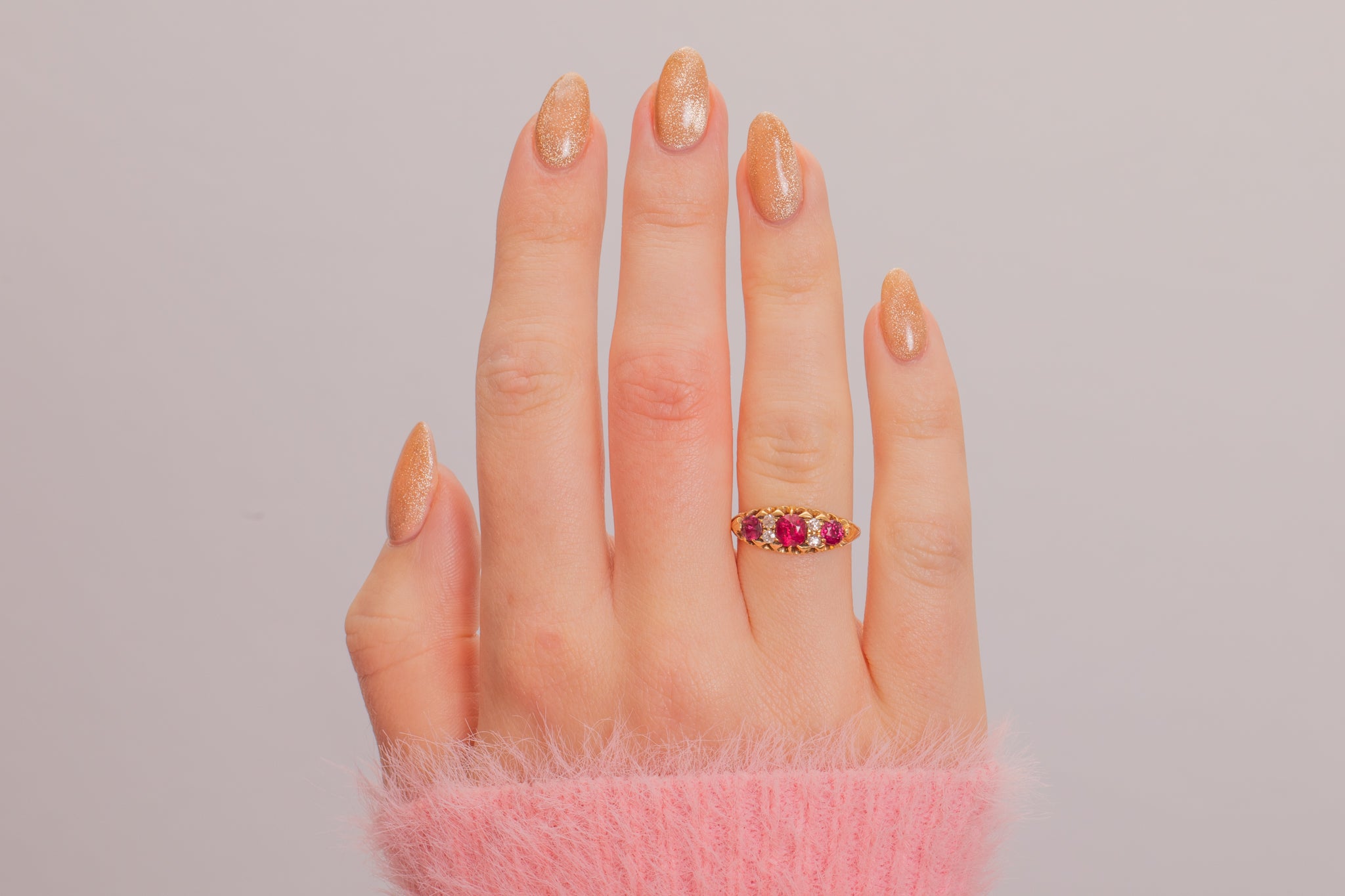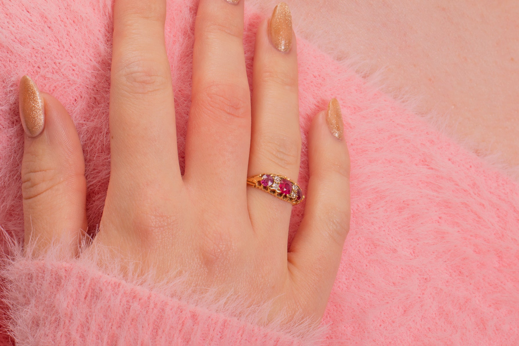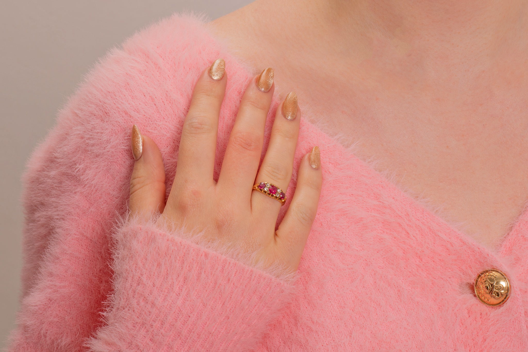 18ct ゴールド 天然ルビー ダイヤモンドリング、1.00ct ルビー