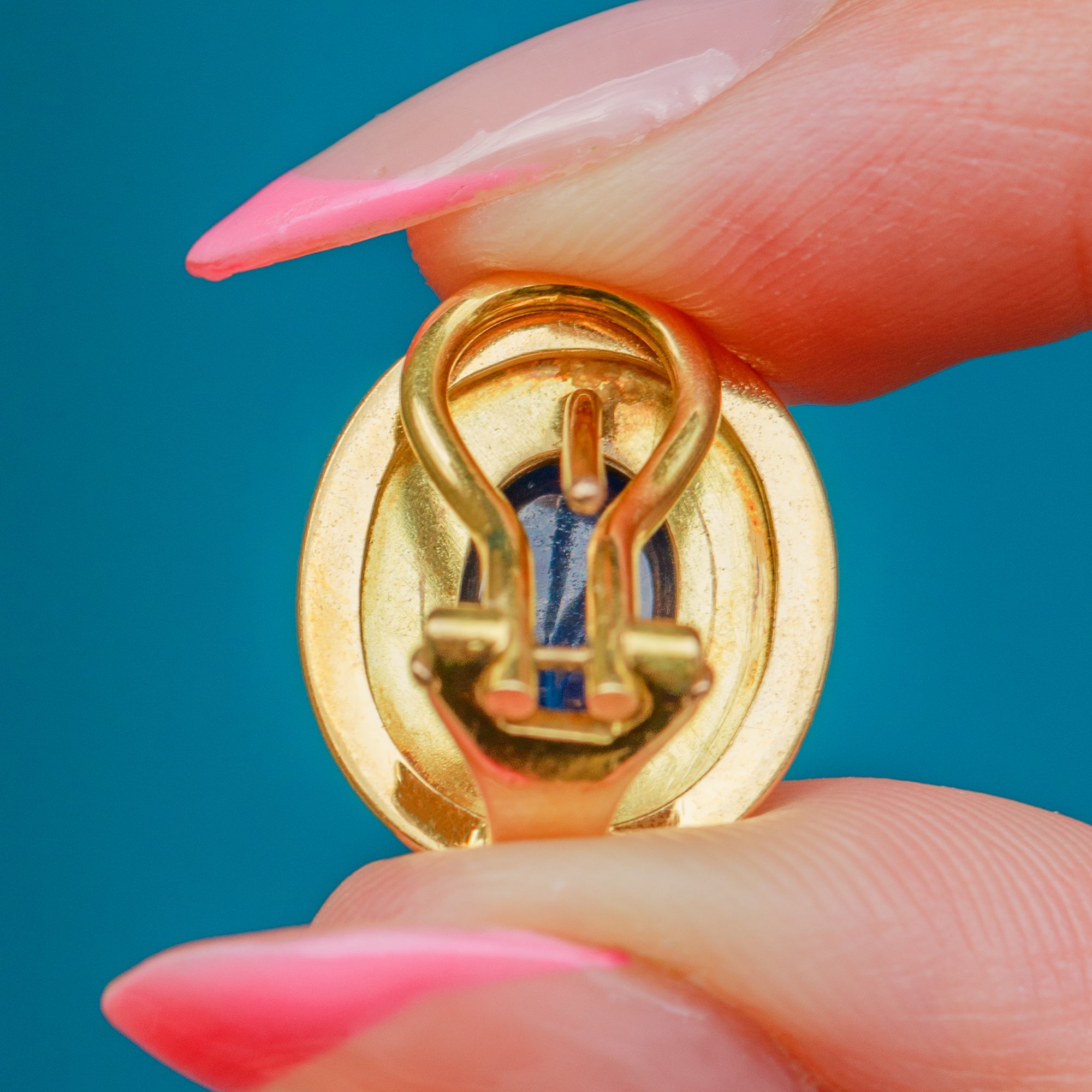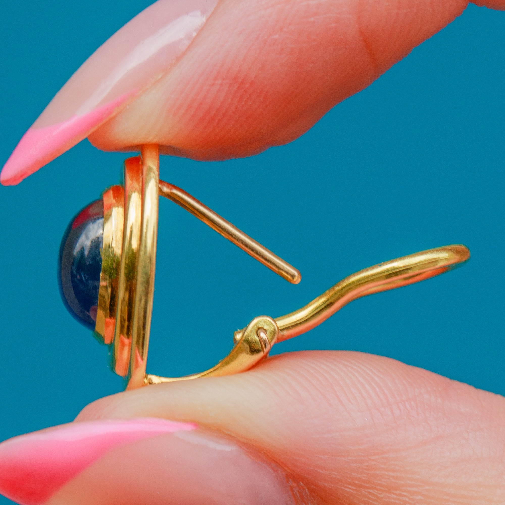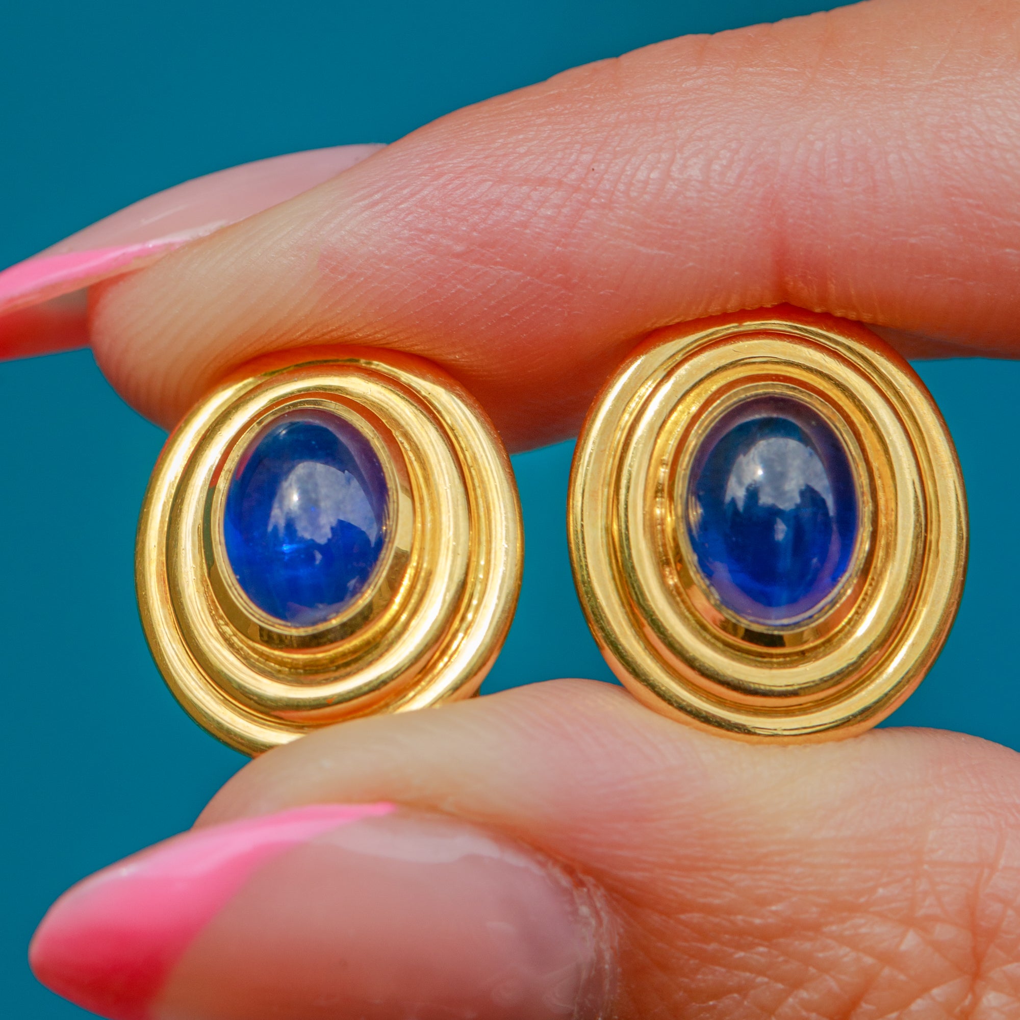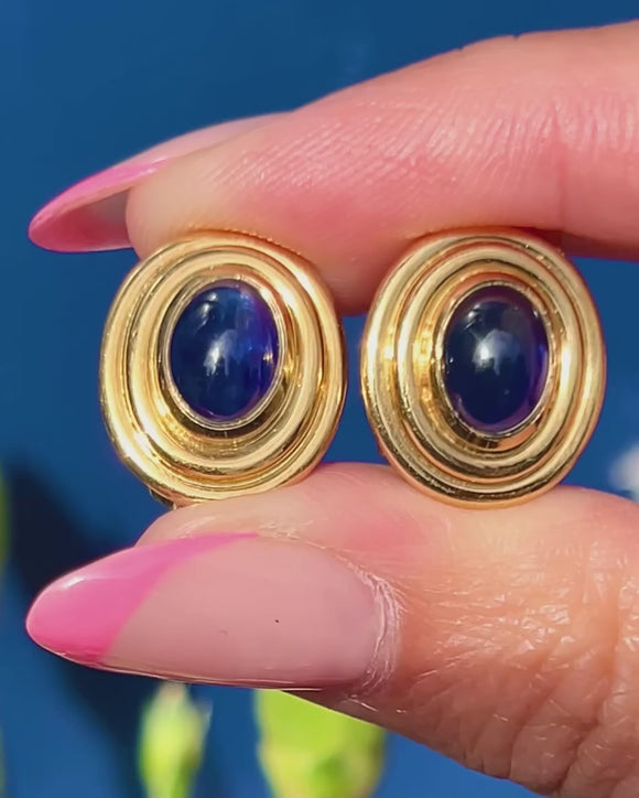 These striking 18ct Gold natural Sapphire cabochon stud earrings are a delight!