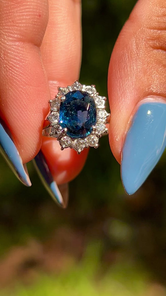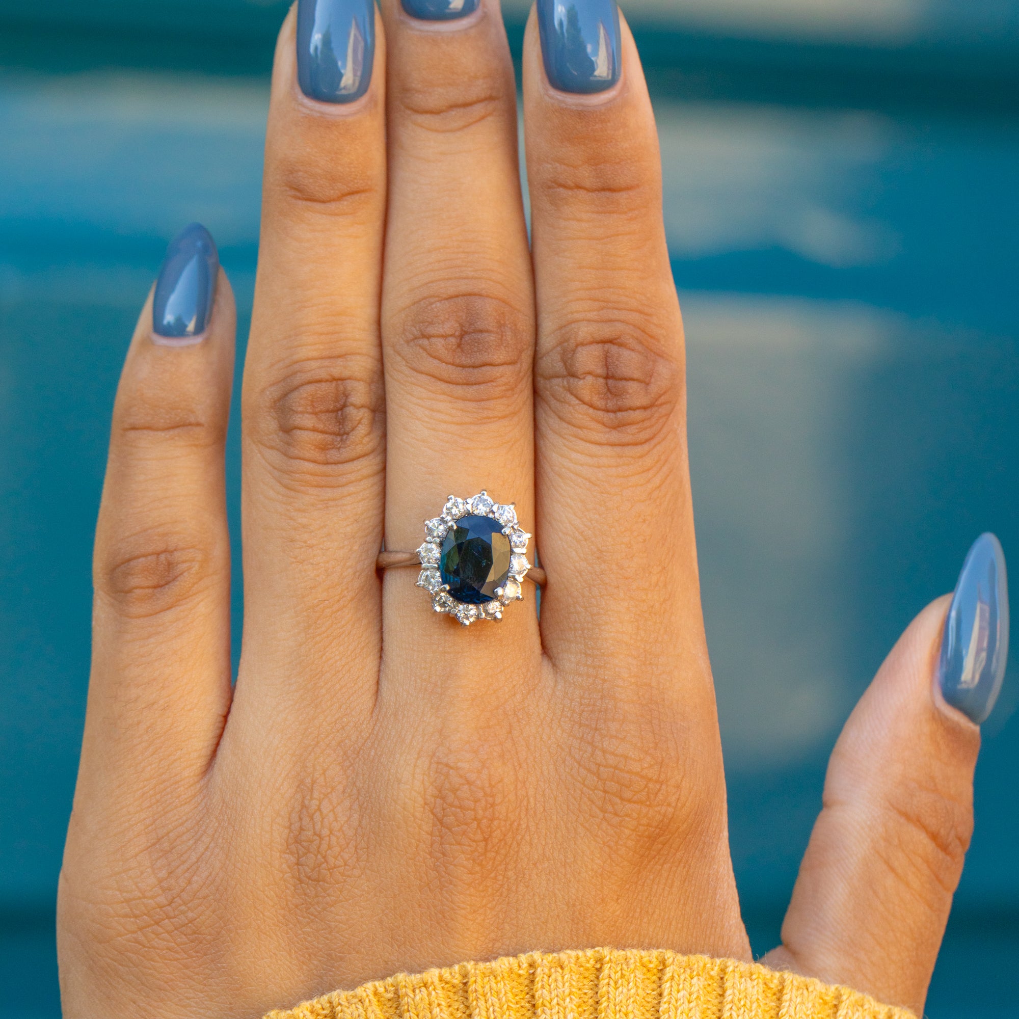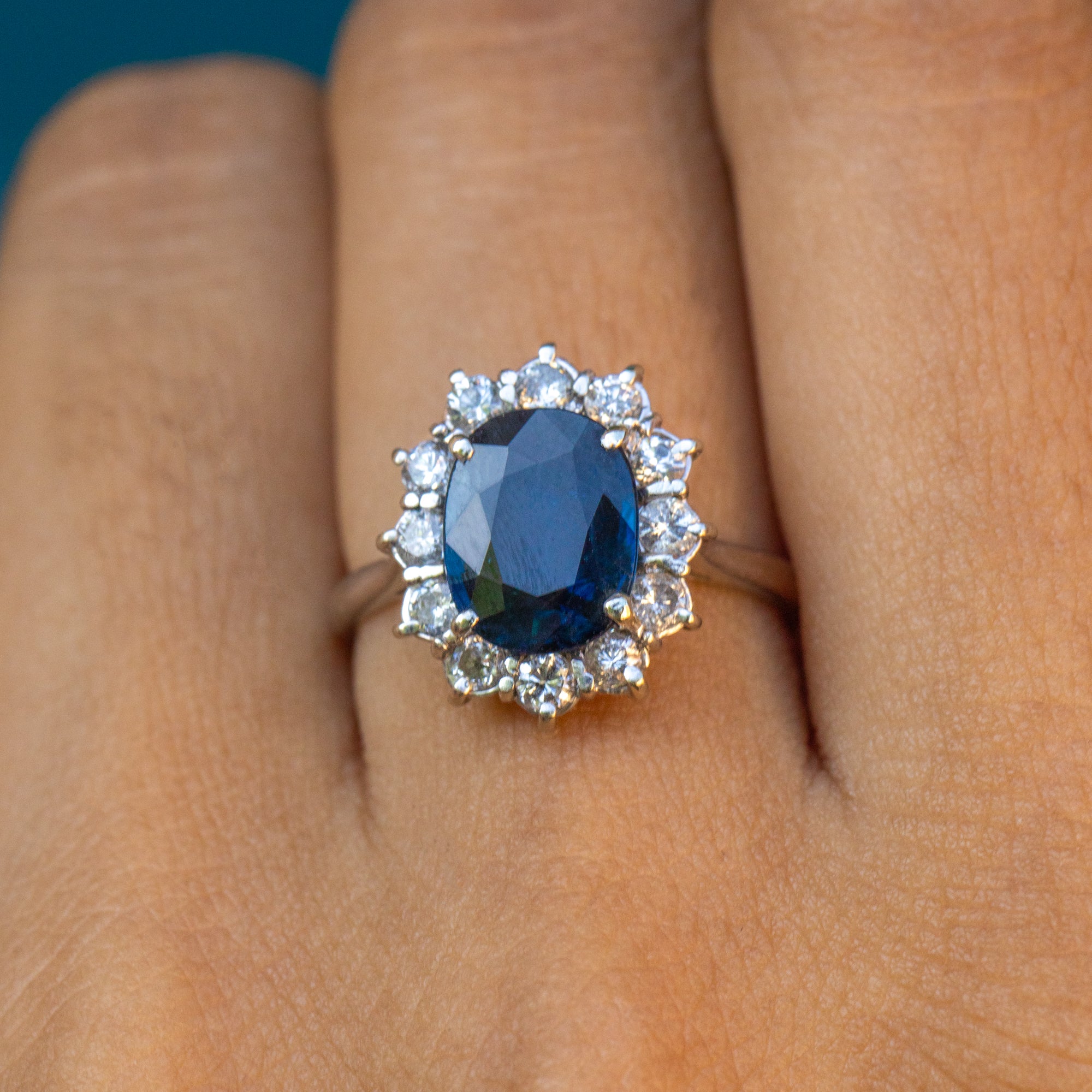 18ct ゴールド ナチュラル サファイア ダイヤモンド クラスター リング 1.40ct サファイア
