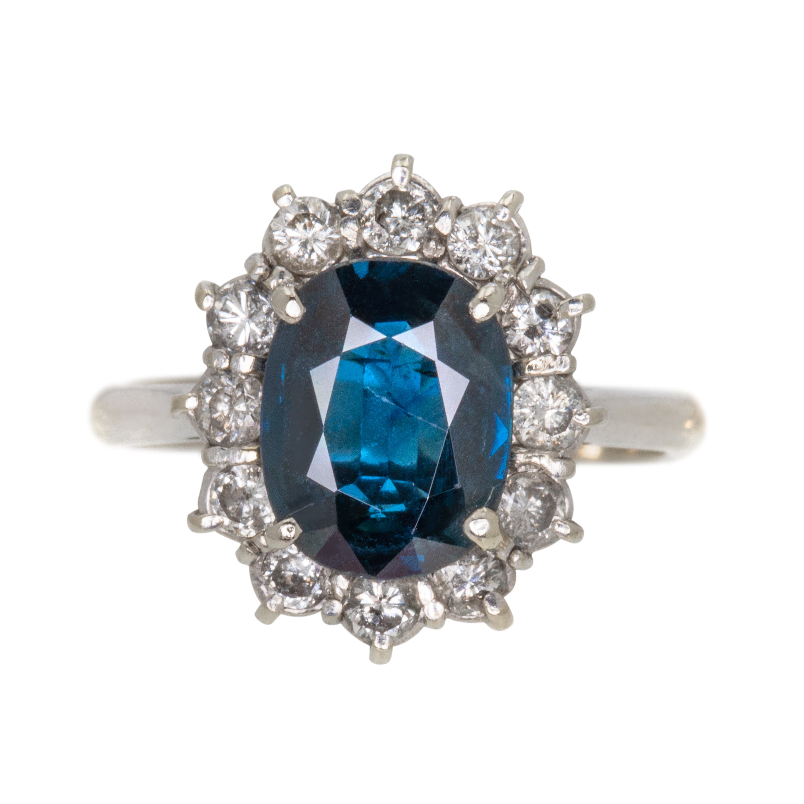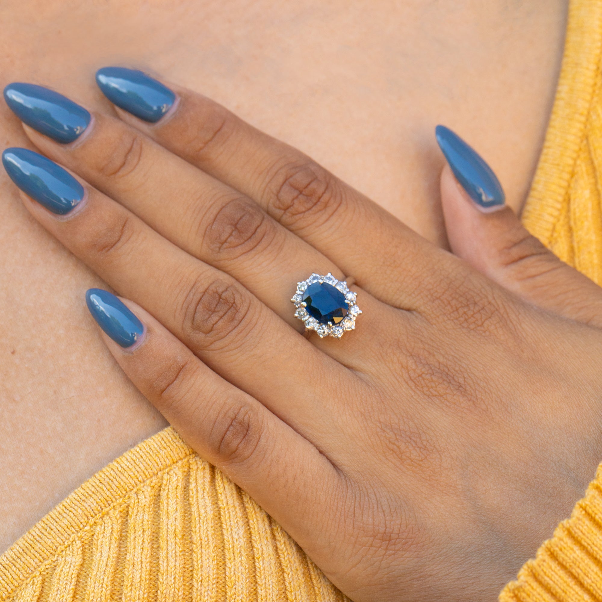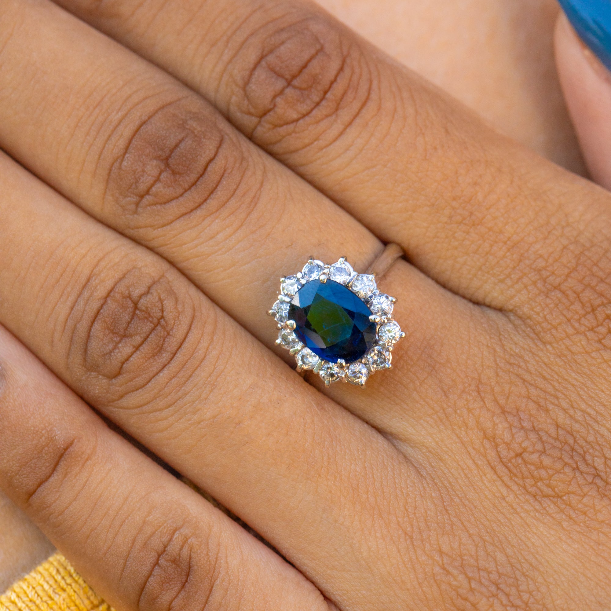 18ct ゴールド ナチュラル サファイア ダイヤモンド クラスター リング 1.40ct サファイア
