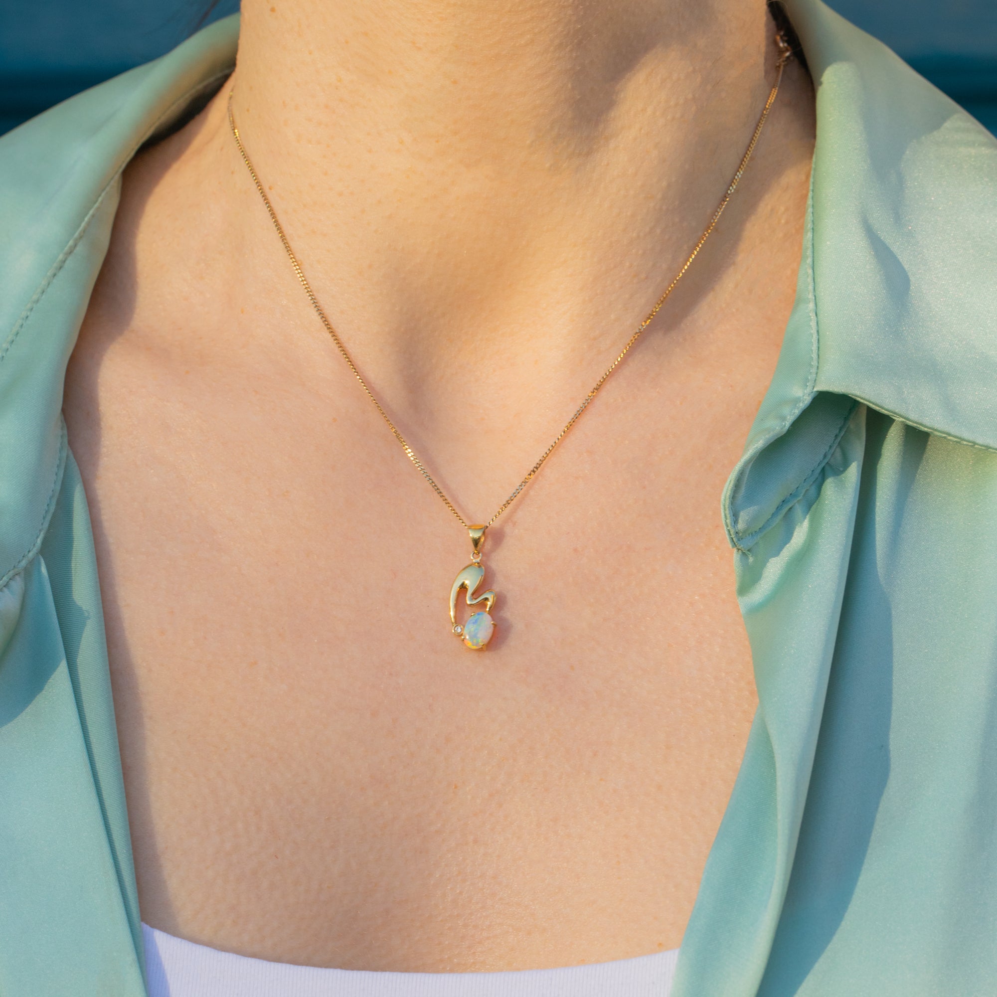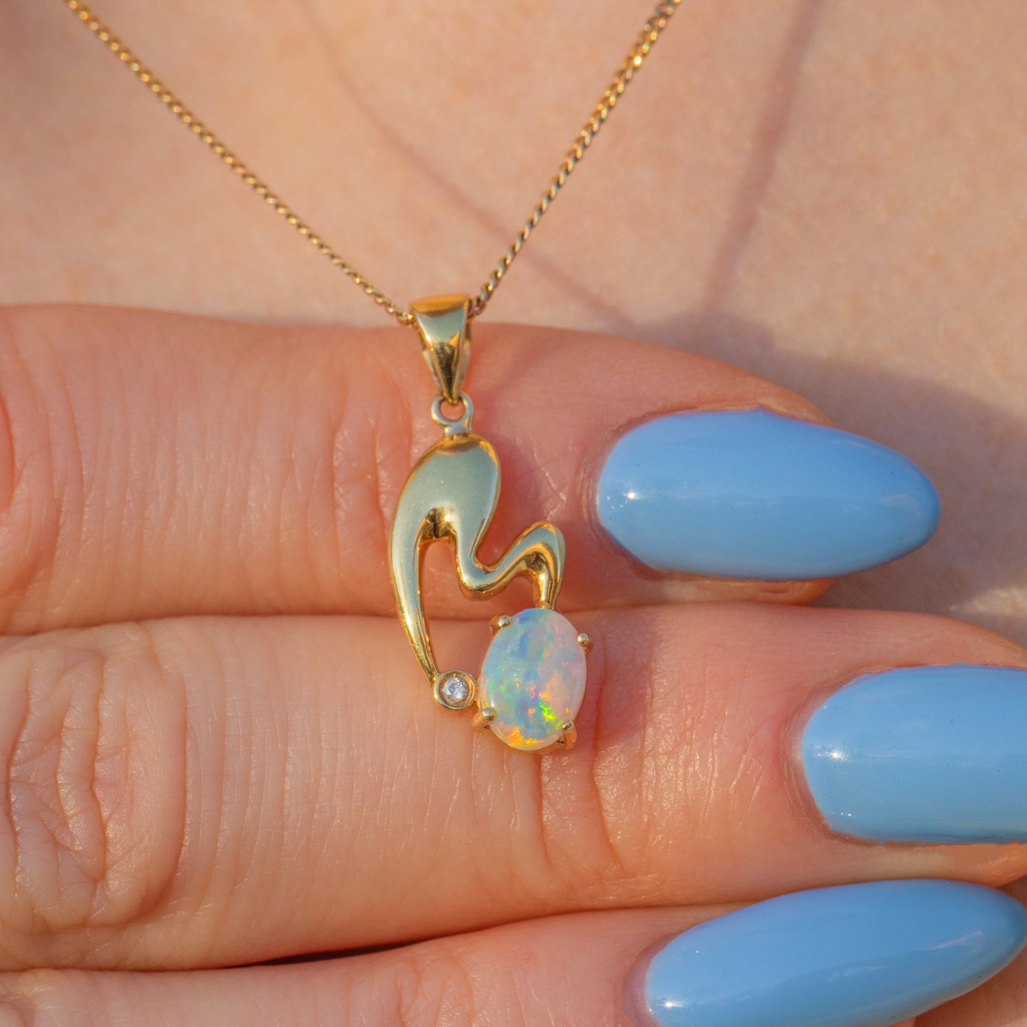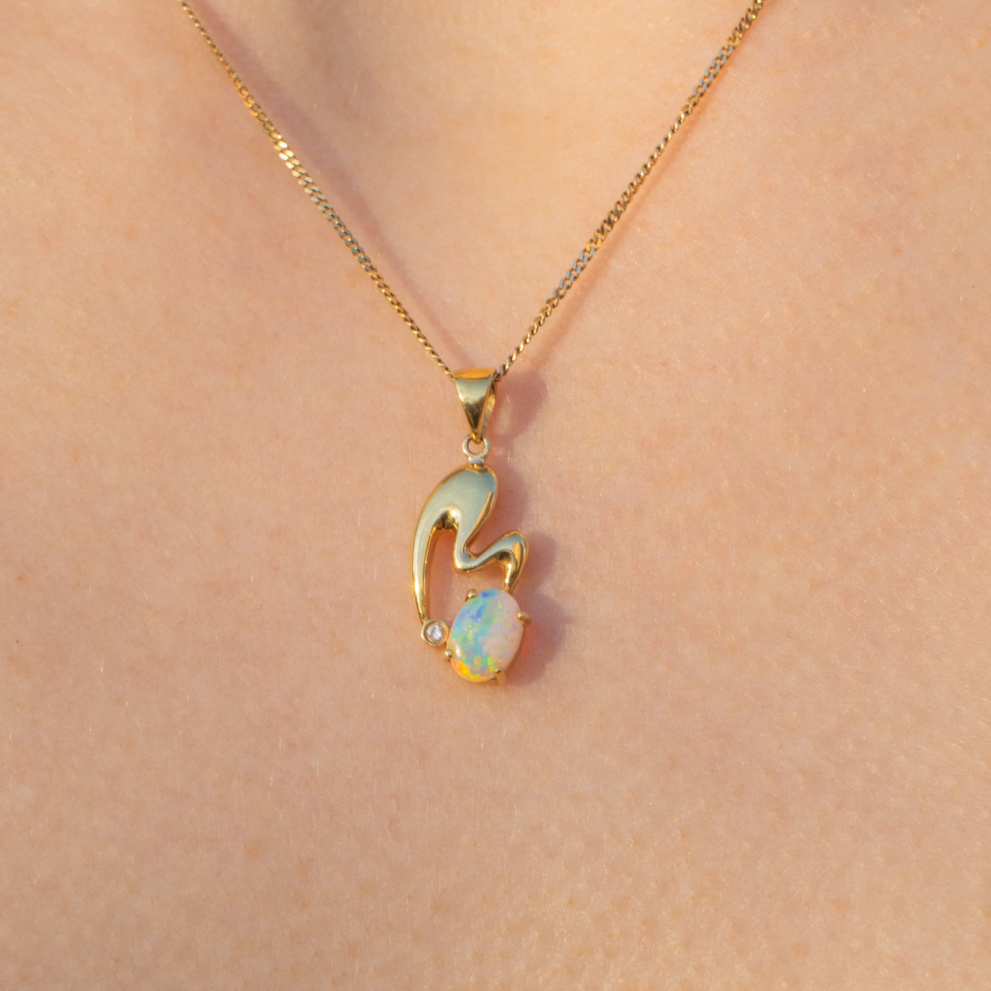 This 18ct Gold Opal Diamond pendant will instantly bring elegance to your outfit!