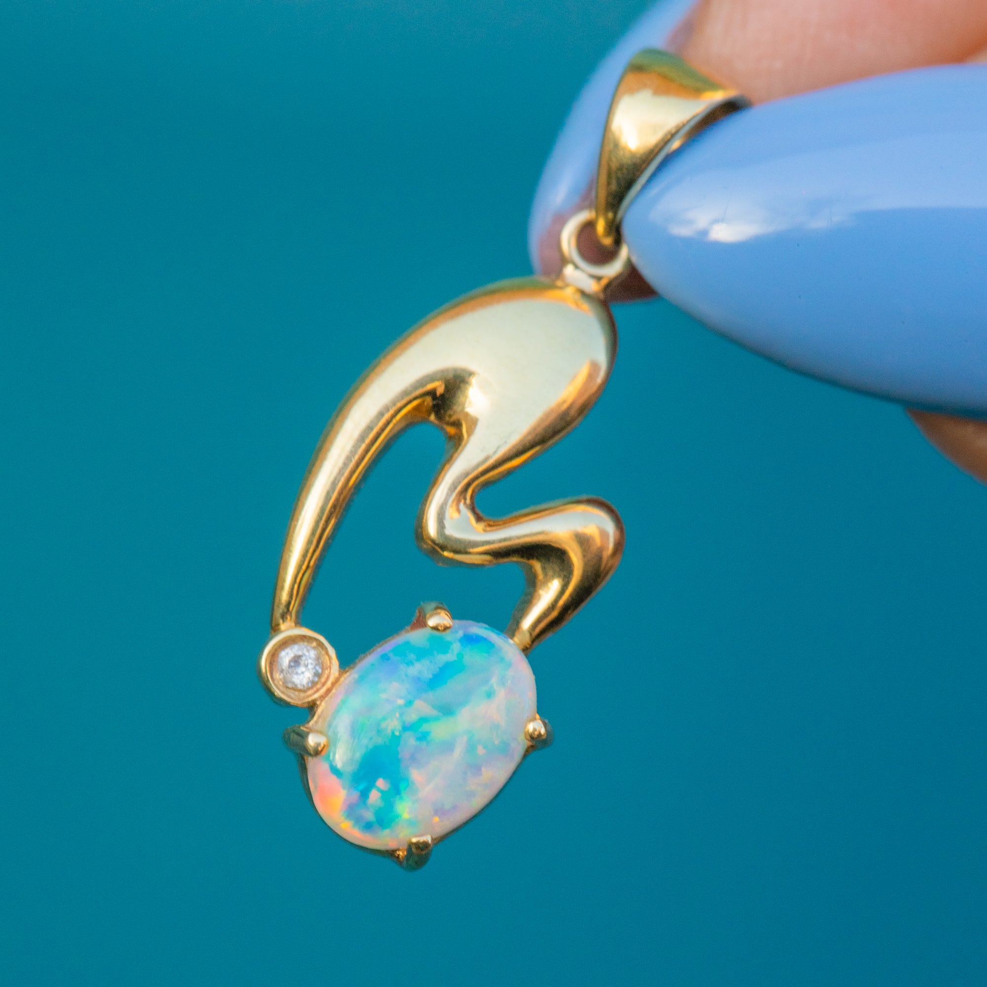 18ct Gold Opal Diamond Pendant, 0.25ct Opal