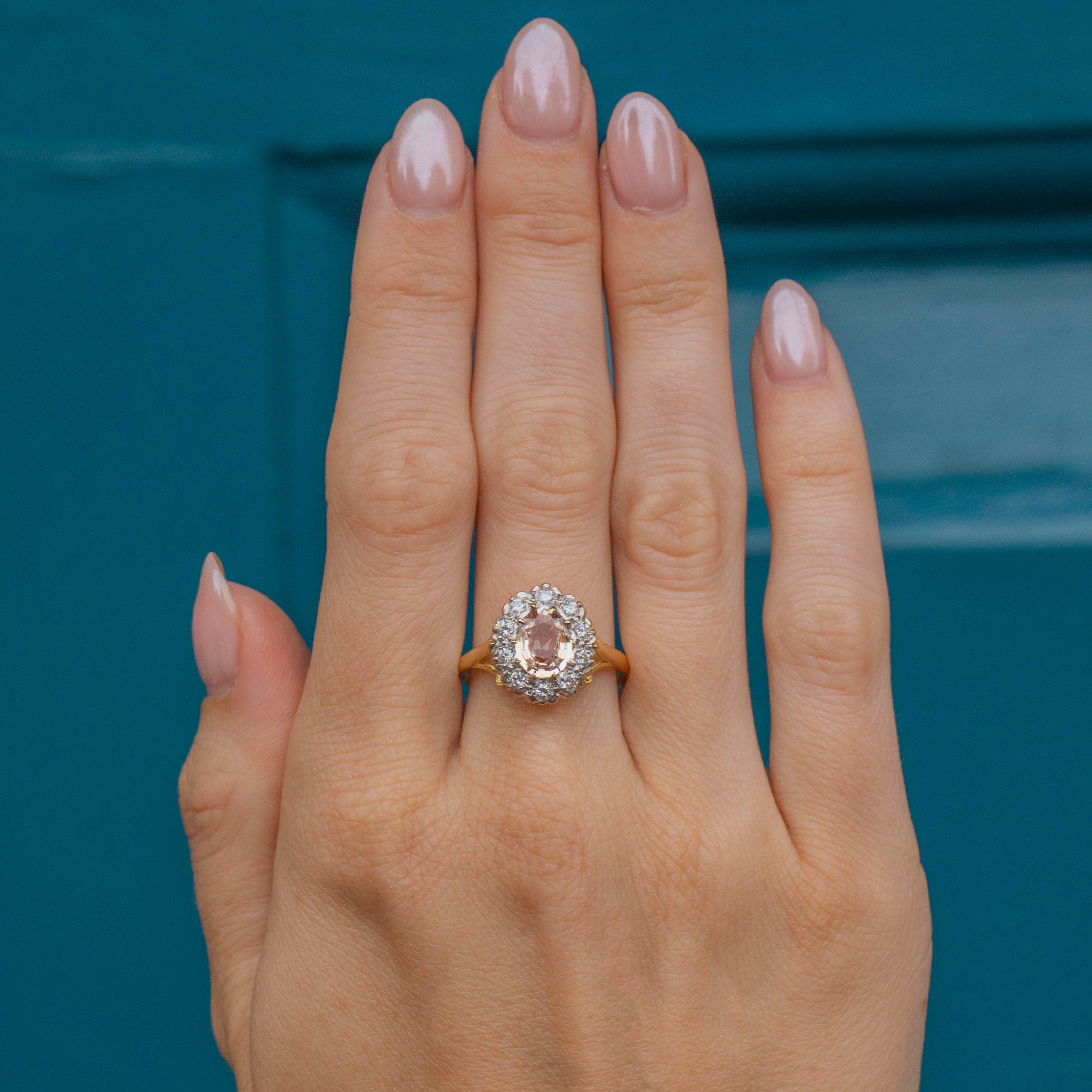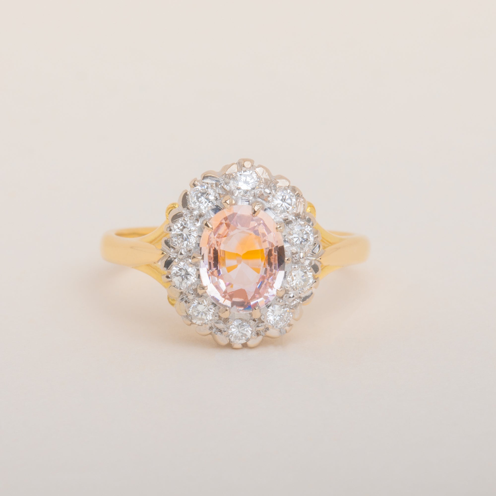 18ct Gold Padparadscha Sapphire Diamond Cluster Ring, 2.10ct Sapphire, 0.30ct Diamonds