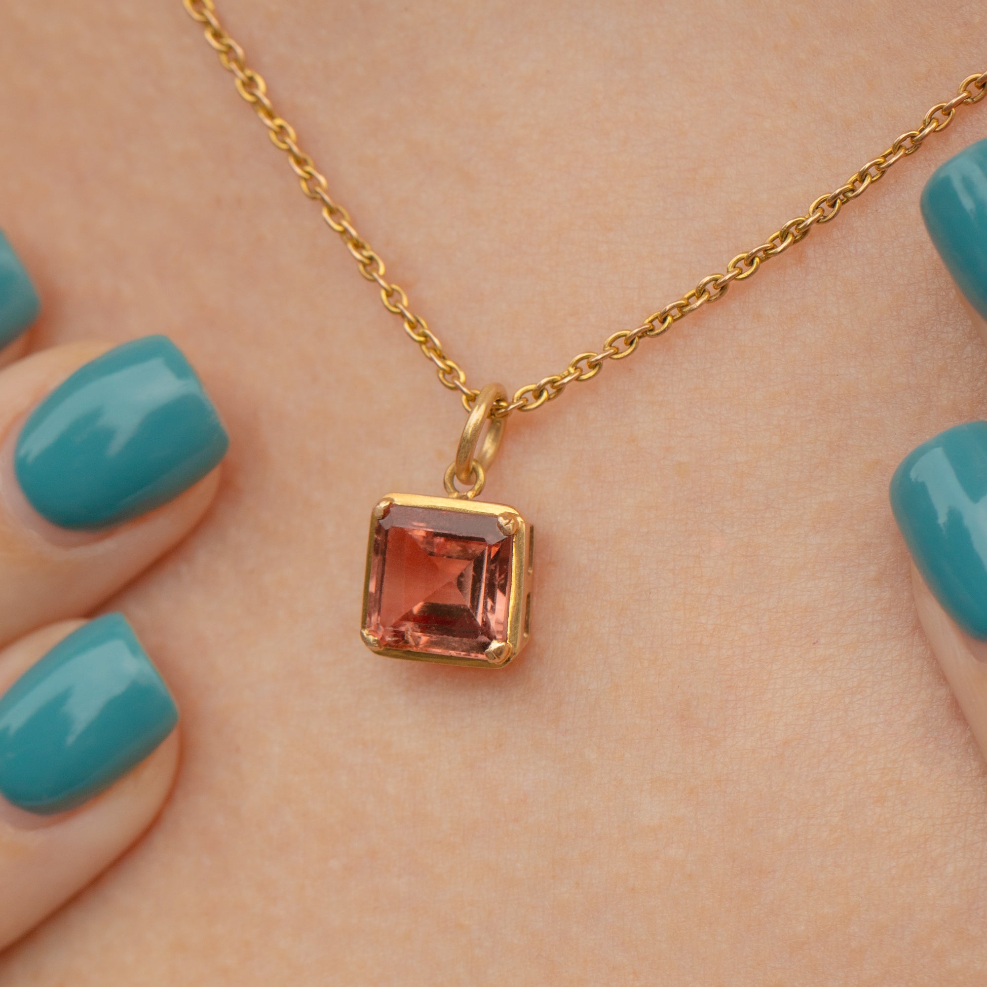 An 18ct Gold Peachy pink spinel pendant to incorporate a dash of colour into your jewellery collection!