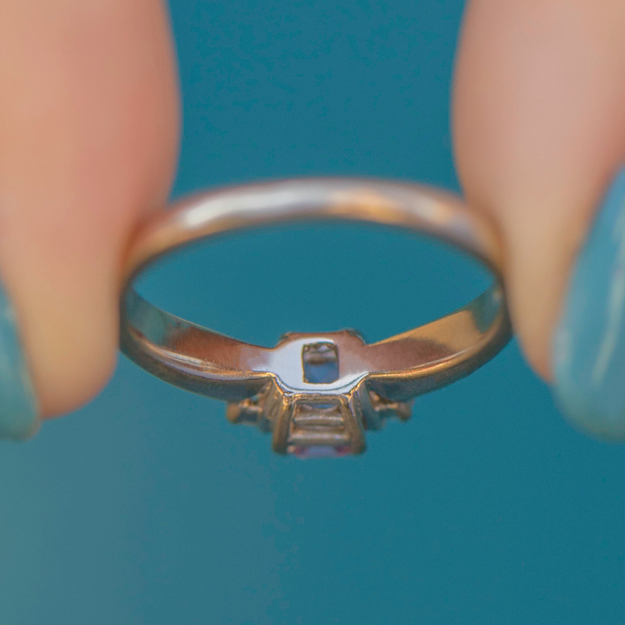 The trilogy ring design of this Vintage Sapphire ring is the epitome of elegance and her timeless beauty makes her the perfect choice for a unique engagement ring. With a chunky ring band, she hugs your finger to perfection, so much so you'll never want to take her off!