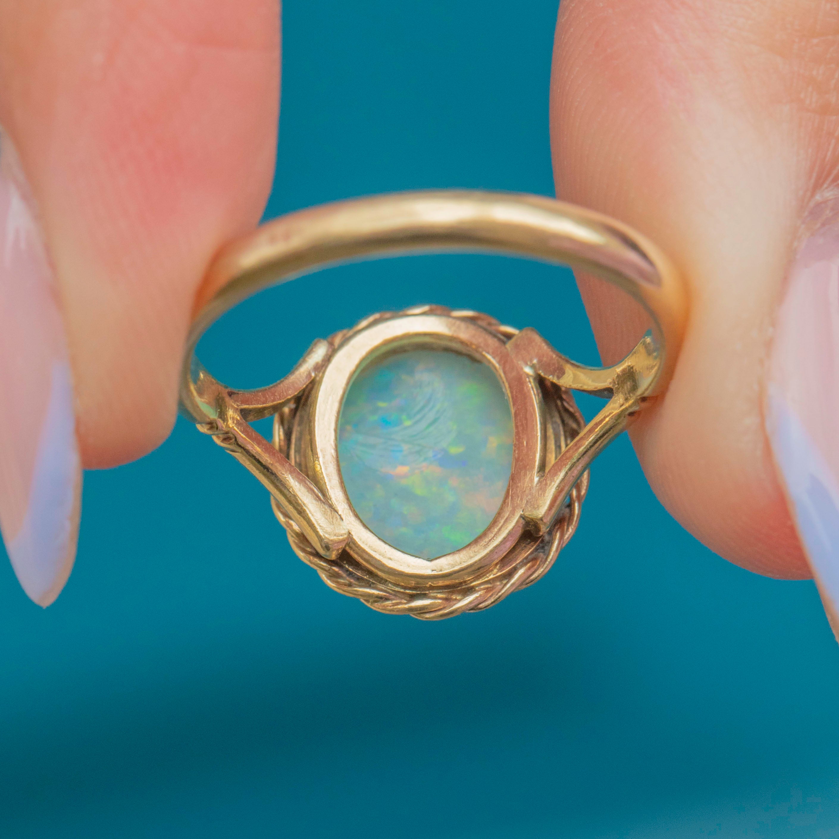 MATERIALS: Tests as 18ct Gold, Natural Solid Opal (0.65ct).