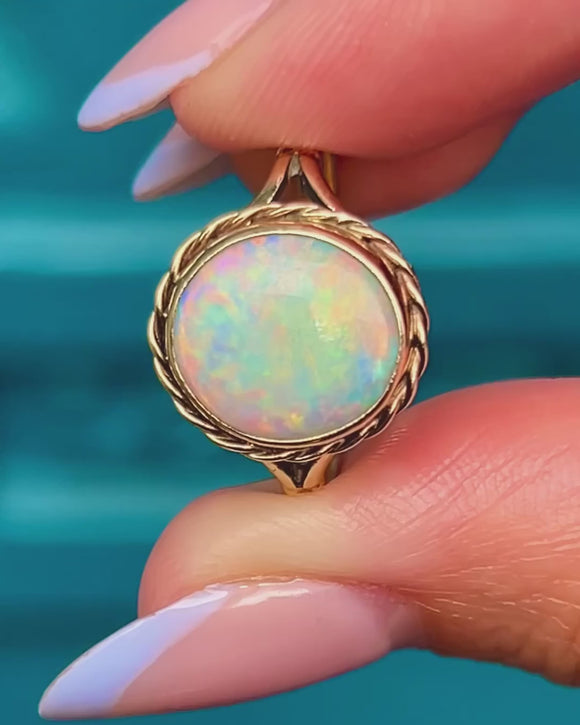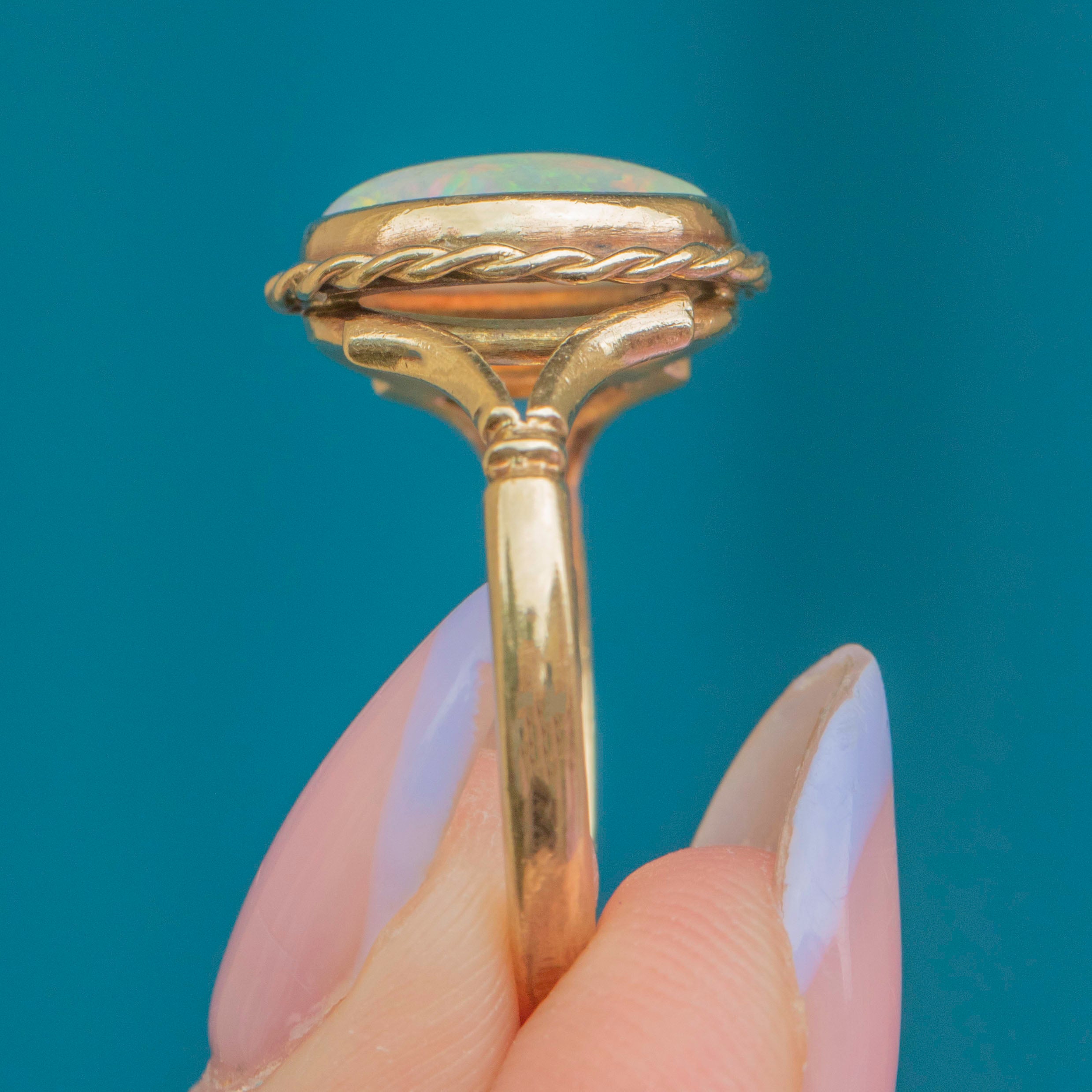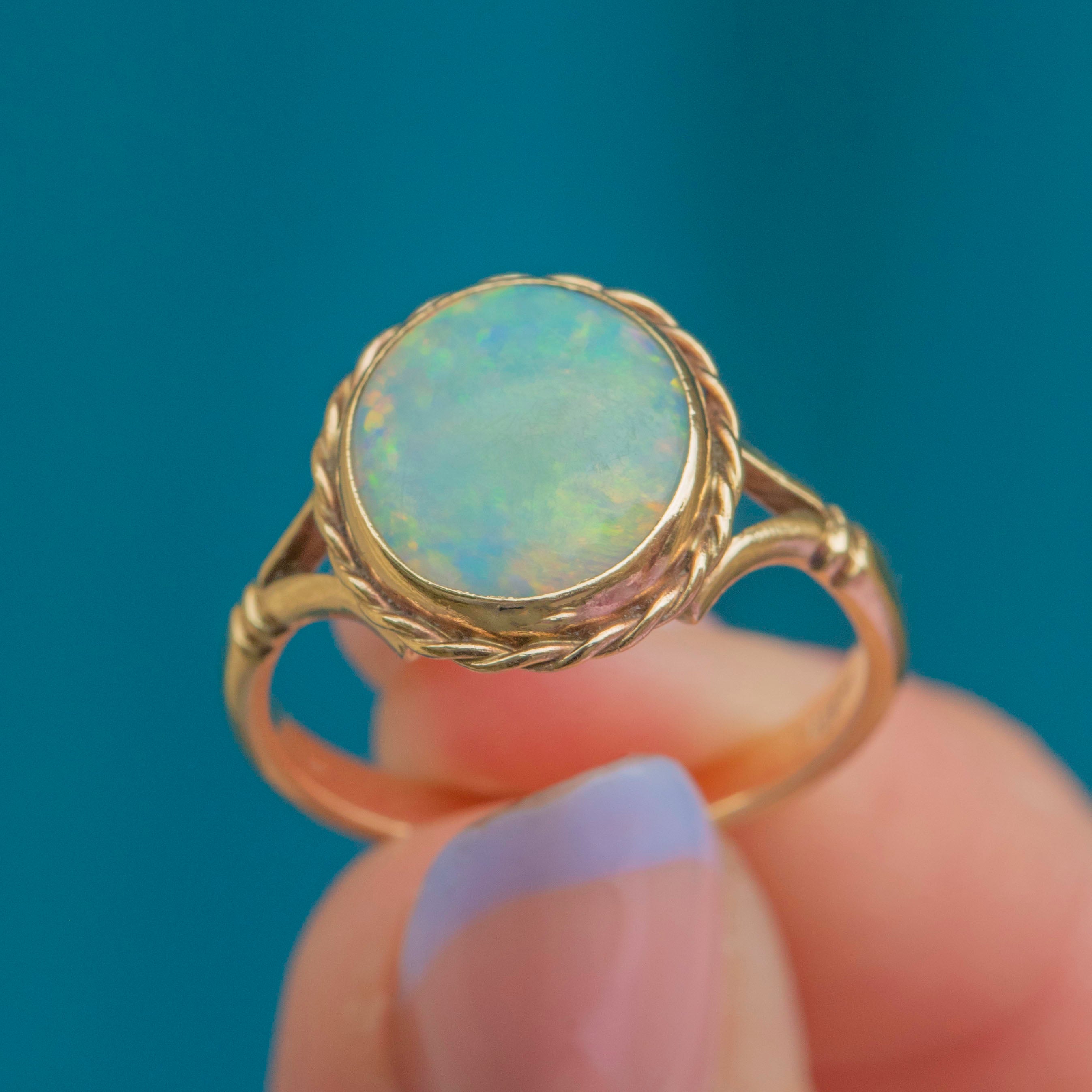 This outstanding 18ct Gold round Opal cabochon ring is a gorgeous vintage piece!