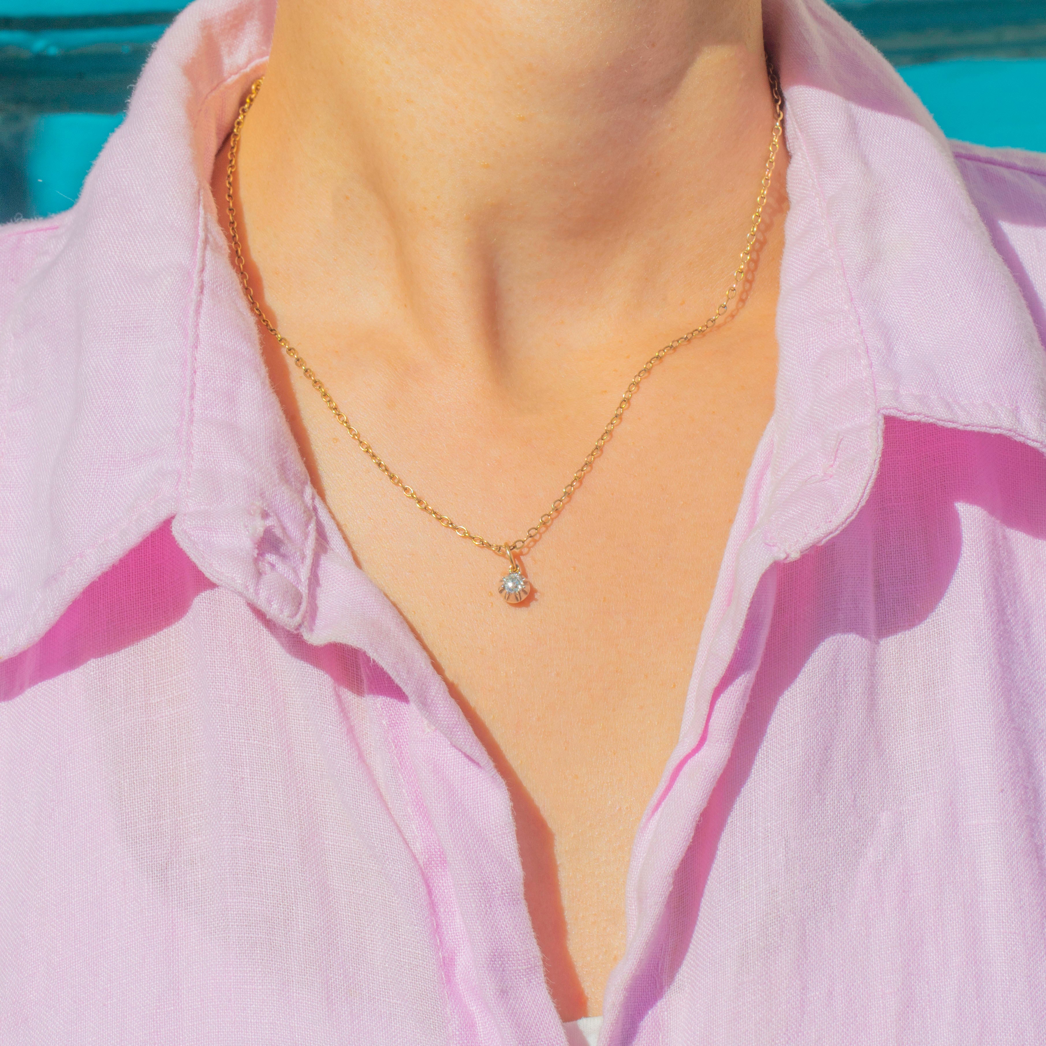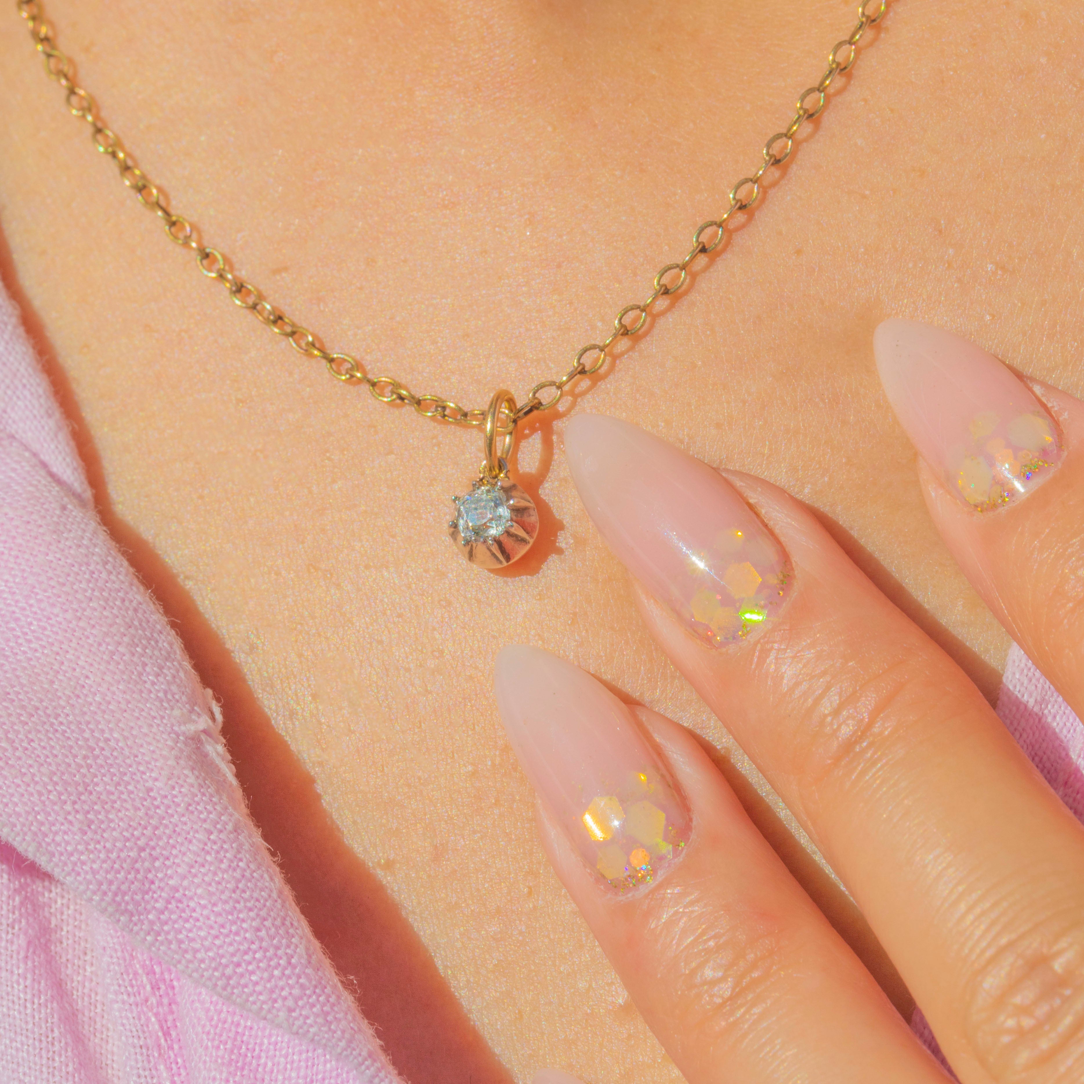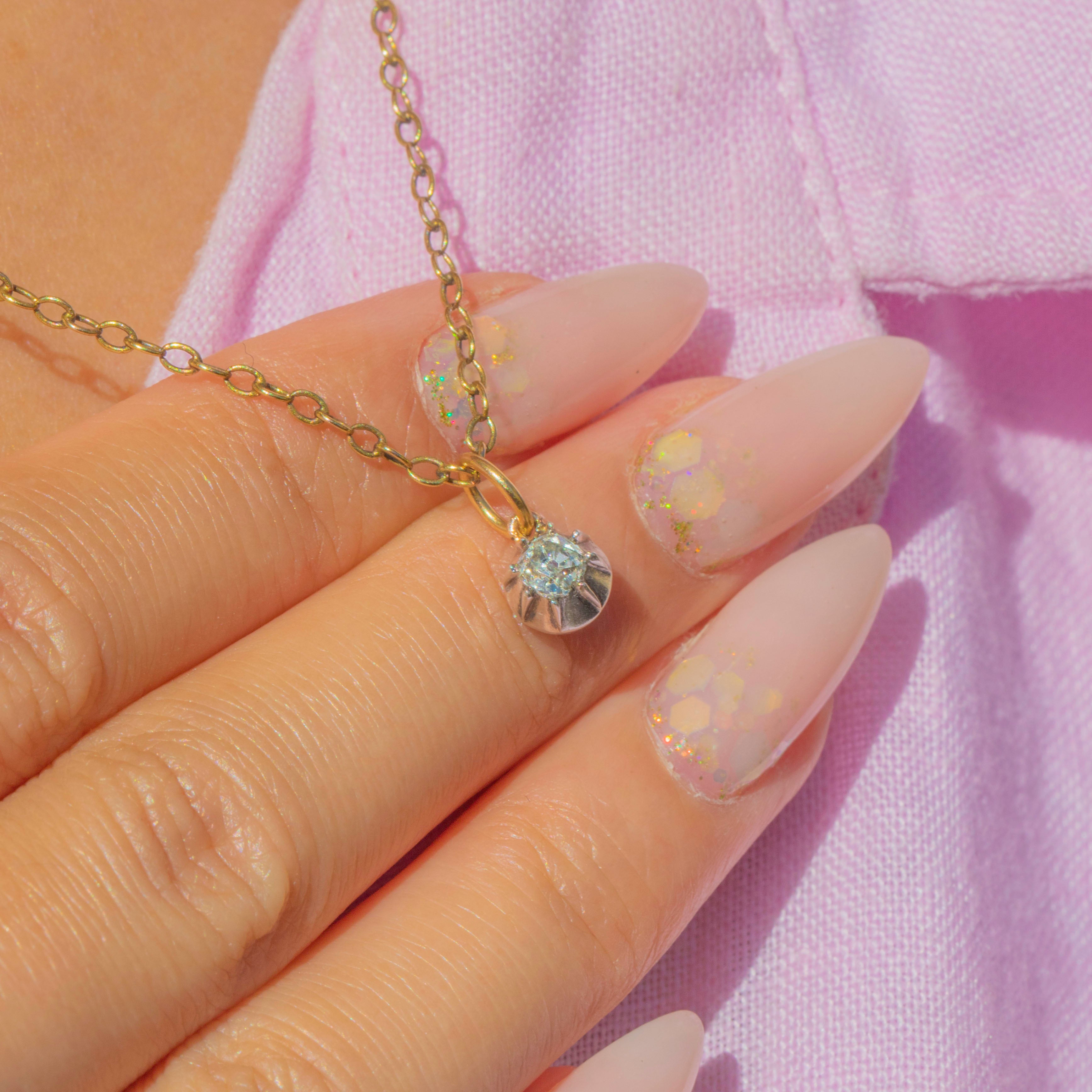 Mounted in a traditional Sterling Silver collet backed with 18ct Gold, and finished with an 18ct Gold jump ring, this petite pendant is full of antique appeal. Perfect as a dainty standalone piece or layered with other pendants and charms, it’s a versatile and timeless jewel.