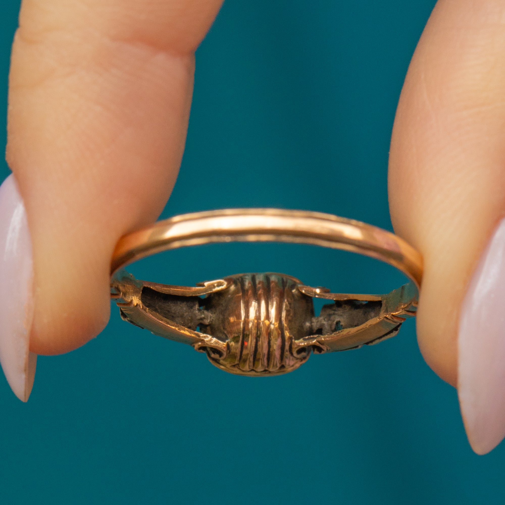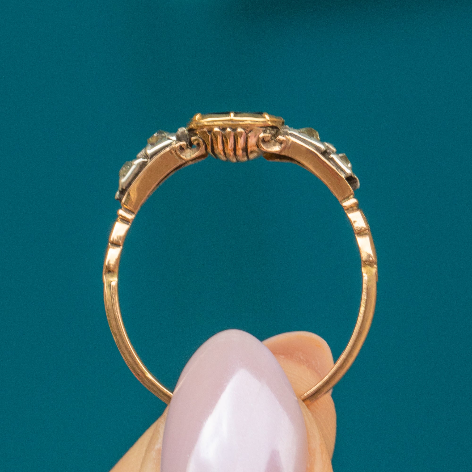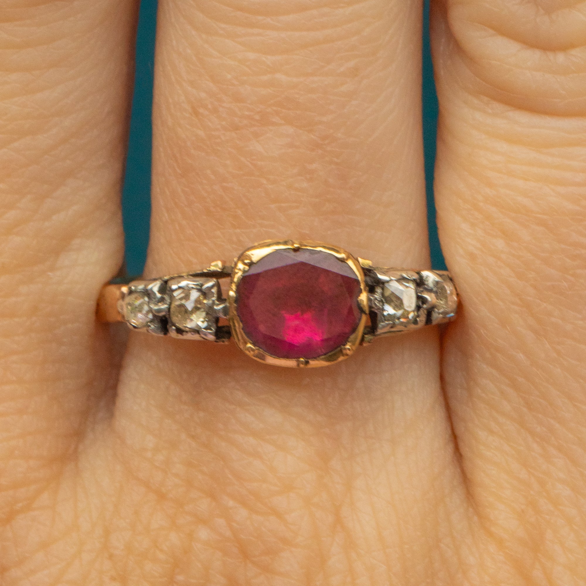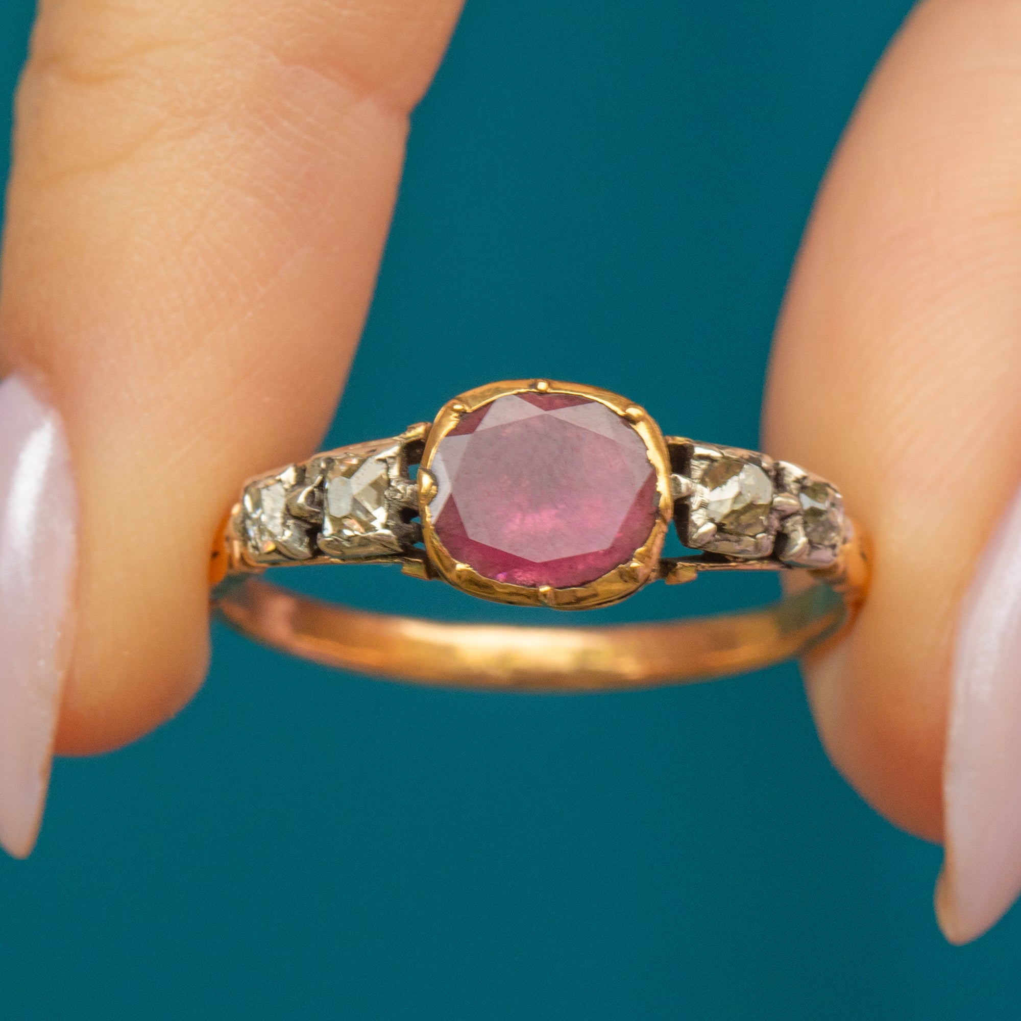 18th-Century Georgian 18ct Gold Garnet Diamond Half-Hoop Ring c.1790