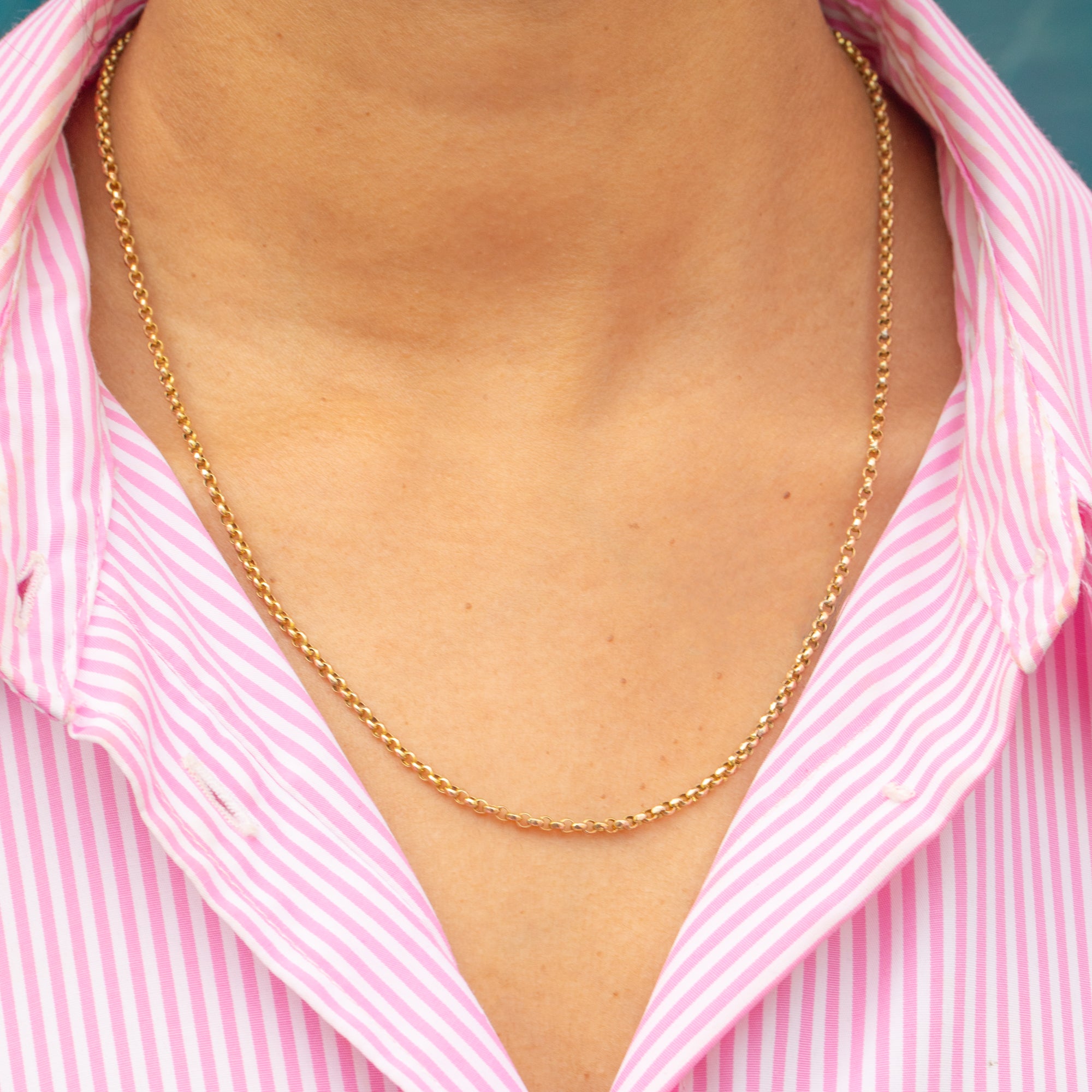 19.5インチ 9ct ゴールド スキニー ベルチャーチェーン、アンティーク ドッグクリップ