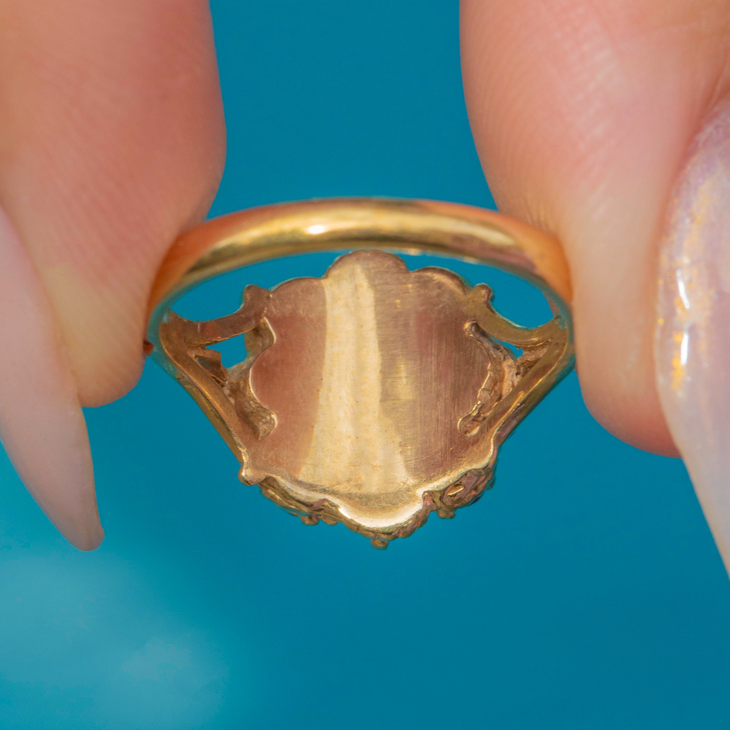 Dated by full English hallmarks to 1976, this ring carries the glamour of the 1970s with its confident colour palette and statement presence, while still being perfectly wearable today.