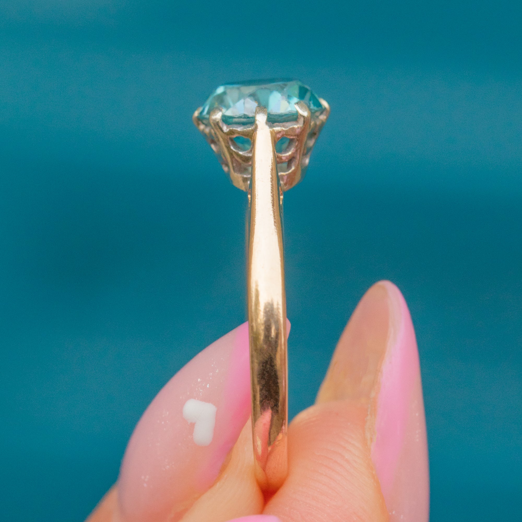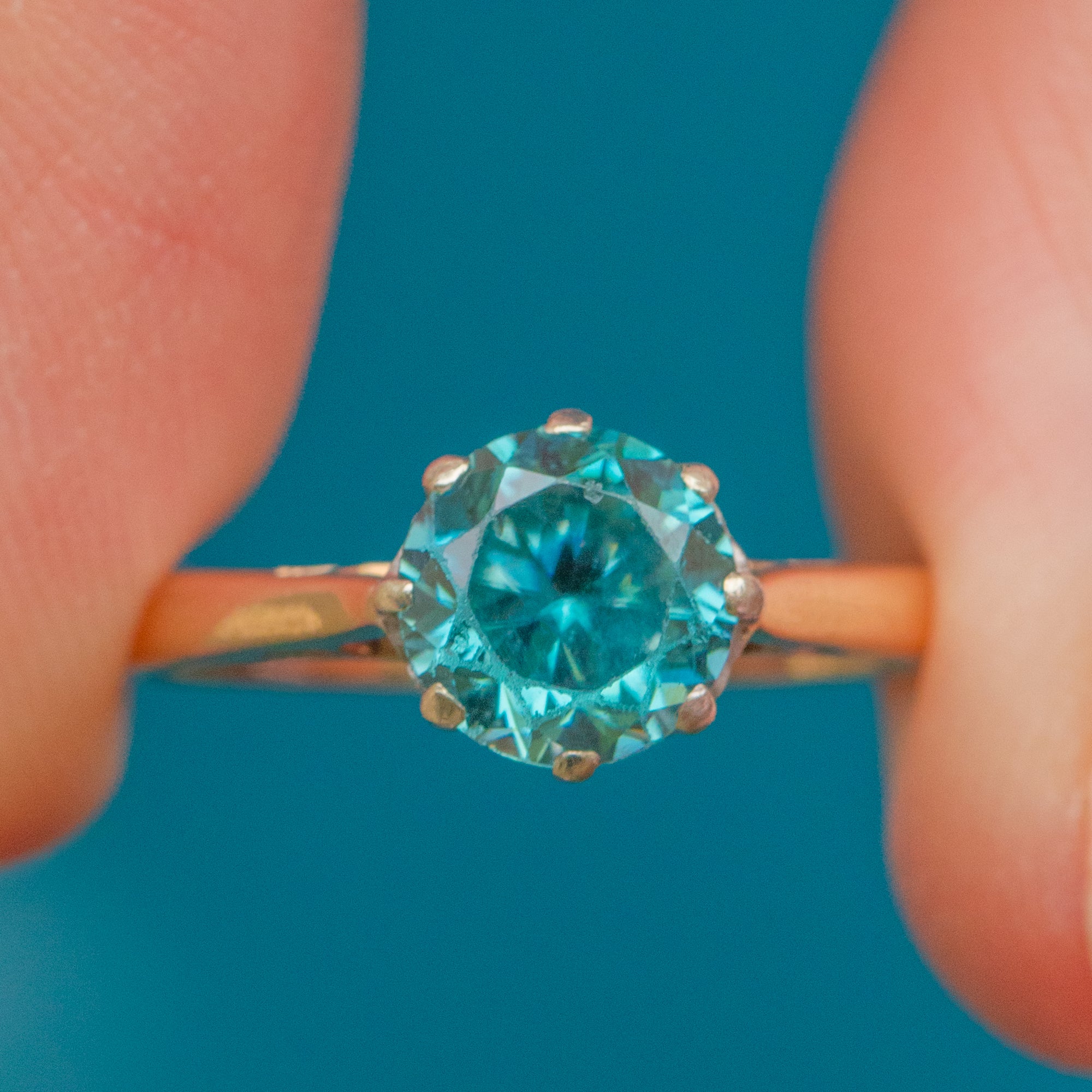 EXCELLENT: The Zircon is bright and lively with only the very lightest facet wear, visible under magnification. The Gold mount is secure and smooth, with minimal surface wear.