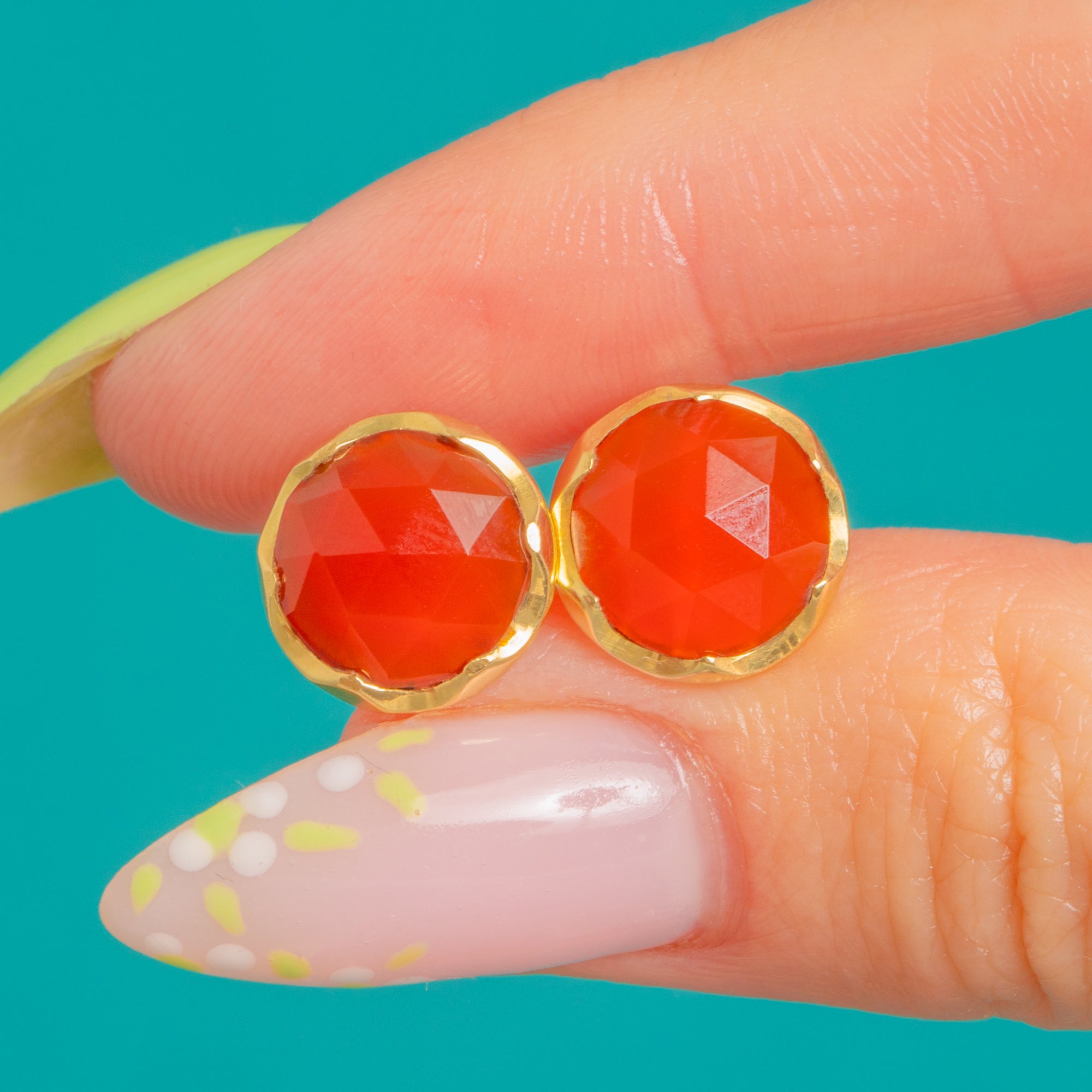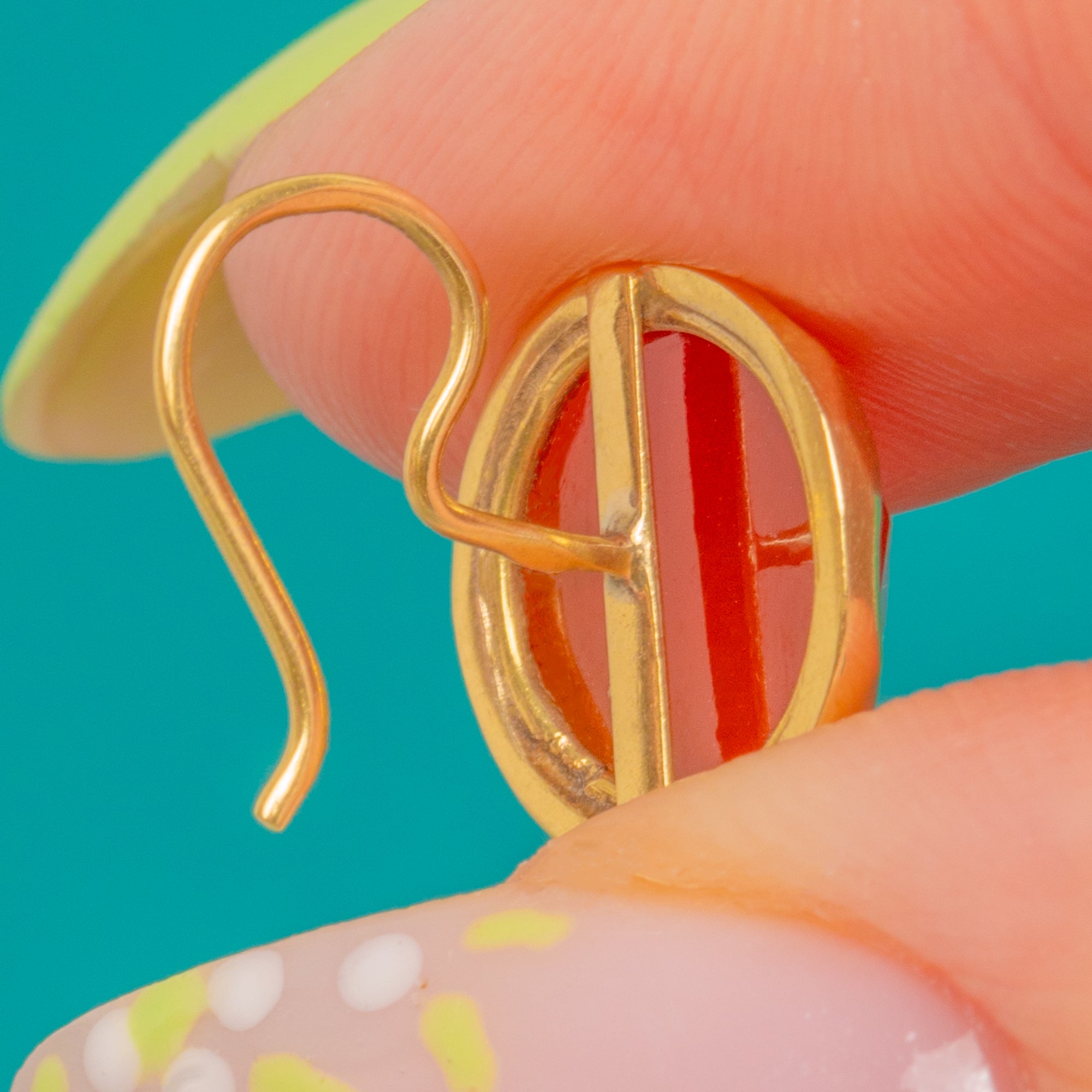 エクセレント:カーネリアンは鮮やかで生き生きとした輝きを放ち、ファセットもシャープ。肉眼で確認できる欠けや擦り傷はありません。ゴールドのセッティングとフックも滑らかで良好な保存状態を保ち、経年に伴うごくわずかな表面の摩耗のみです。修理跡はなく、ストーンはしっかりとセットされており、すぐにご着用いただけます。