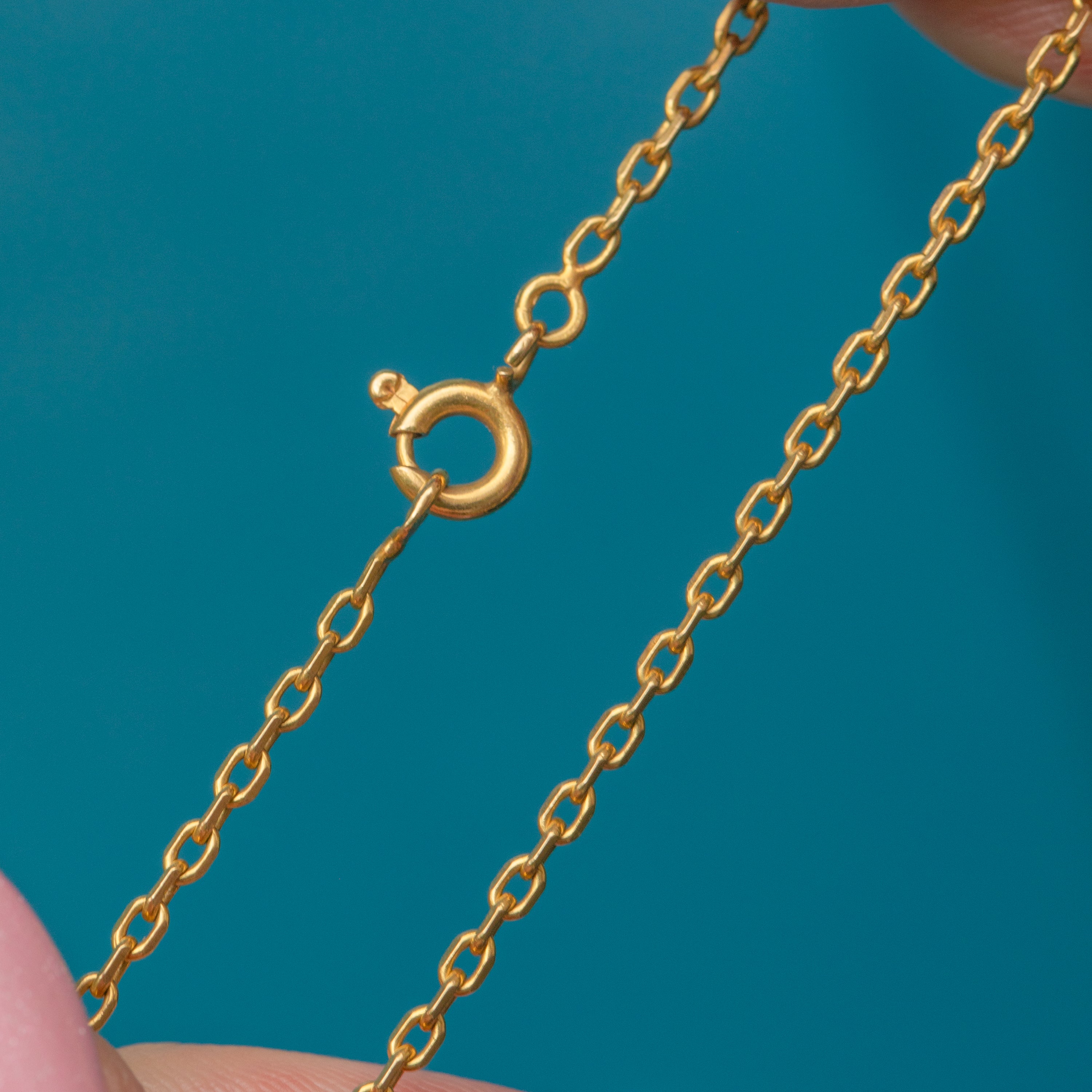 This stunning French 18ct Gold pendant chain has a bright, saturated yellow hue and an understated but eye-catching belcher link design.