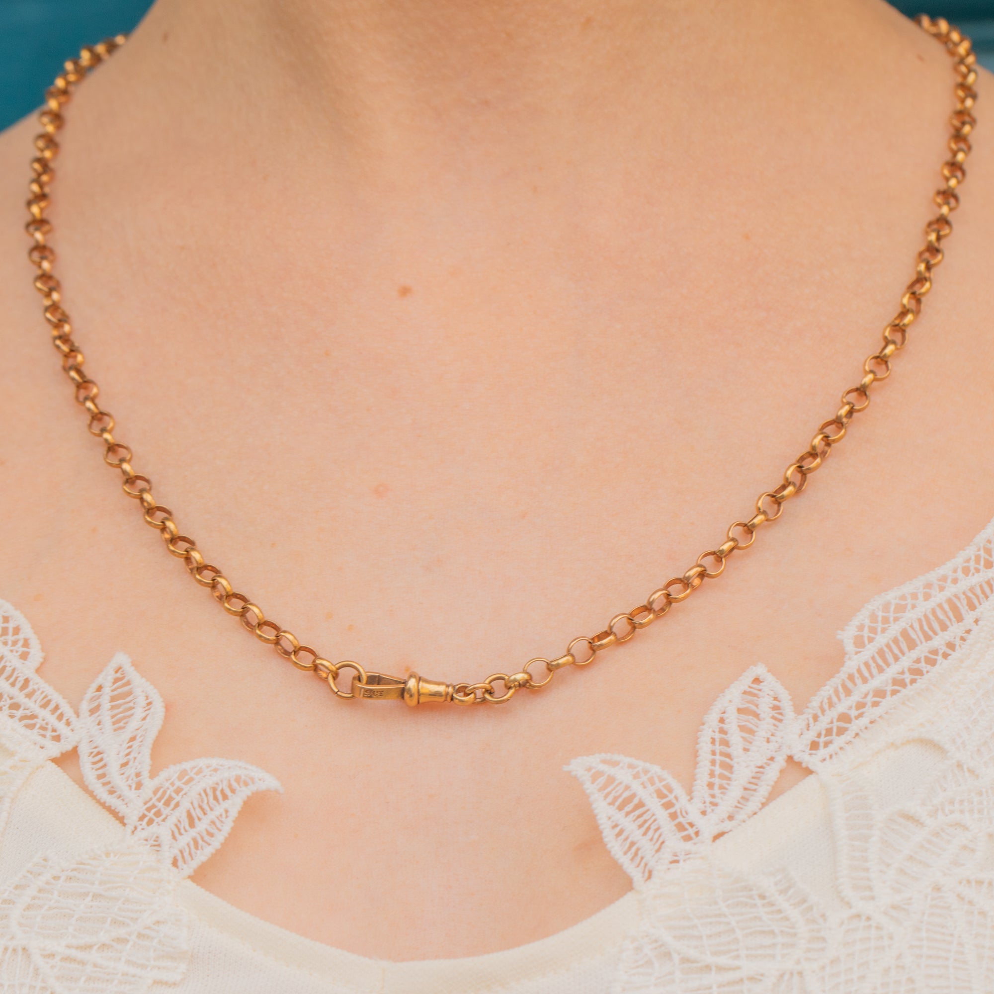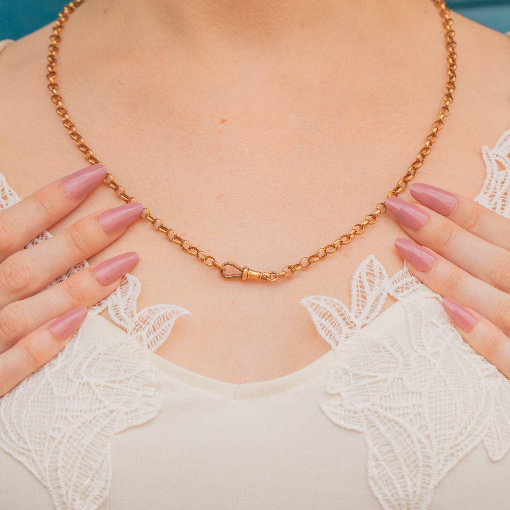 Every jewellery box needs a staple GOld chain, and this 23.5" antique 9ct Gold belcher chain would make a wonderful choice! The loosely interlinked belcher links give this Victorian necklace a lovely fluidity that effortlessly drapes across your collarbones.
