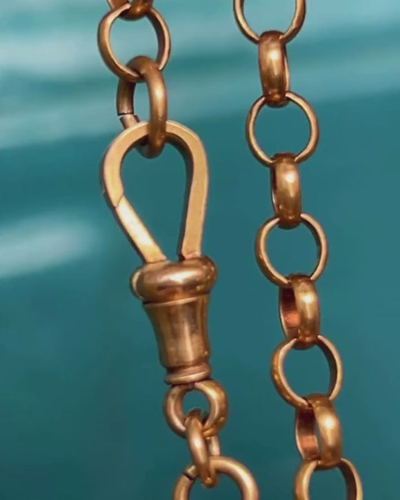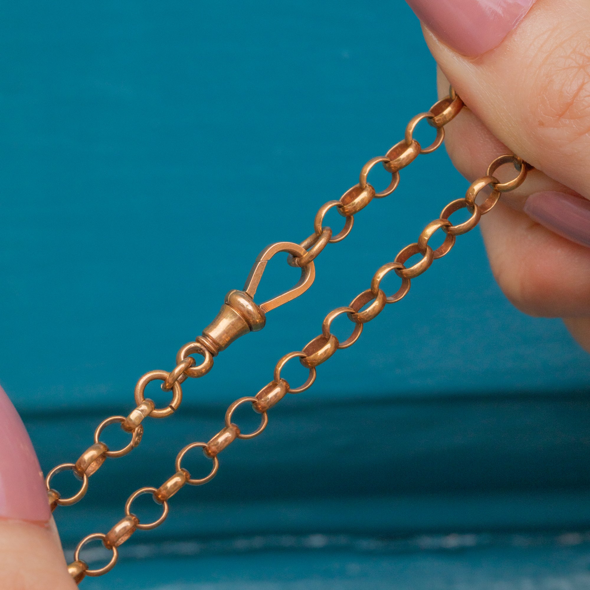 Formed of rich, champagne-kissed 9ct Gold, this antique Gold chain radiates warmth. With an antique dog clip, why not make her the focal point and use her to suspend a charm or two from?!