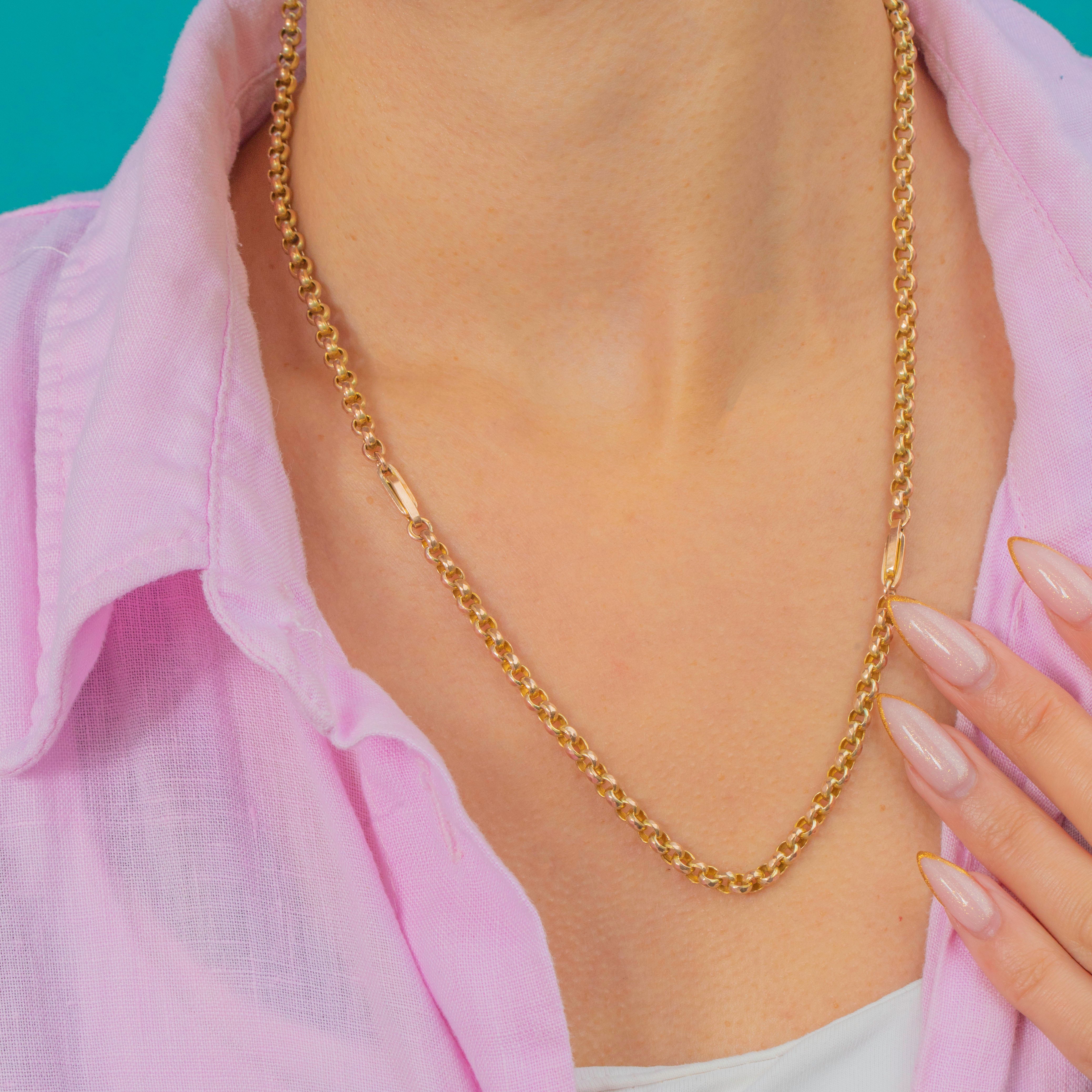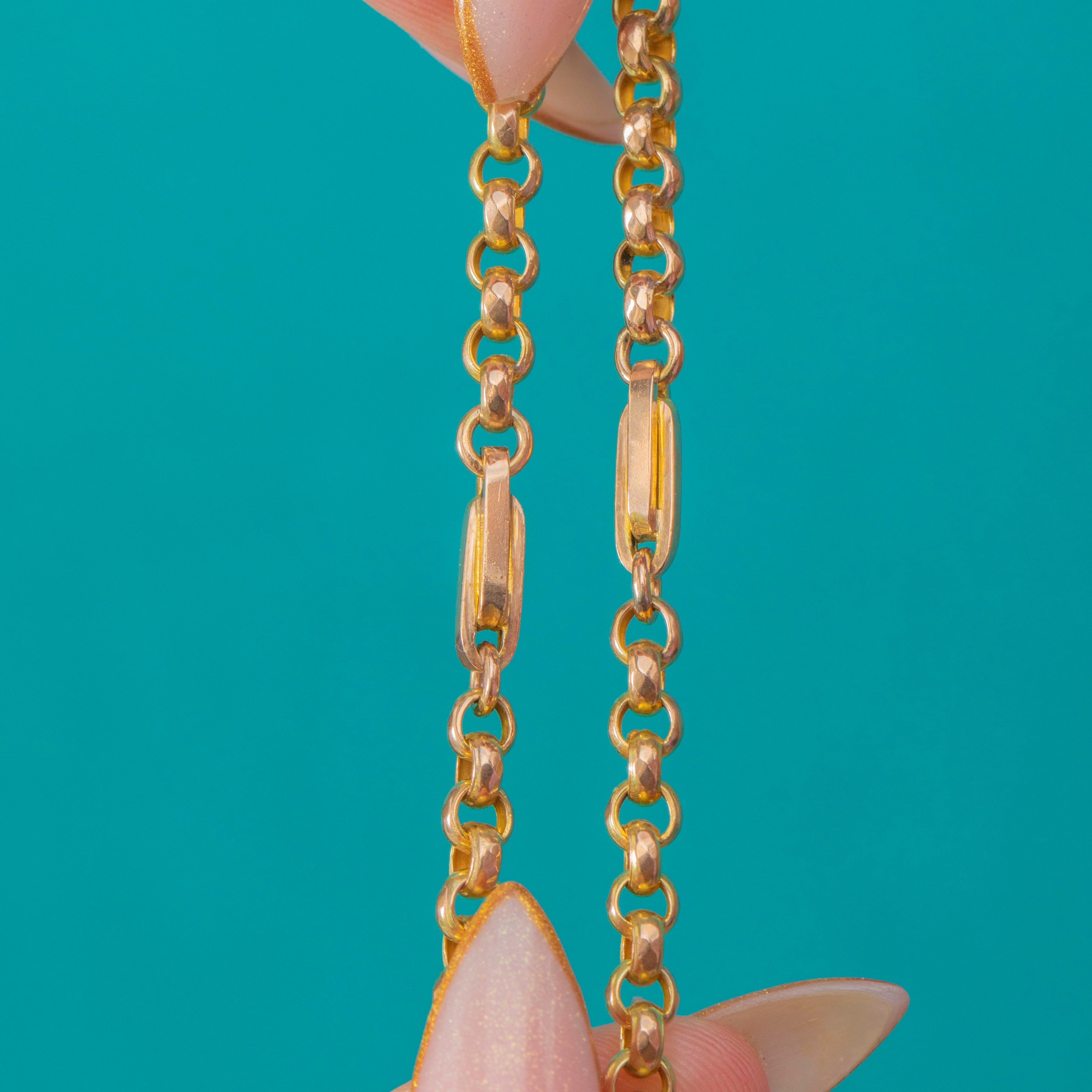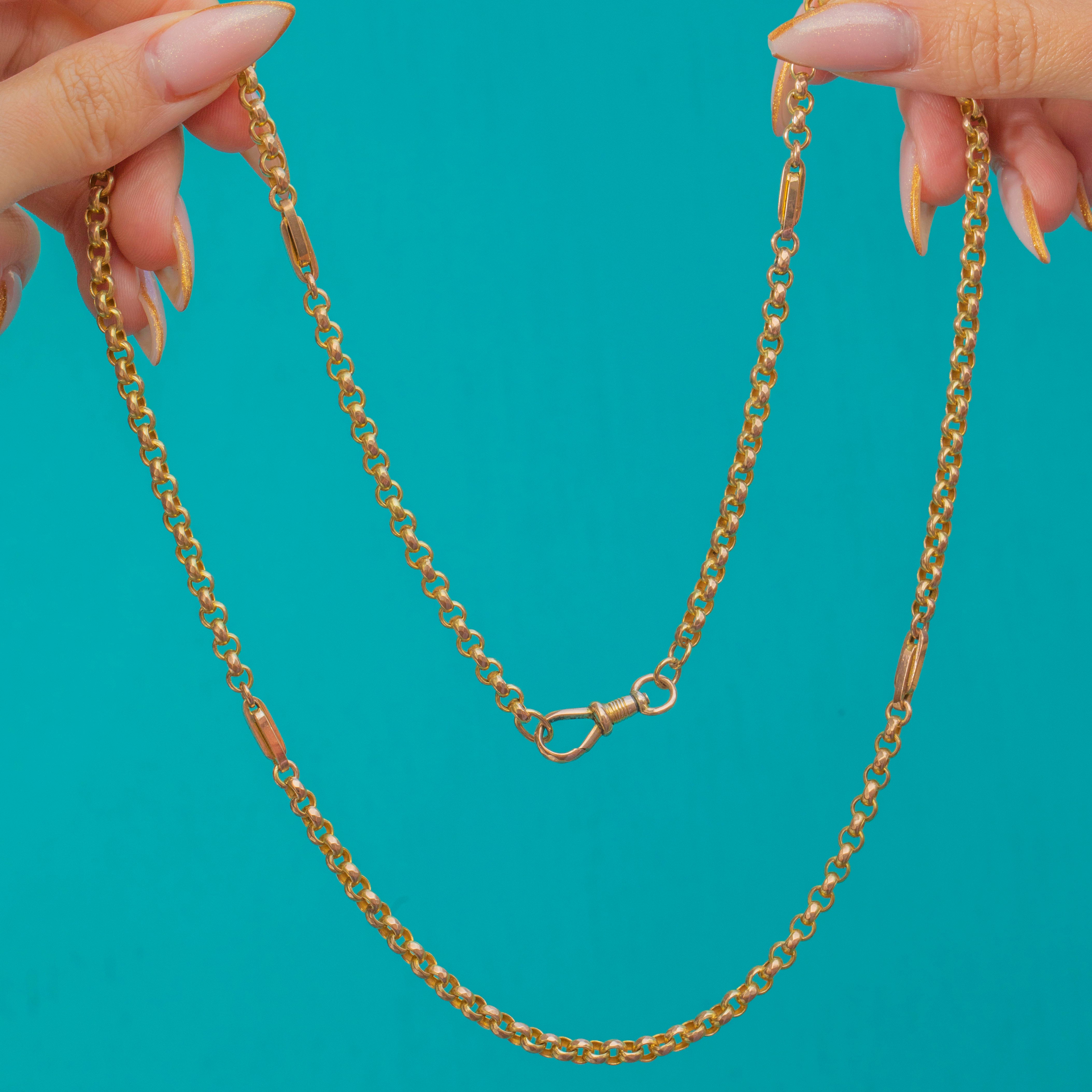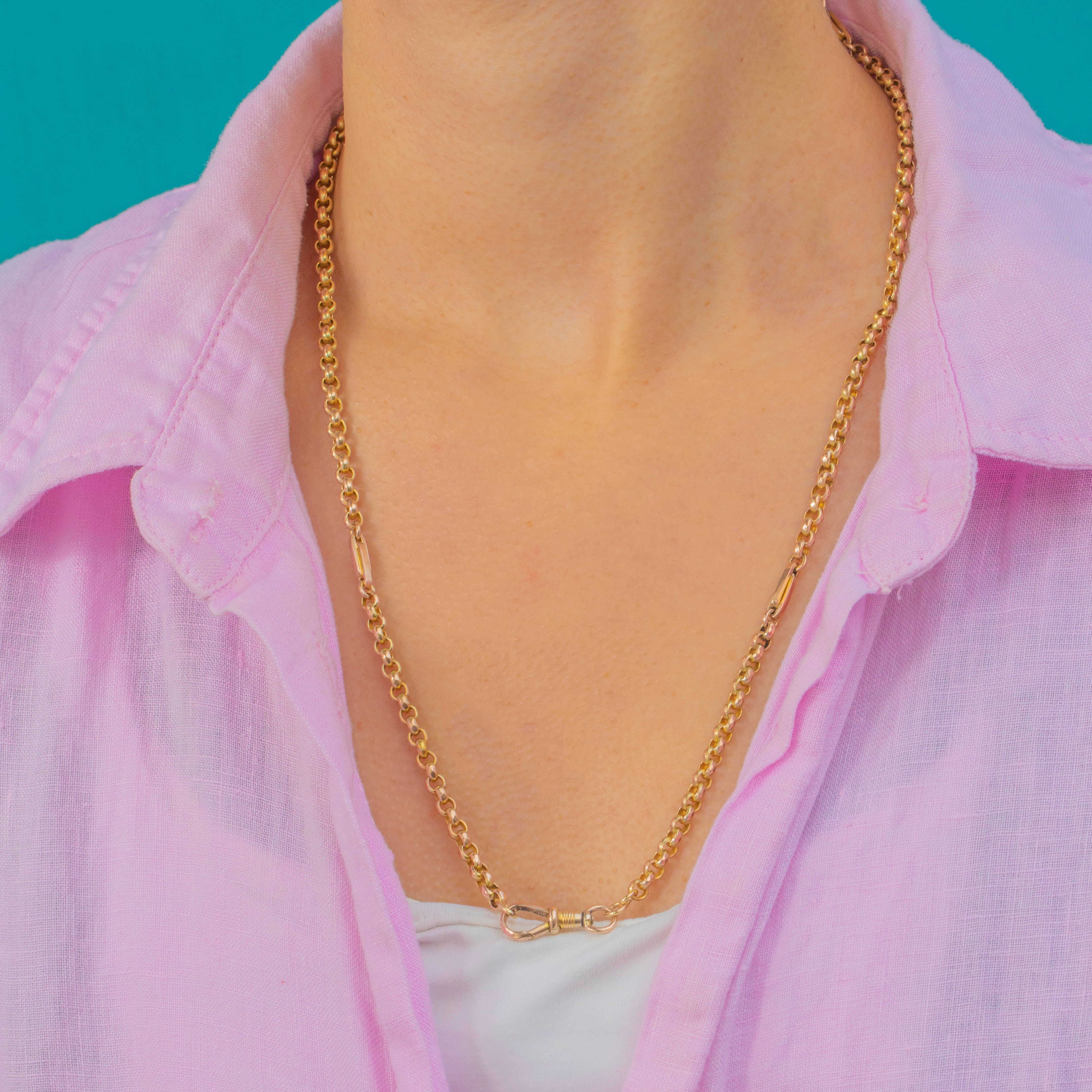 23.5インチ アンティーク 9ct ゴールド ベルチャー&フェッター チェーン&ドッグクリップ、17g
