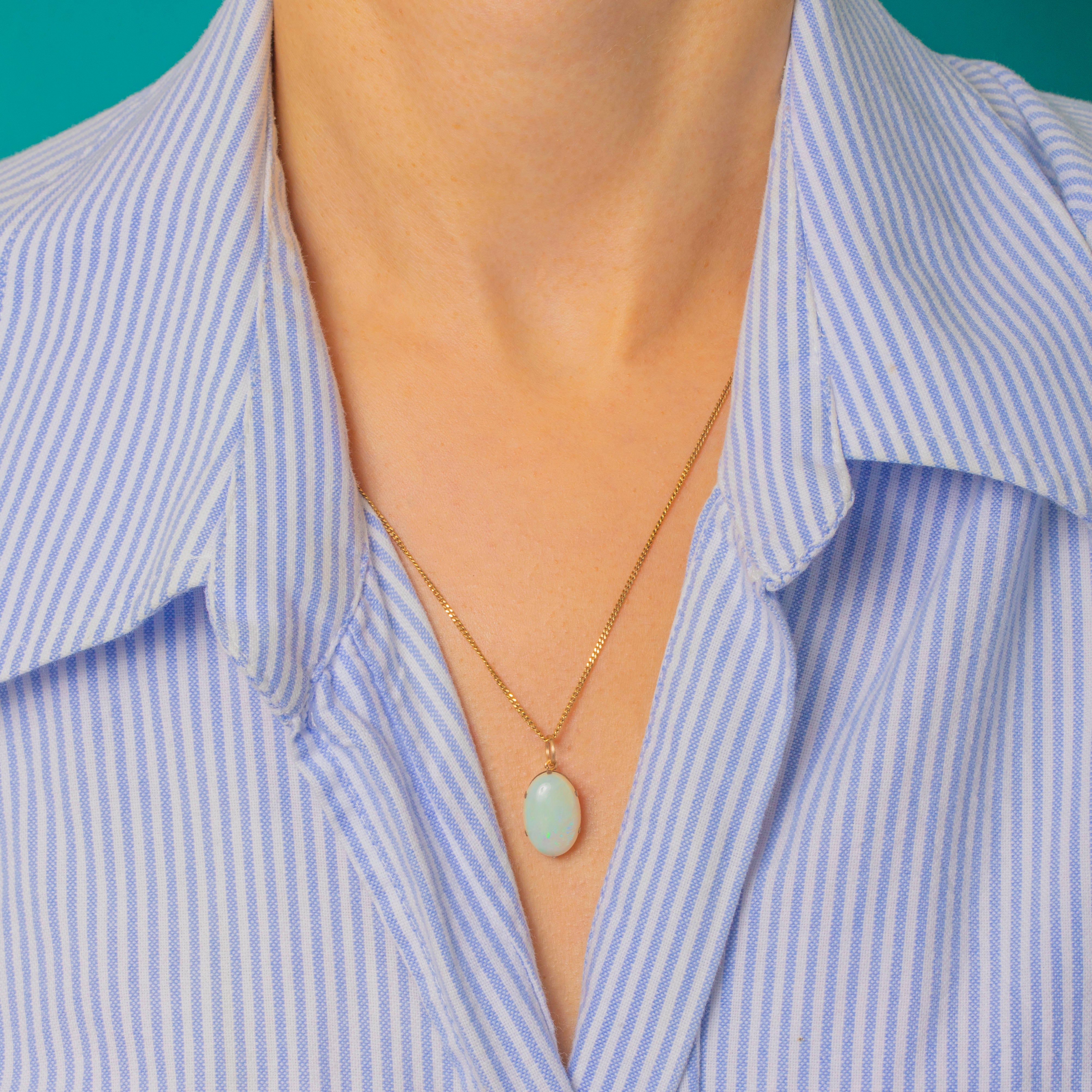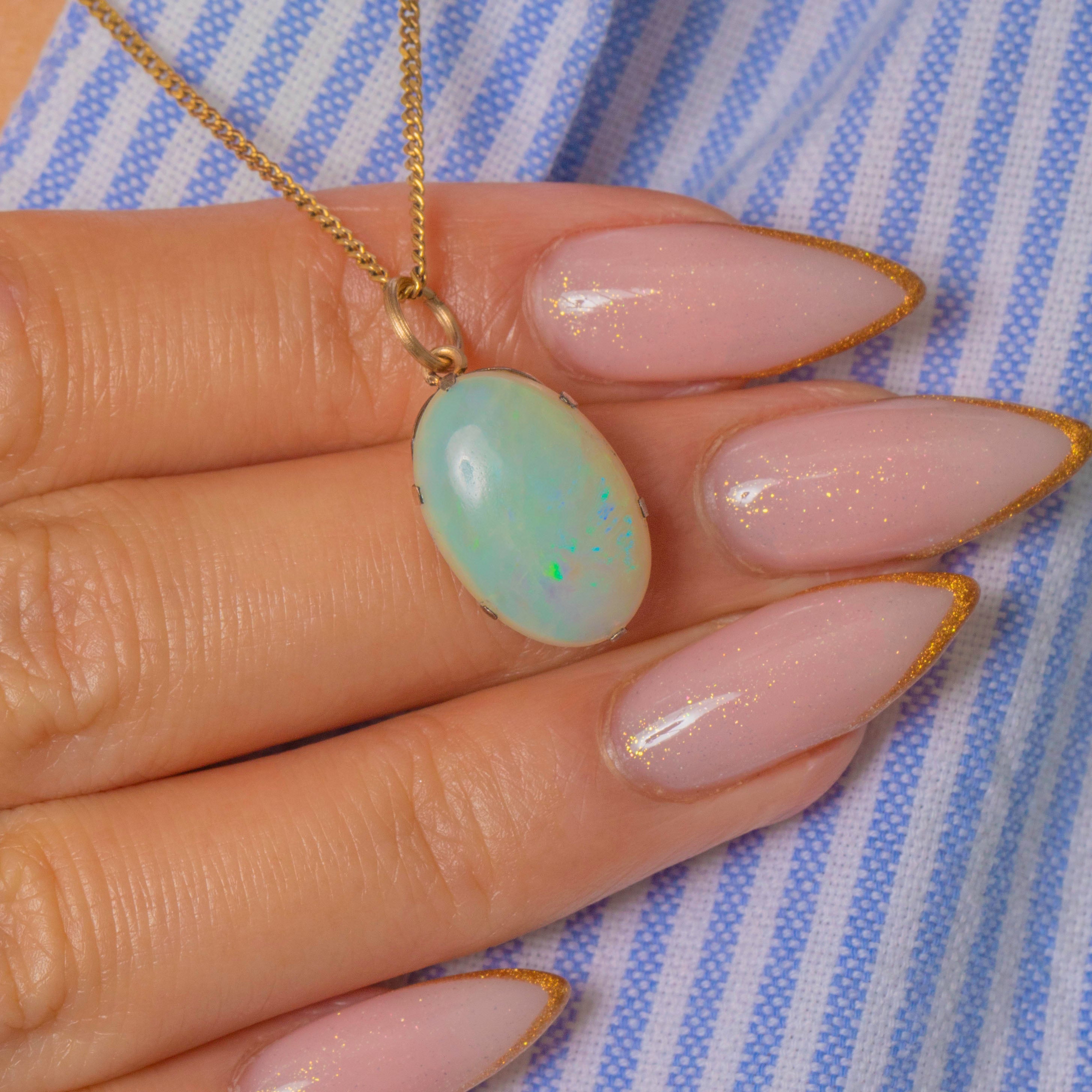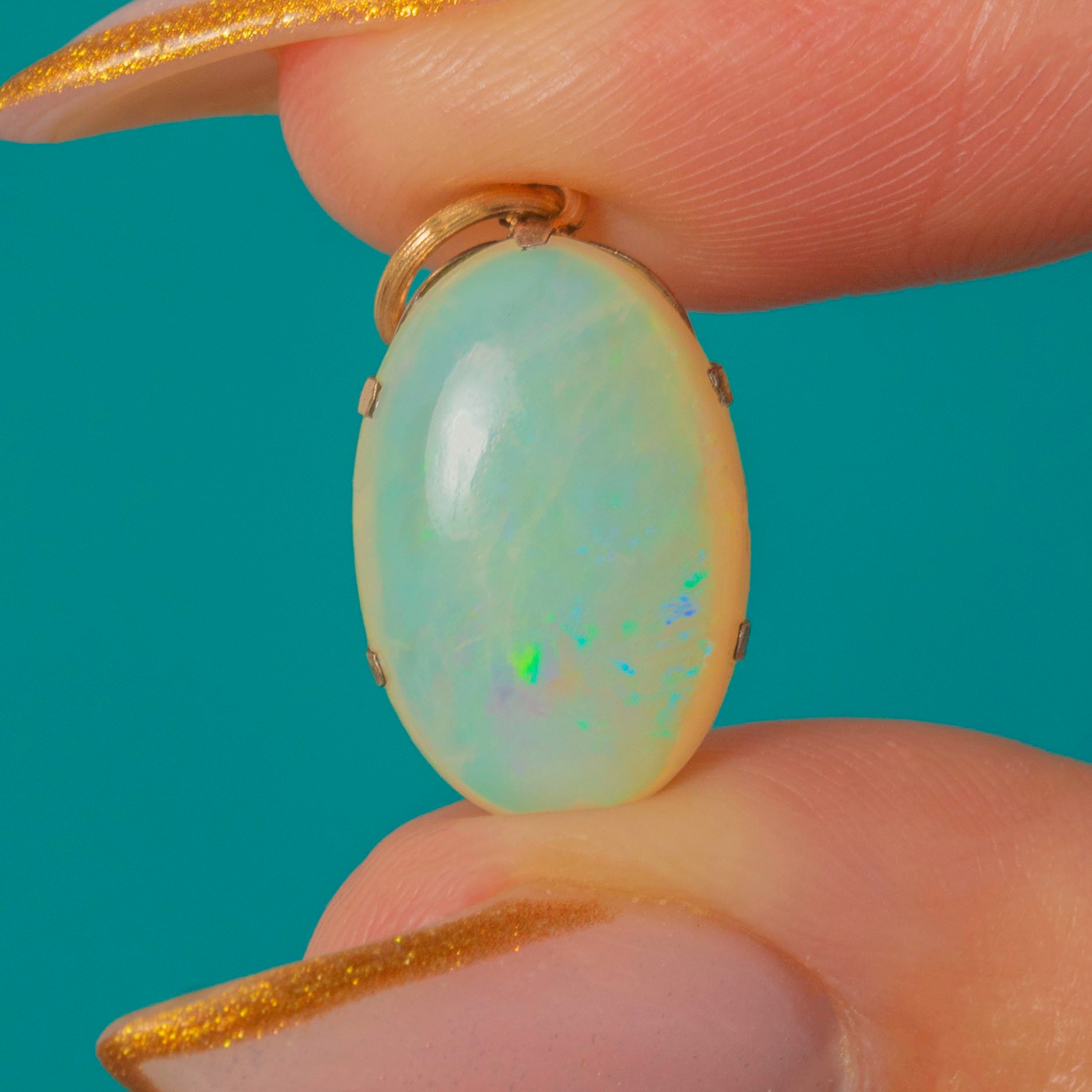 EXCELLENT: The Opal is smooth and well-polished with vibrant play-of-colour and no surface wear. The Gold setting is bright, secure and in excellent condition throughout.