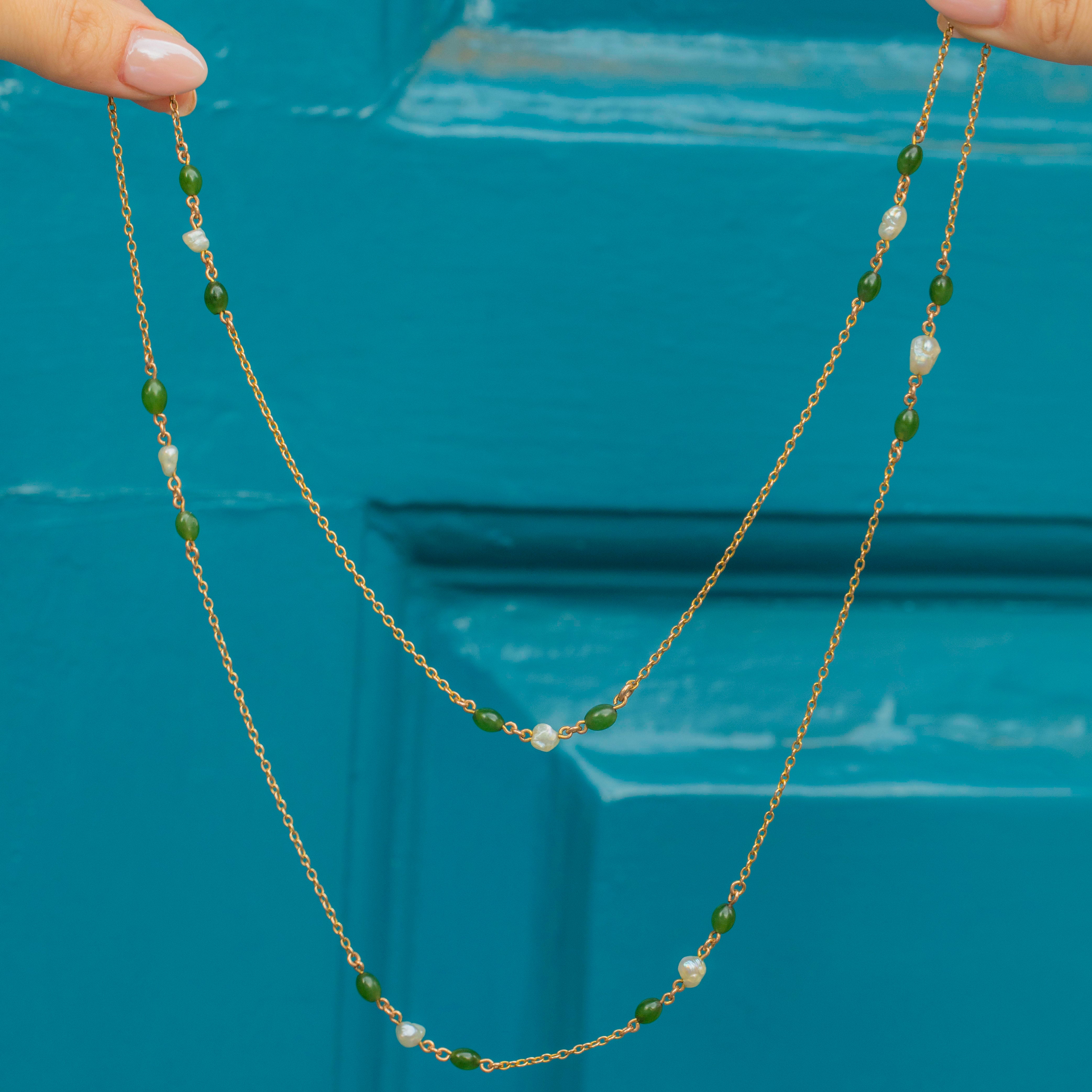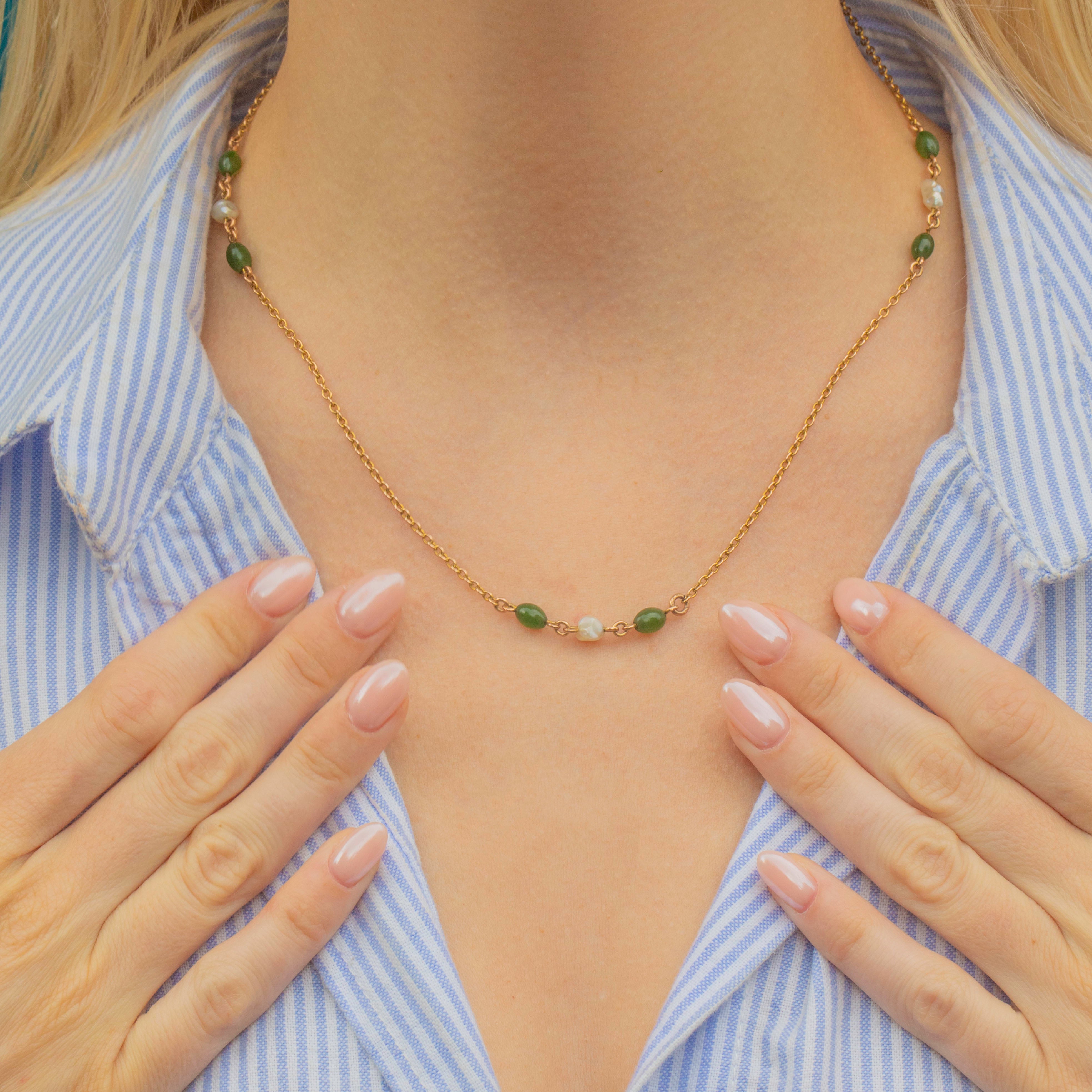 31" Antique 9ct Gold Jade & Baroque Pearl Necklace