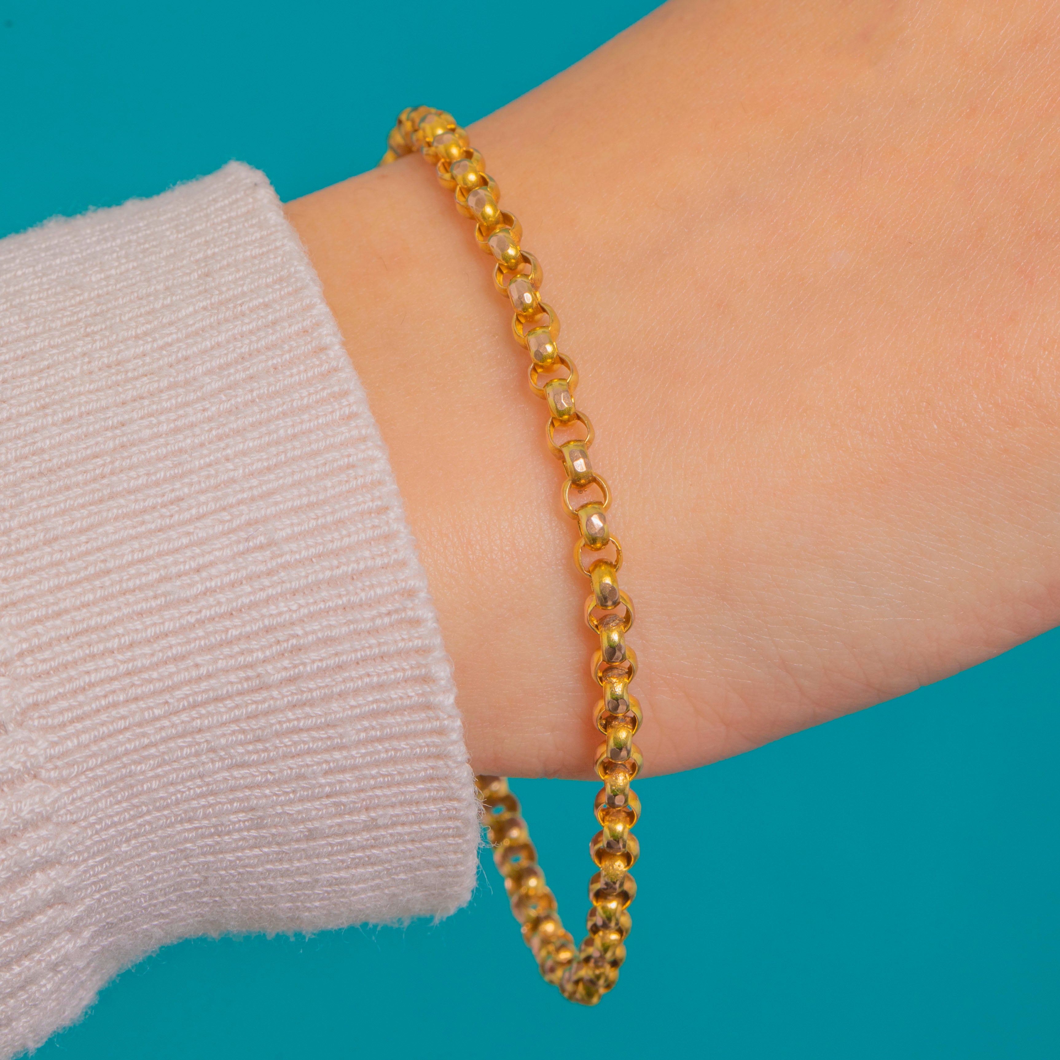 Victorianの魅力を纏ったタイムレスな定番、クラシックな9ctゴールド ベルチャーチェーンブレスレットは、日常にさりげないエレガンスを添えます。丸みを帯びたリンクが柔らかな光沢を放ち、上品な輝きを演出。重ね付けにも、単独でも美しく映えます。