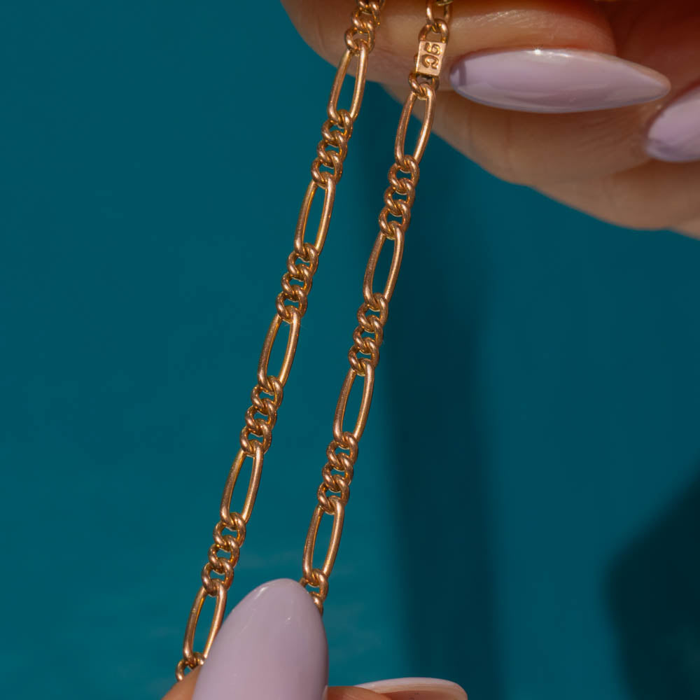 This antique 9ct Gold Figaro bracelet is sure to become a staple within your jewellery collection. Her Figaro links perfectly caress your wrist, crafted from sun-kissed 9ct Gold that radiates beneath the light.